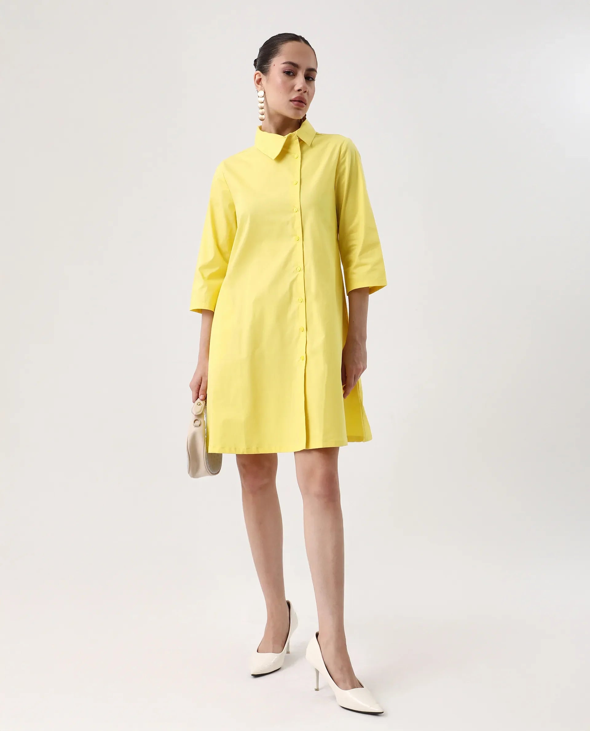 Rareism Women Ahho Yellow Regular Sleeve Asymmetric Neck A-Line Mini Plain Dress
