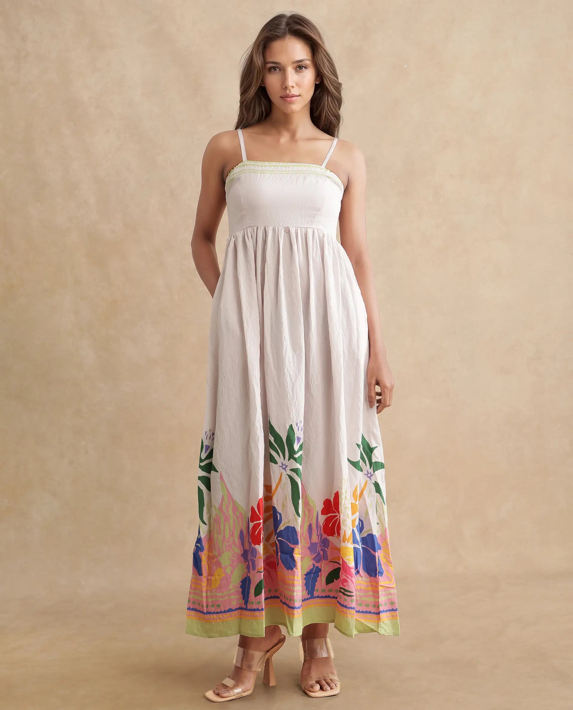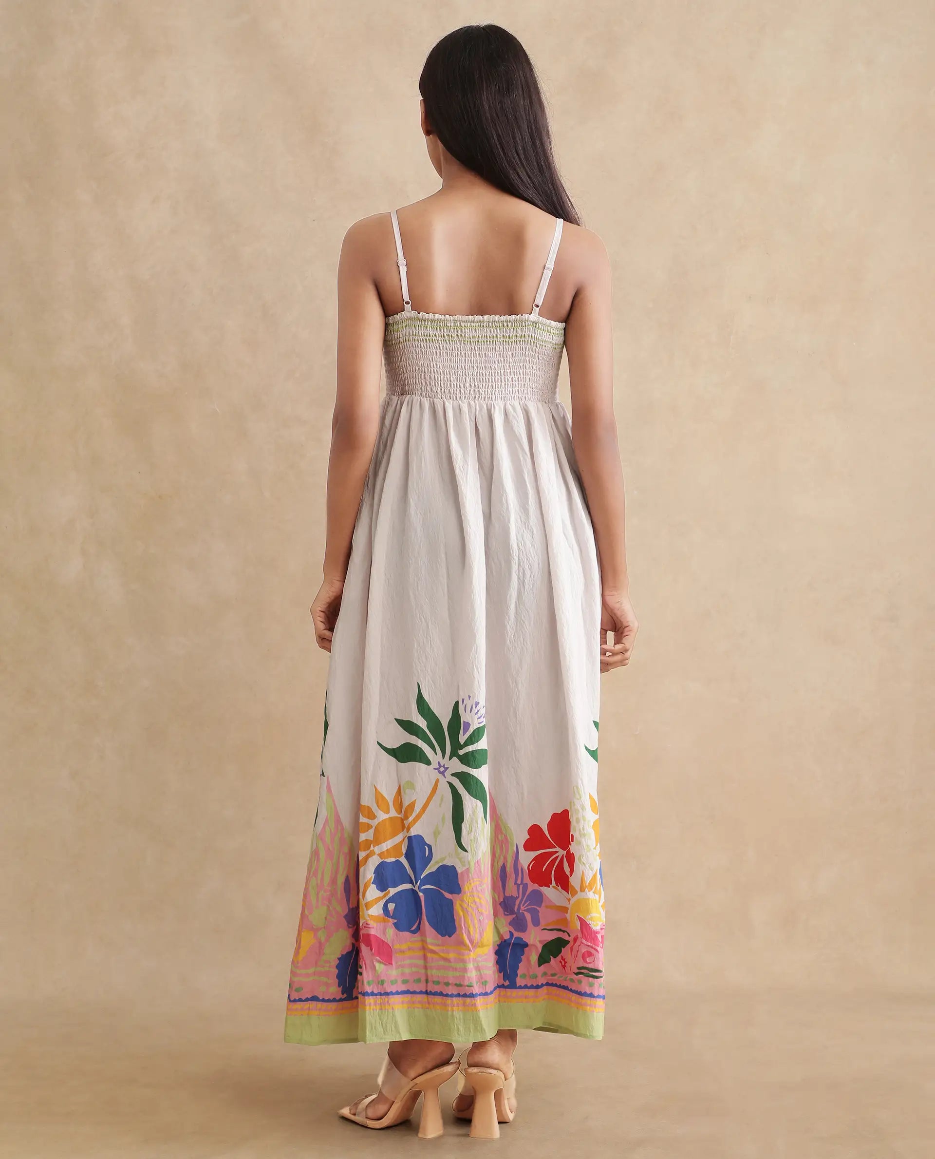 Rareism Women Holley Multi Rayon Nylon Fabric Noodle Strap Floral Print Ankle Length Dress