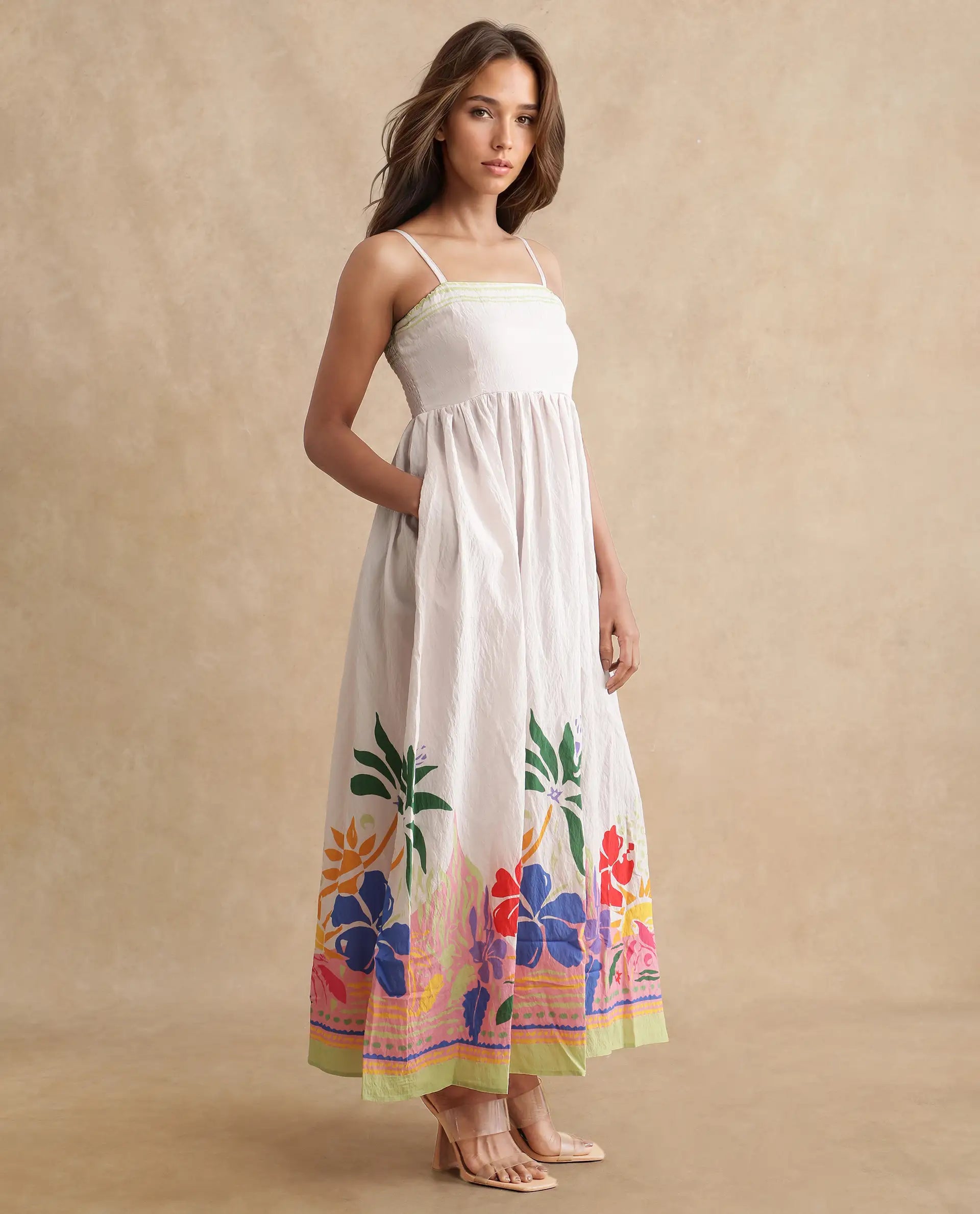 Pair this elegant dress with heels and a clutch for a refined evening ensemble. Add subtle jewelry and a soft hairstyle to complement the floral motif