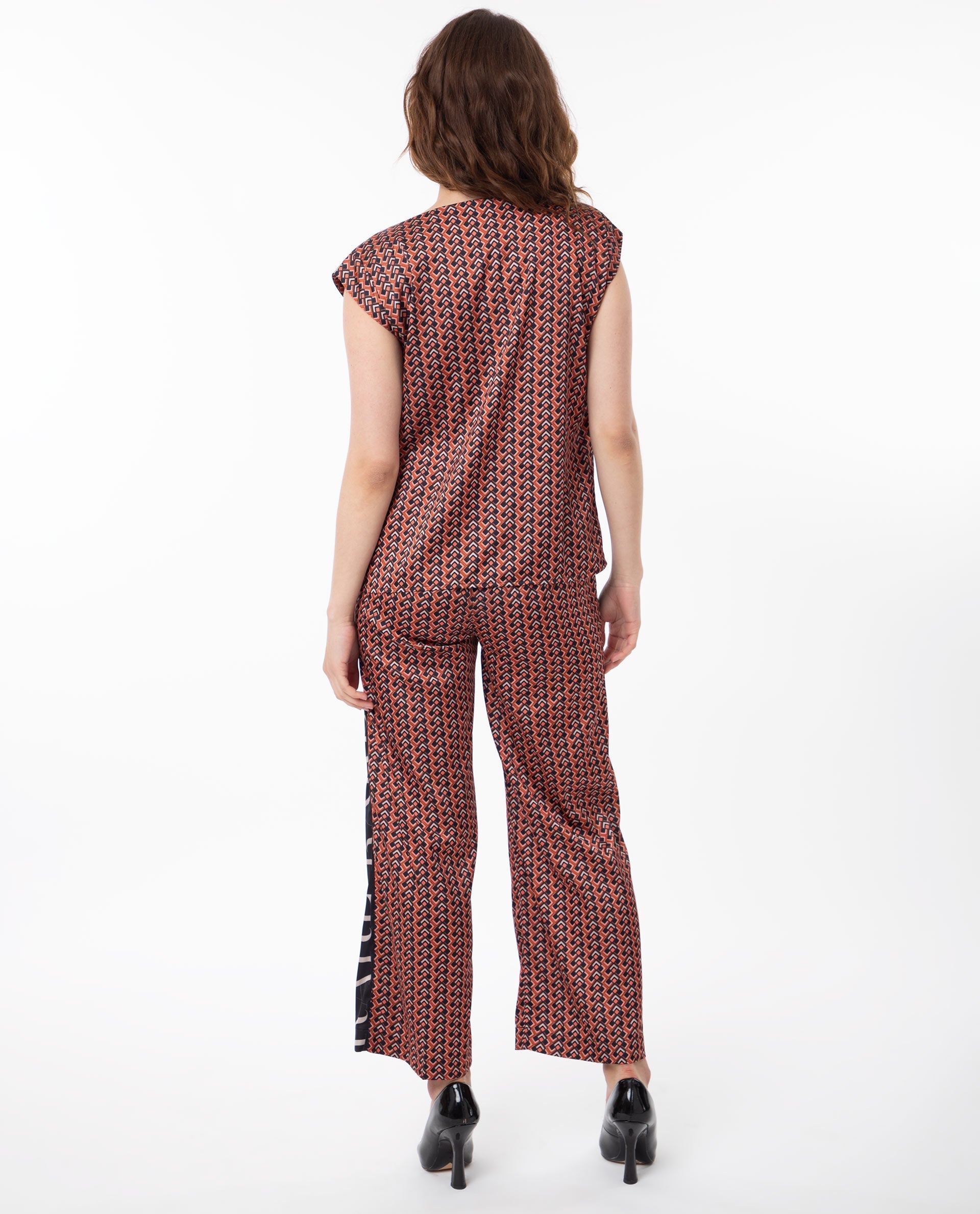 1. Stand out in style with a geometric print top featuring unique rear branding.