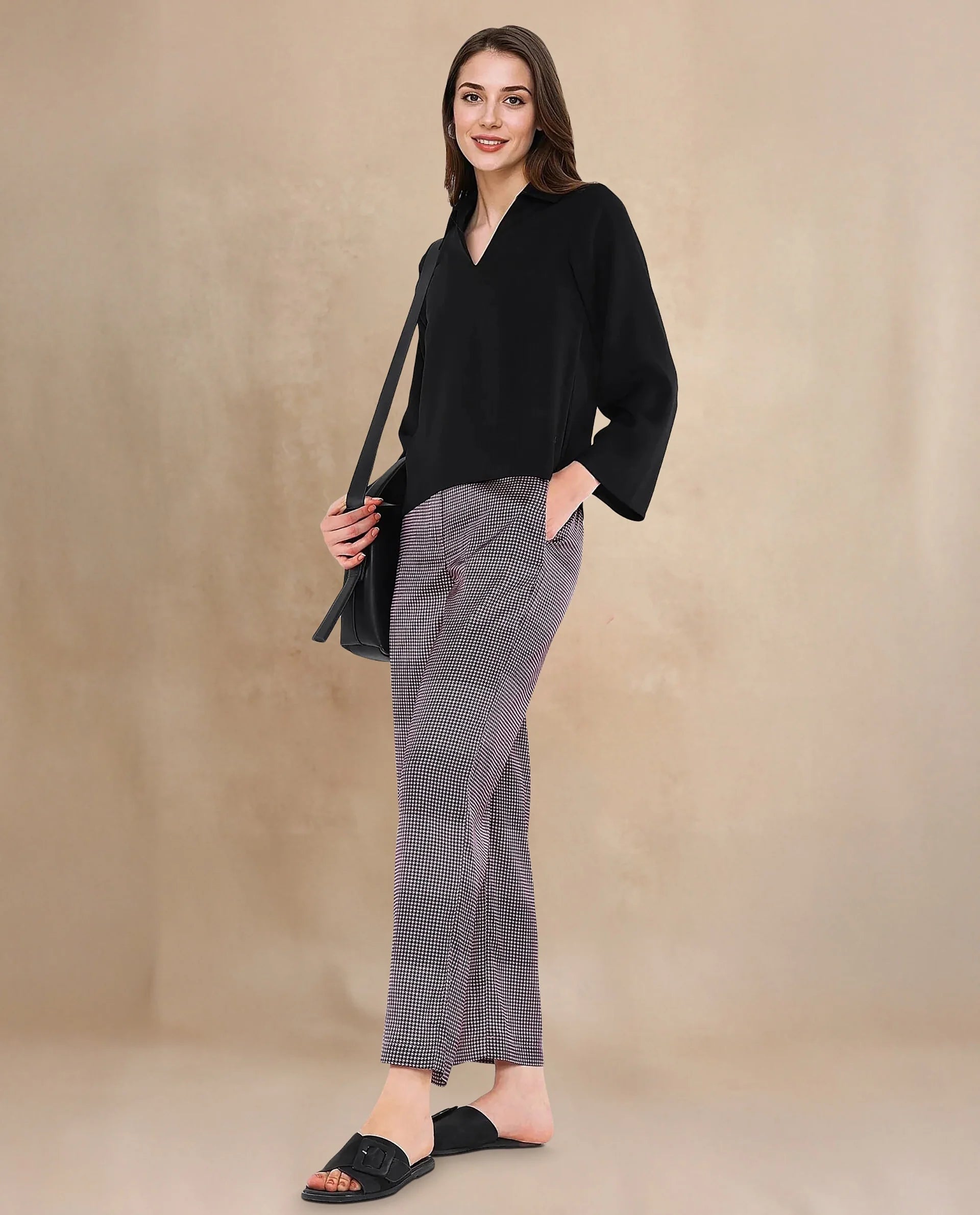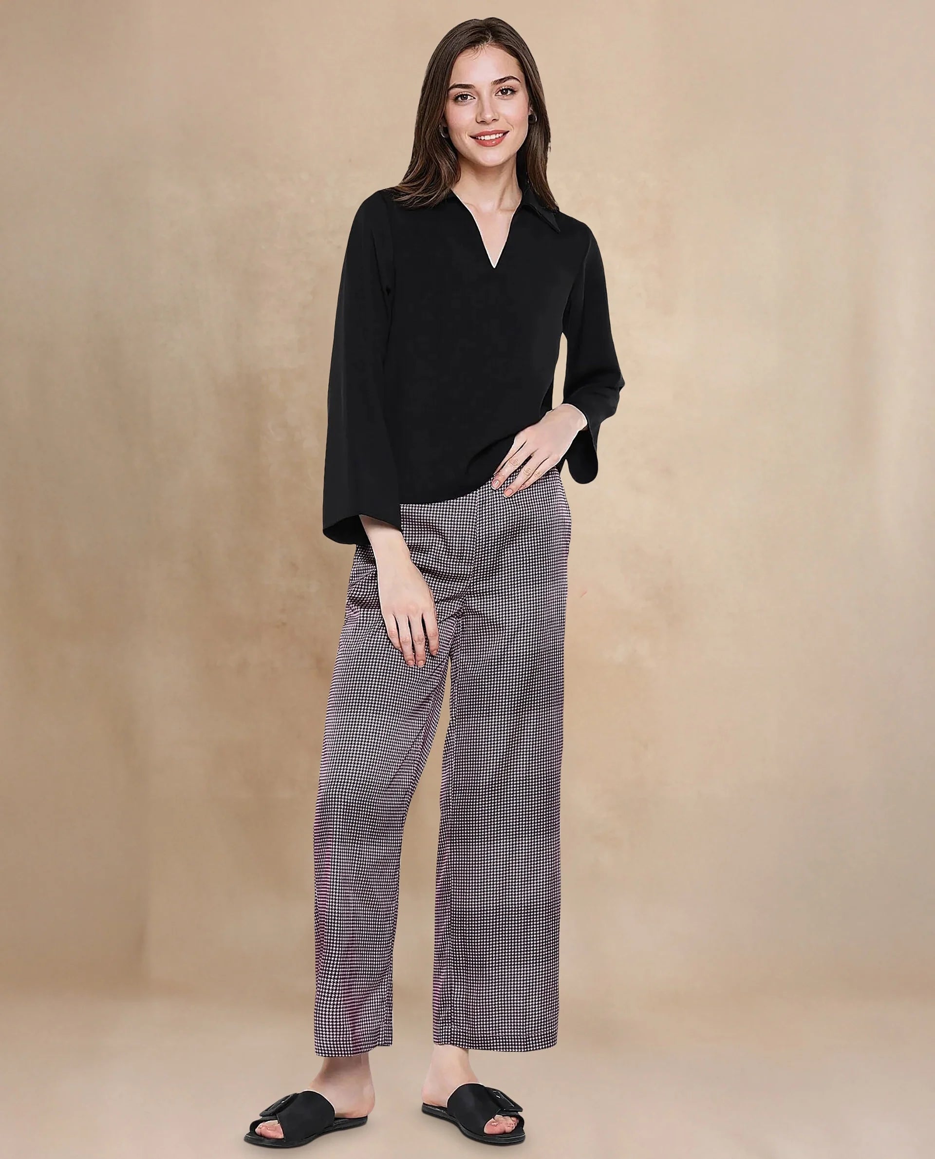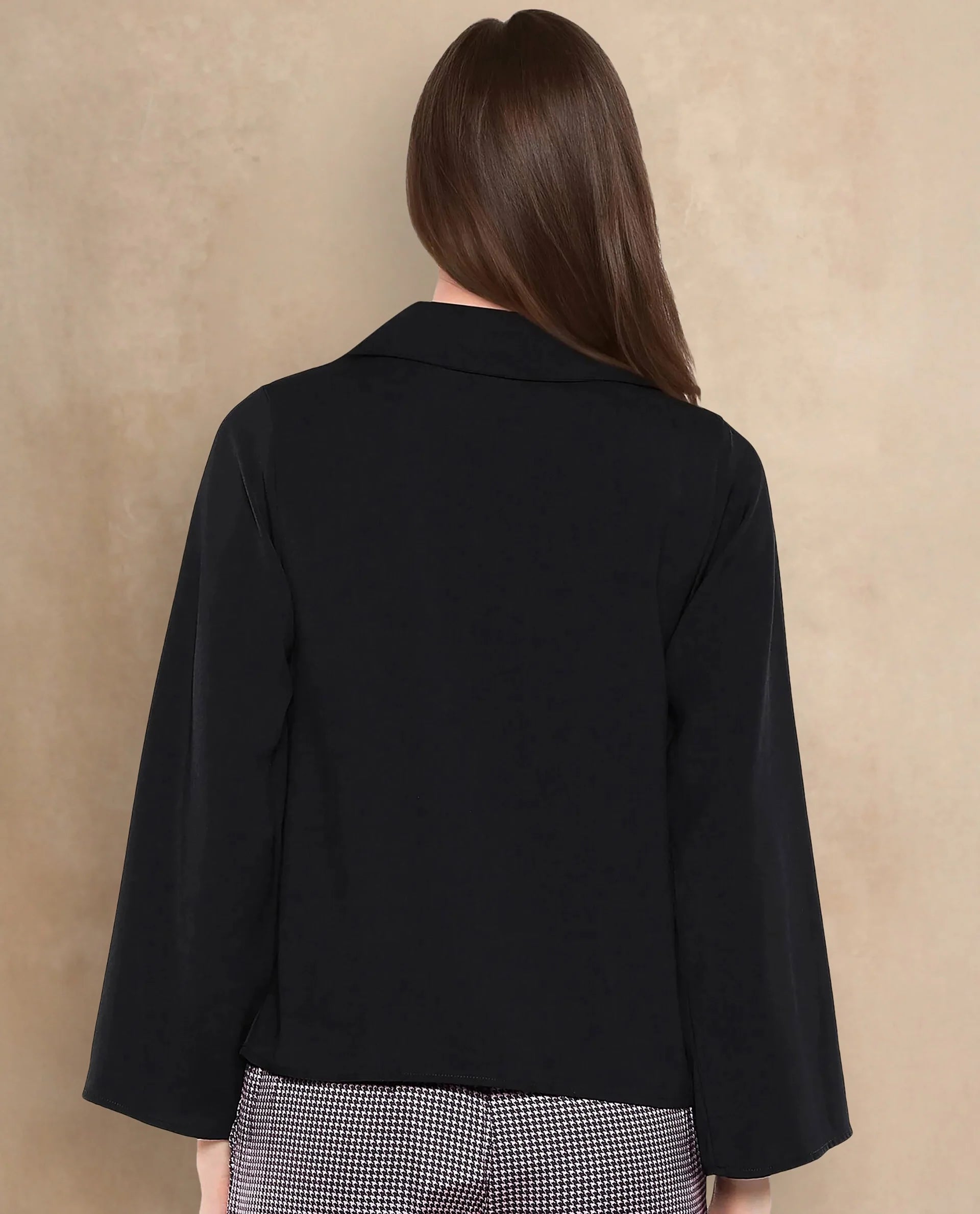 Rareism Women Klamma Black Satin Full Sleeve Jonny Collar Plain Top