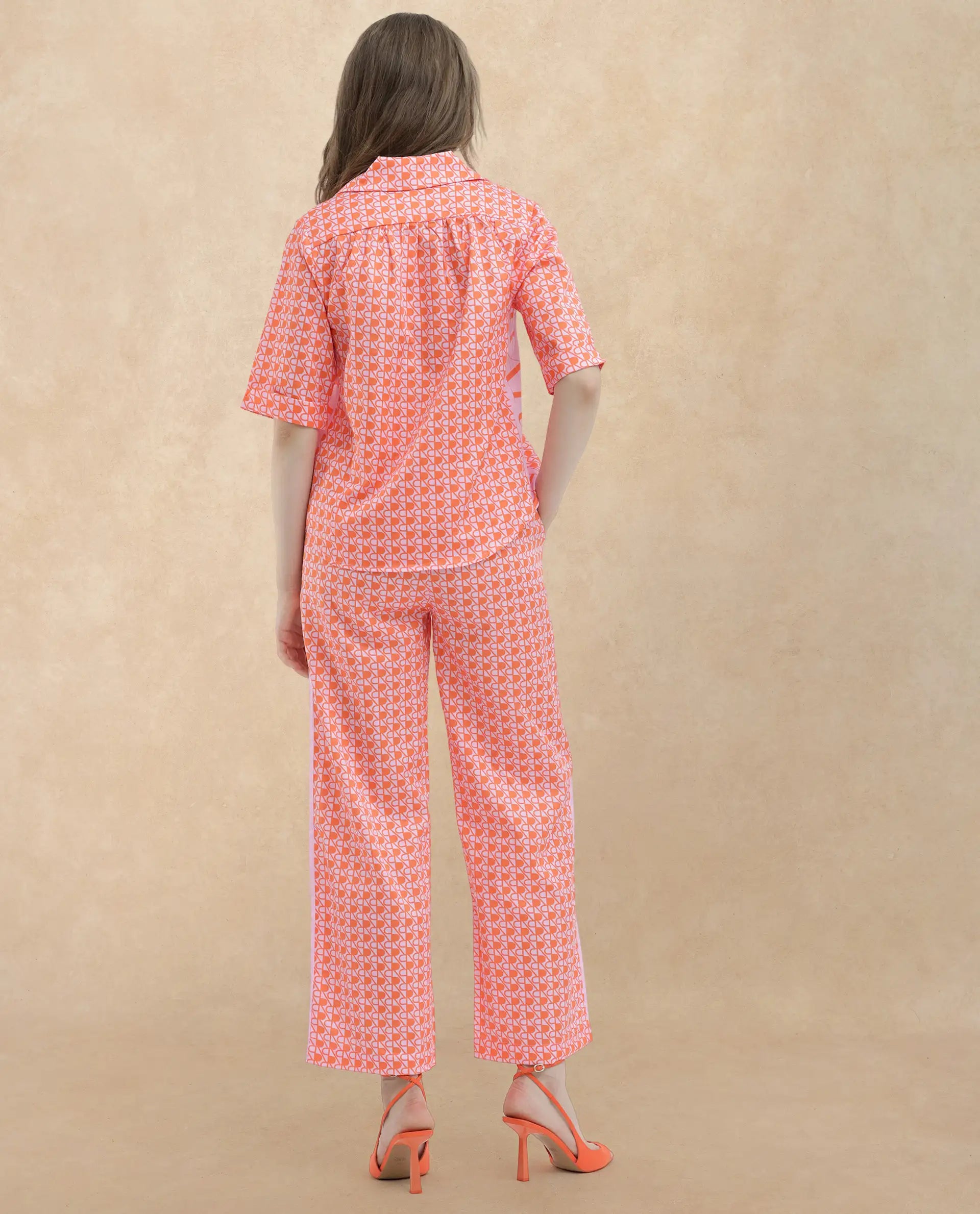 Rareism Women Zyon-T Pink Cotton Fabric Short Sleeves Johnny Collar Regular Fit Monogram Top