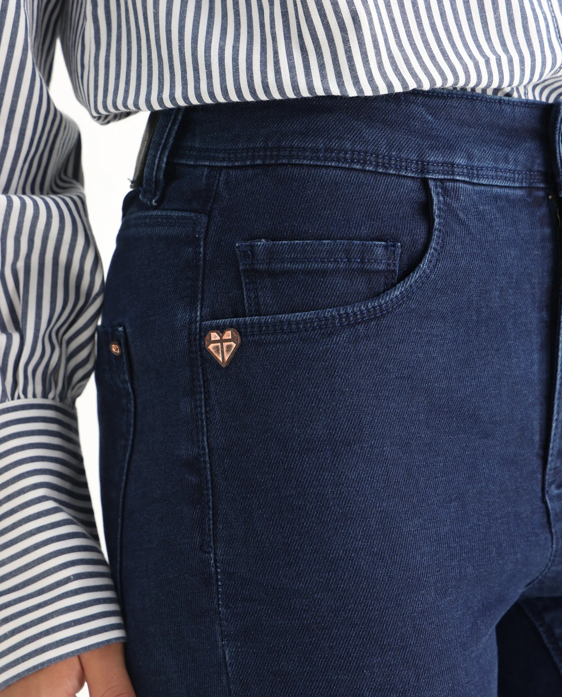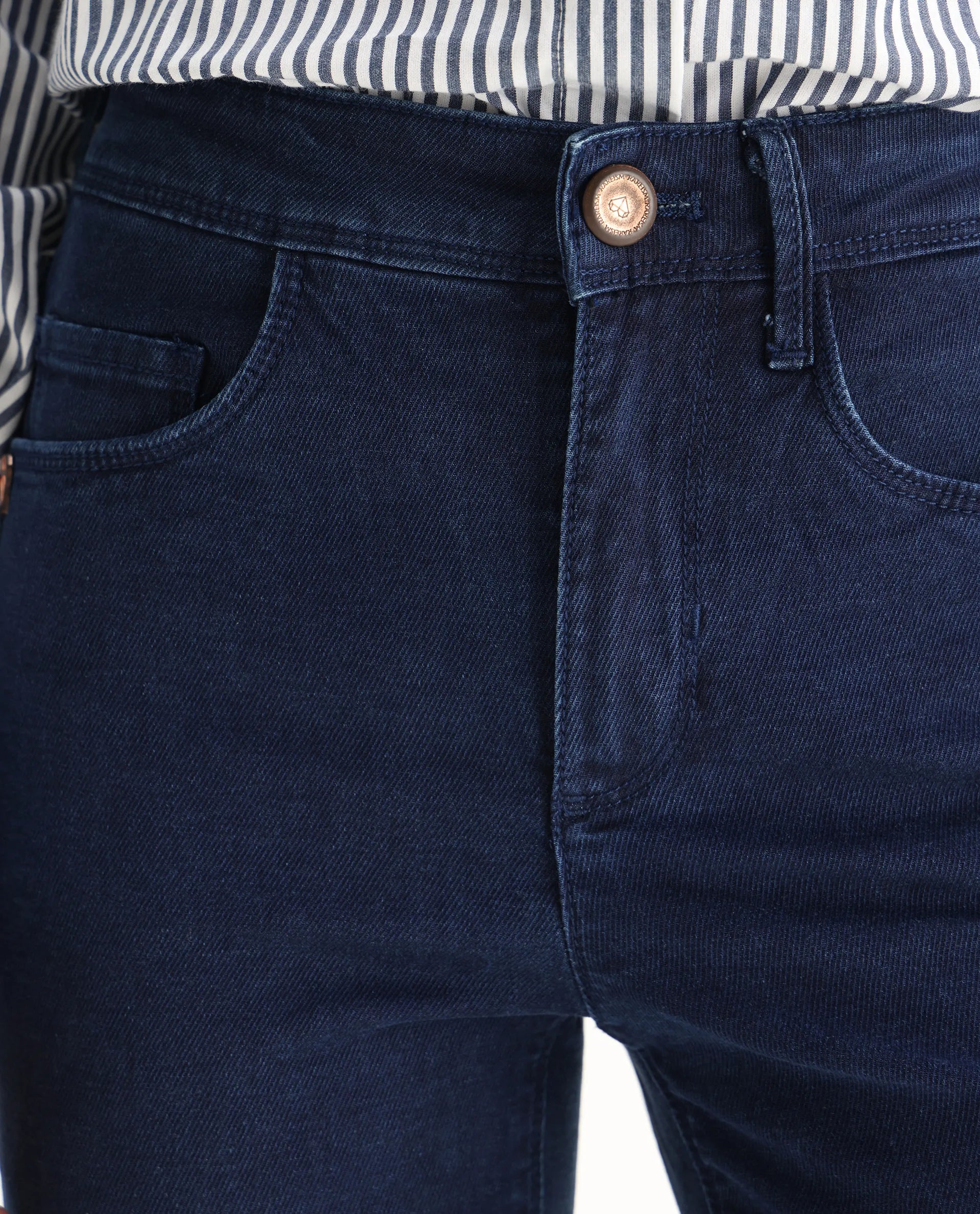 Rareism Women Hugo Blue Cotton Fabric Mid Rise Solid Relaxed Fit Ankle Length Jeans
