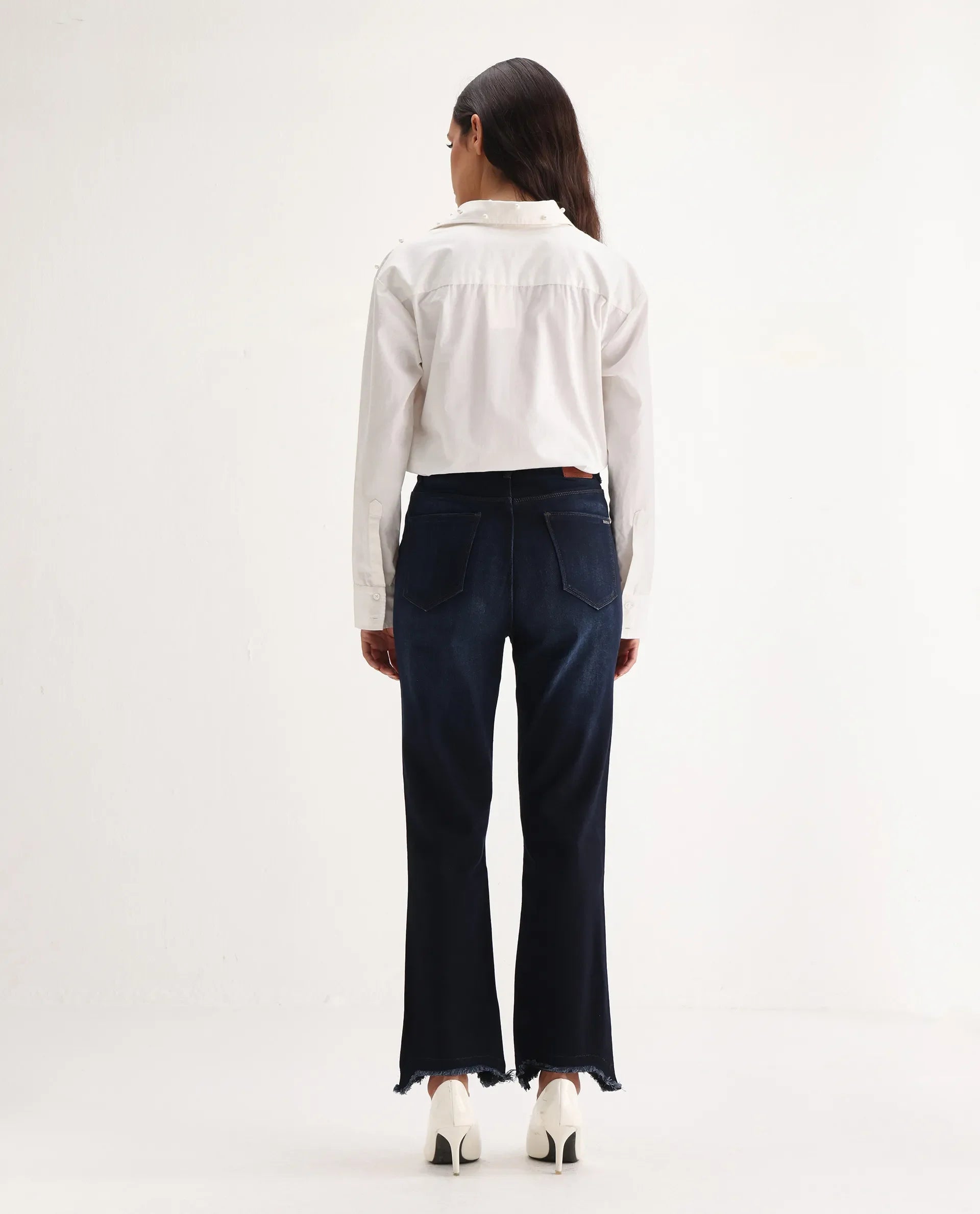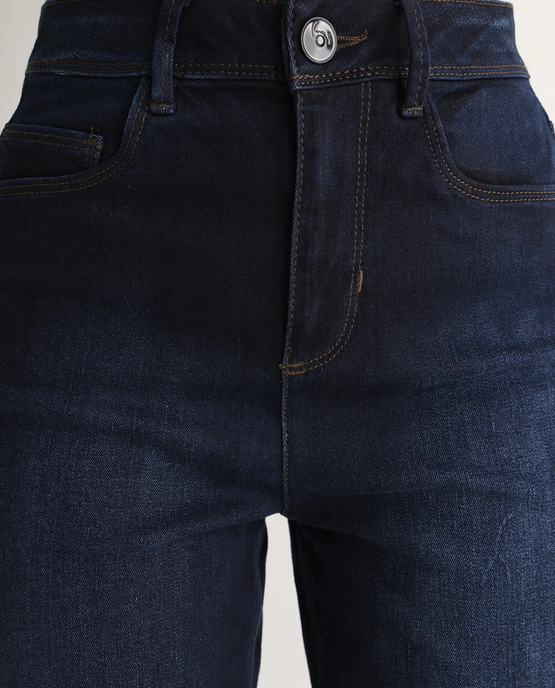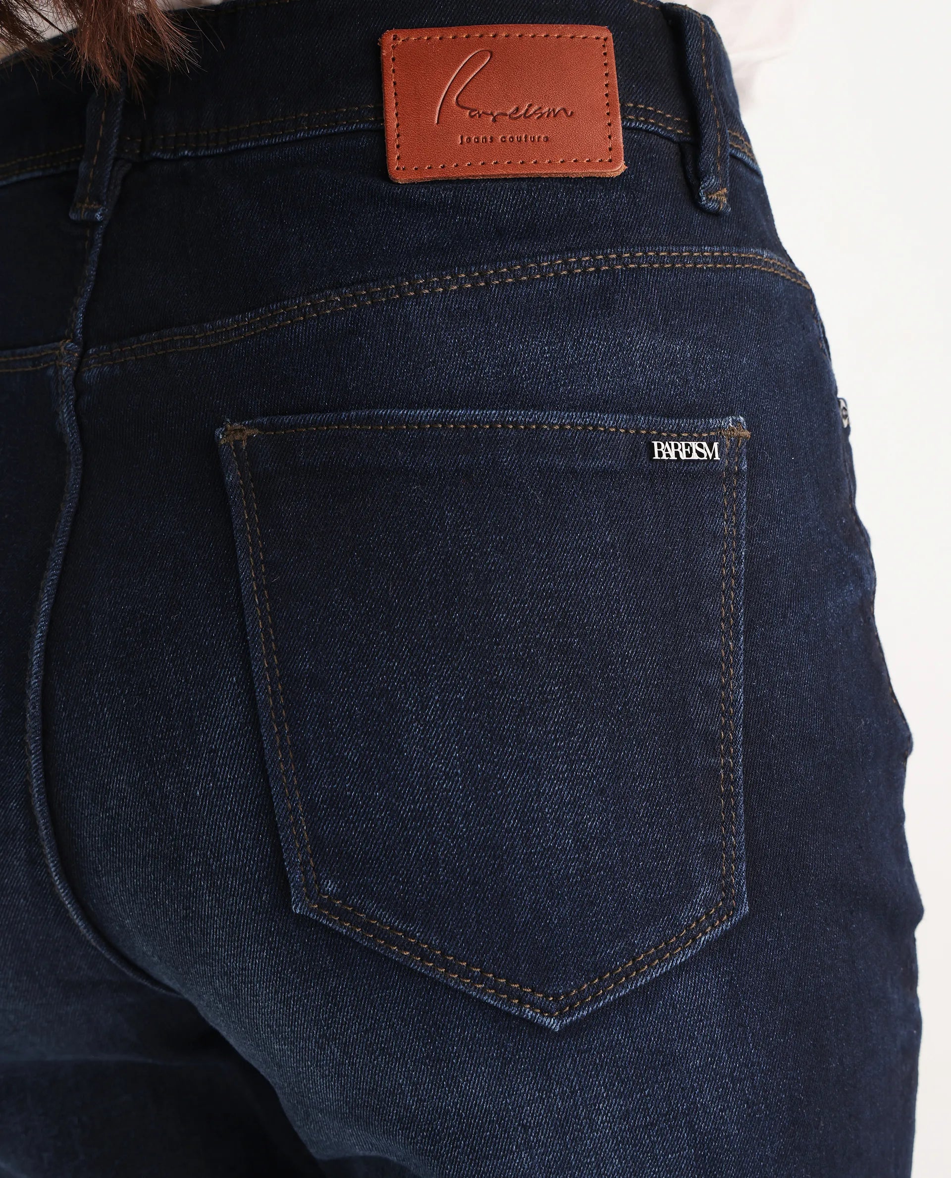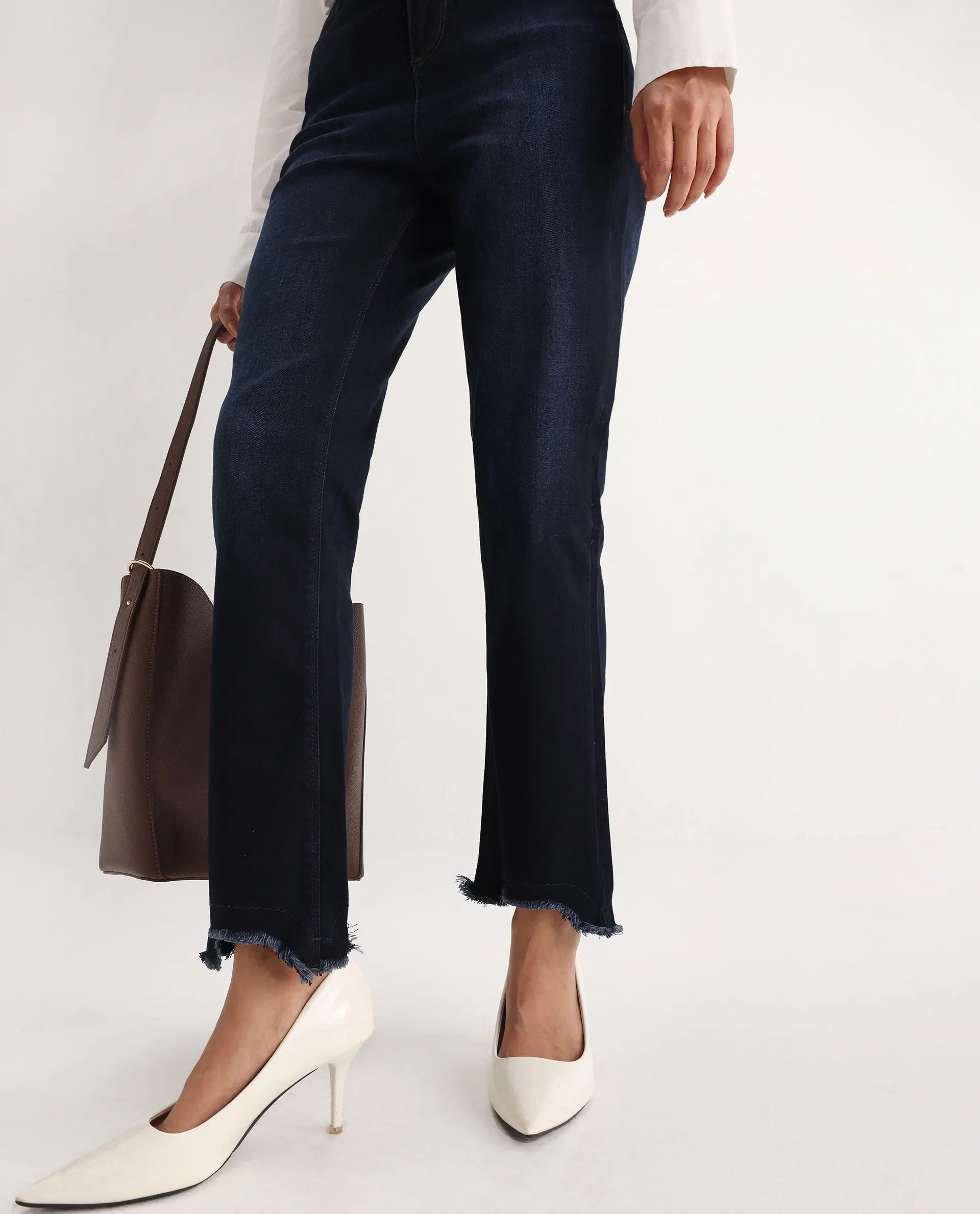 Rareism Women Longwing Navy Cotton Viscose Fabric Mid Rise Solid Tailored Fit Ankle Length Jeans
