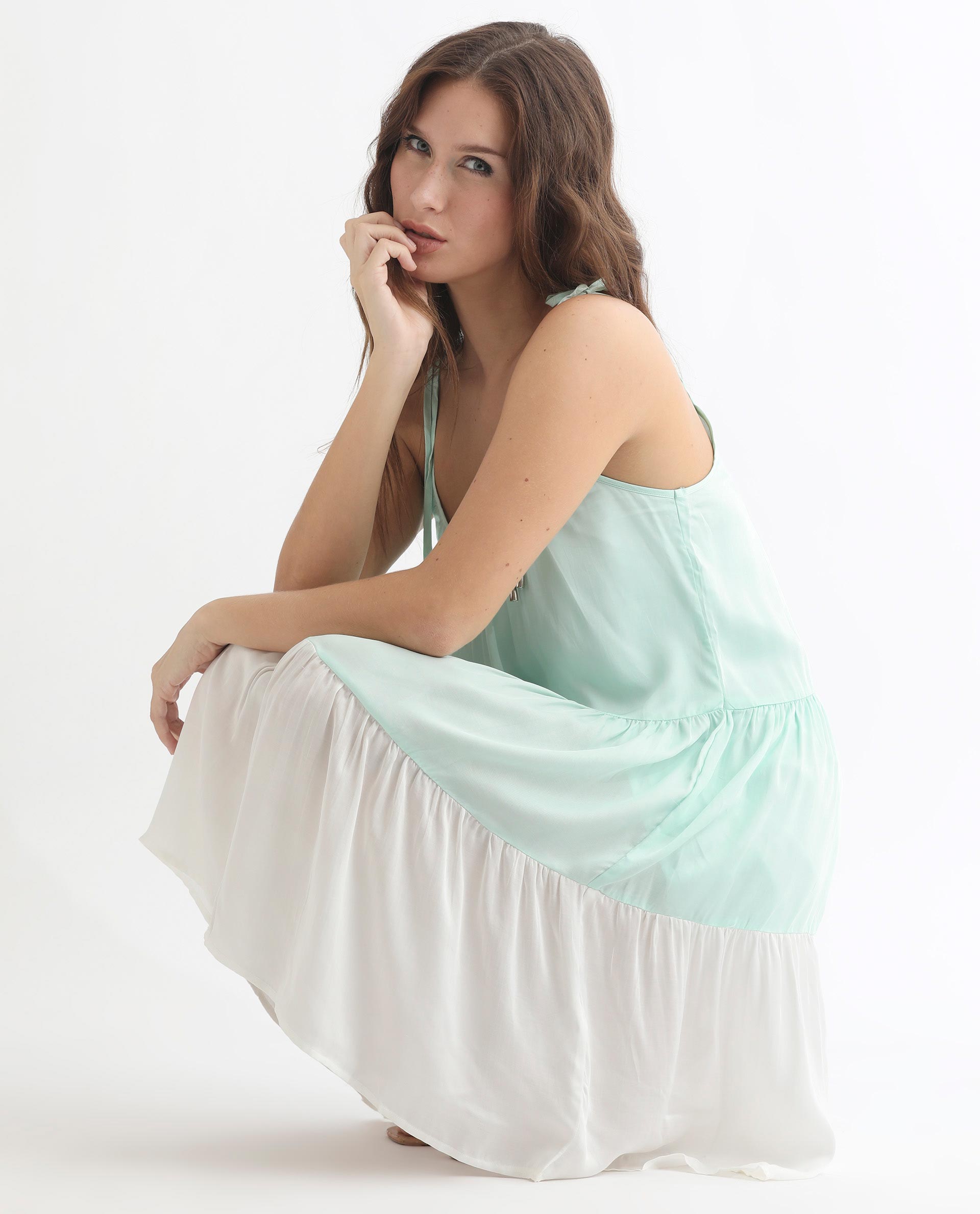 TIE UP COLOUR BLOCKED SATIN MINI DRESS