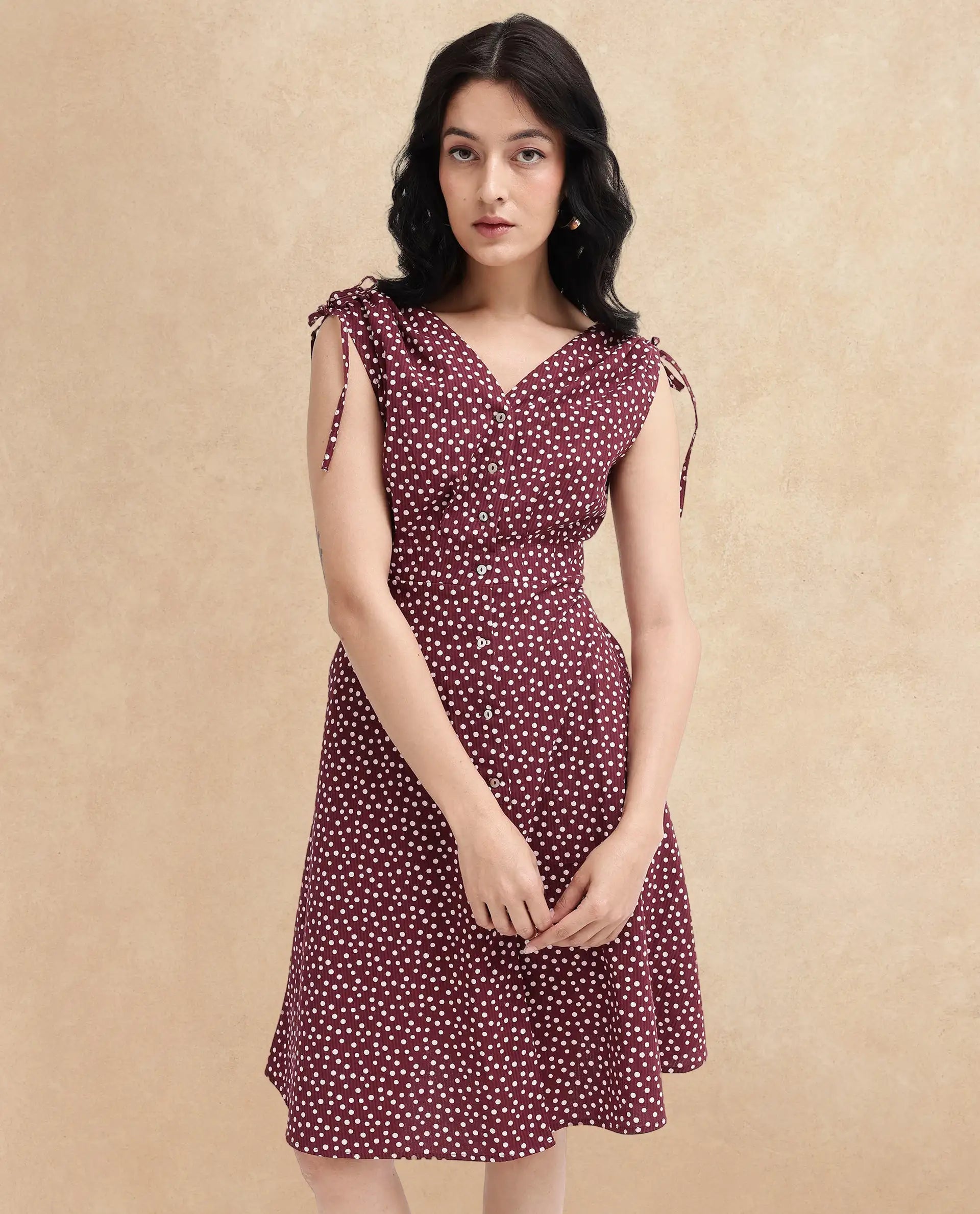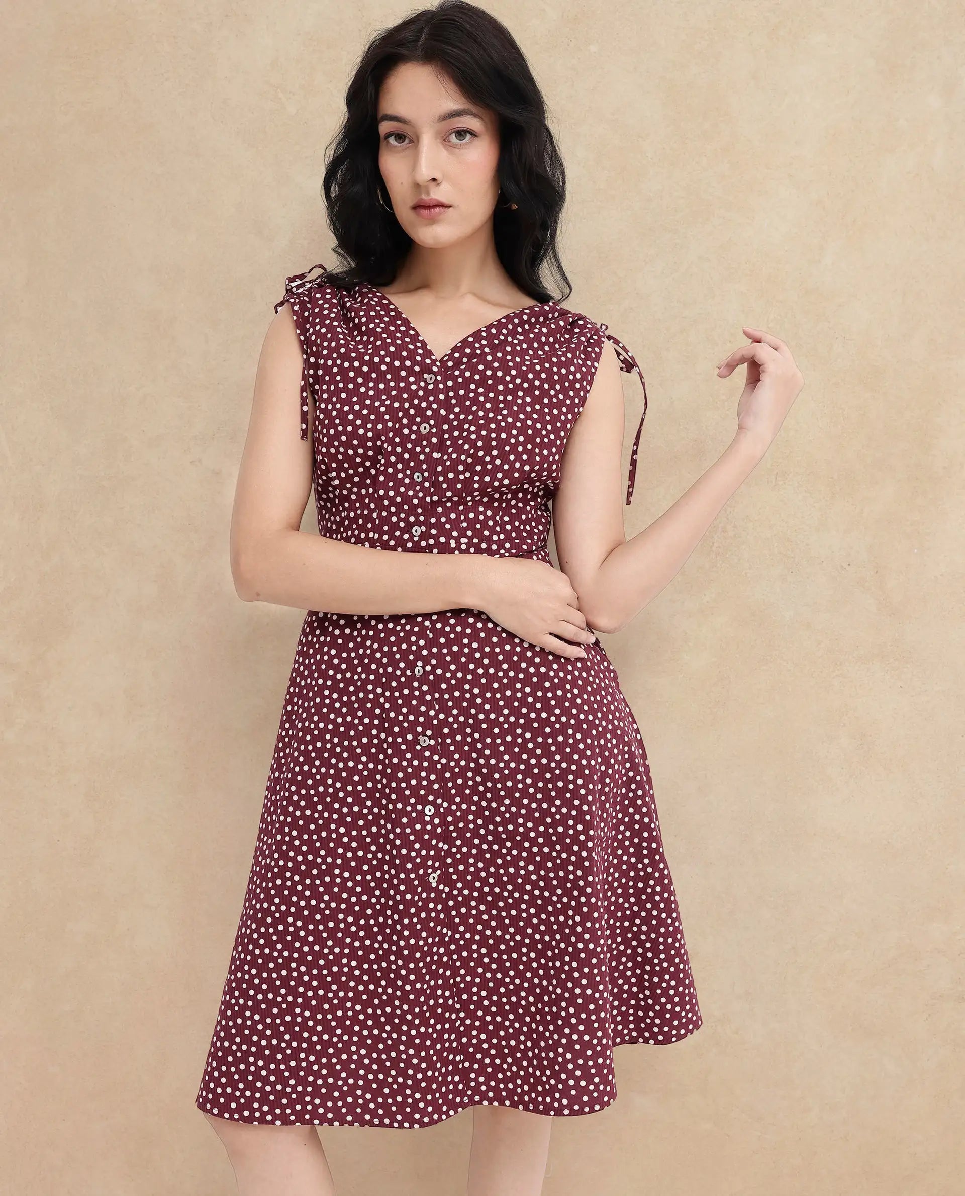 Elevate your wardrobe with this chic polka dot A-line dress, perfect for any occasion. Crafted from high-quality fabric, this dress features a flattering fit that accentuates your silhouette. The sleeveless design and V-neck collar add a touch of elegance, while the button-down closure offers a classic look. Ideal for both casual outings and special events, this dress combines comfort and style effortlessly. Pair it with your favorite accessories for a complete ensemble that turns heads.