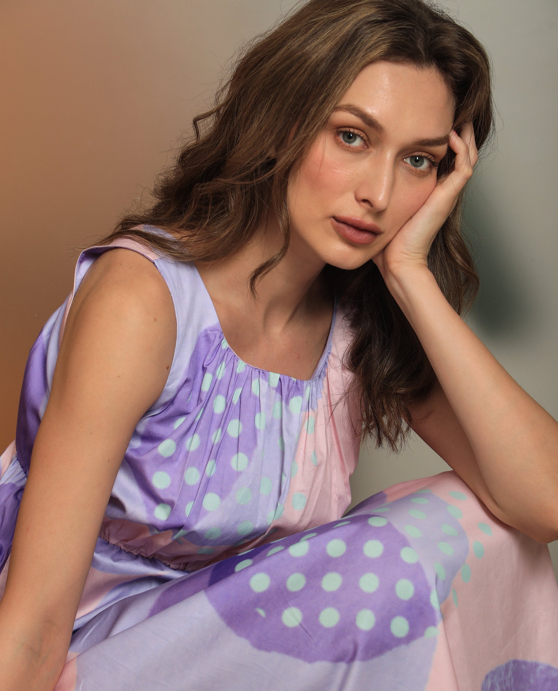 PLAYFUL POLKA PRINT BOAT NECK DRESS