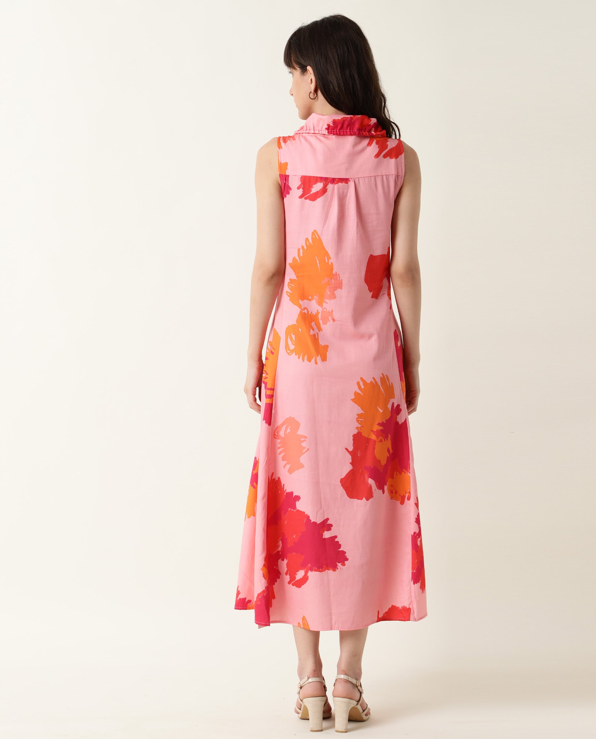 Rareism Womens Cyrus Pink Dress Cotton Fabric Regular Fit Sleeveless Round Neck