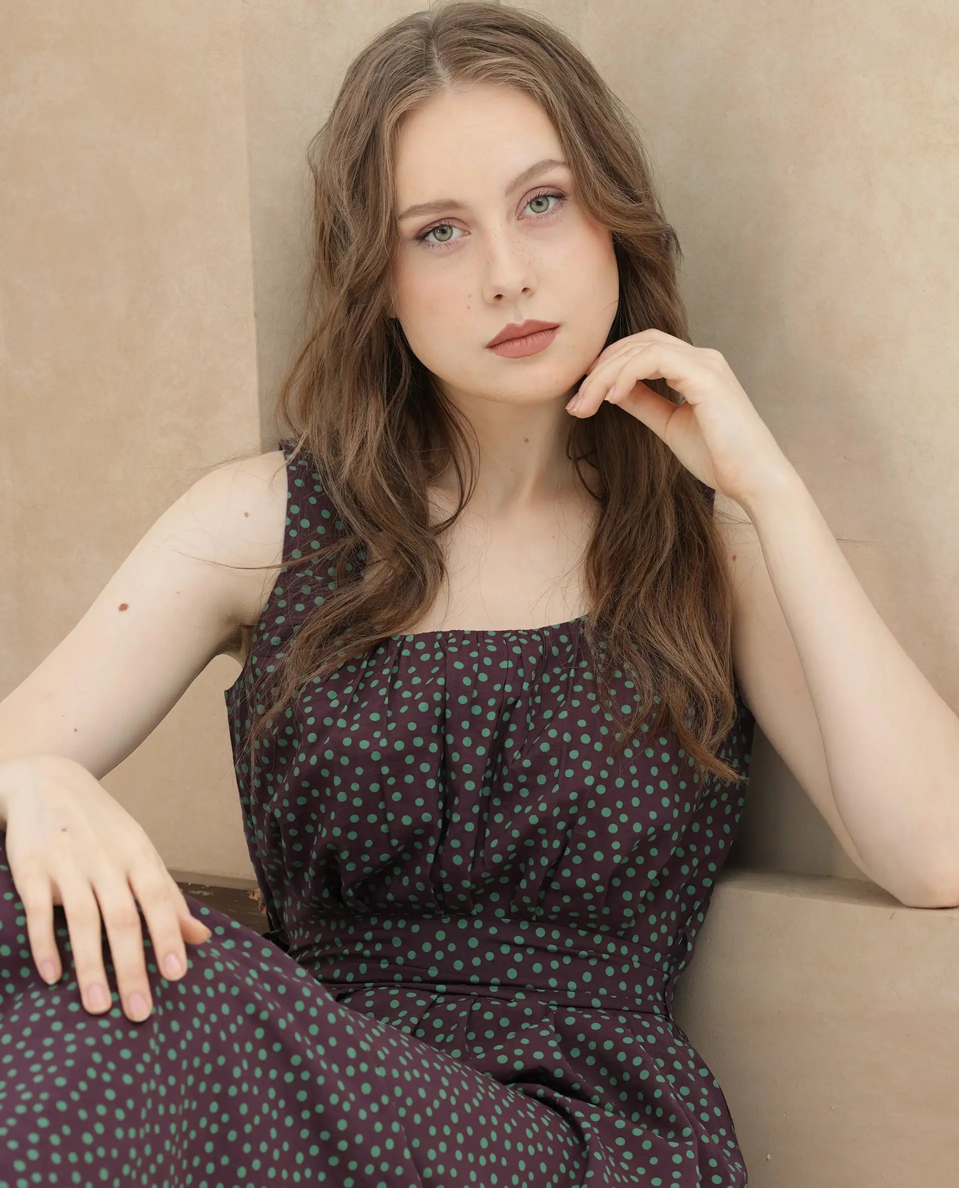 Discover the perfect blend of style and comfort with our elegant brown polka dot flared dress. Crafted from premium viscose, this dress offers a soft and breathable feel, making it ideal for any occasion. The sleeveless design and square neckline add a touch of sophistication, while the flared silhouette ensures a flattering fit. Whether you're attending a casual brunch or a formal event, this dress is your go-to choice for effortless elegance.