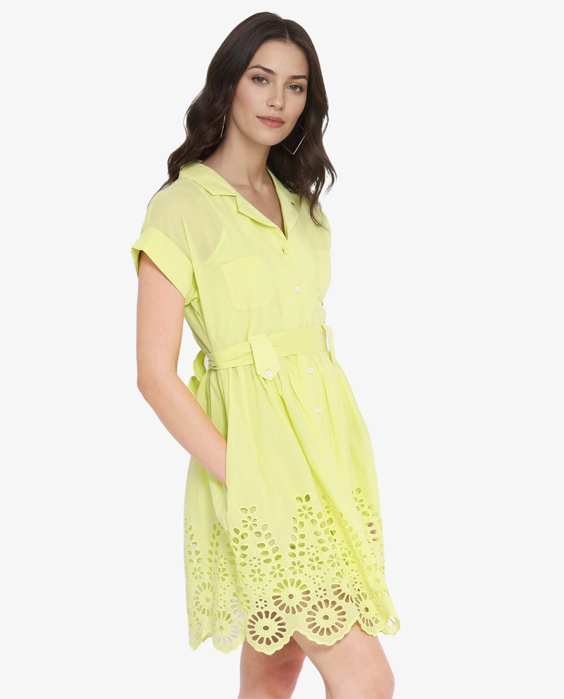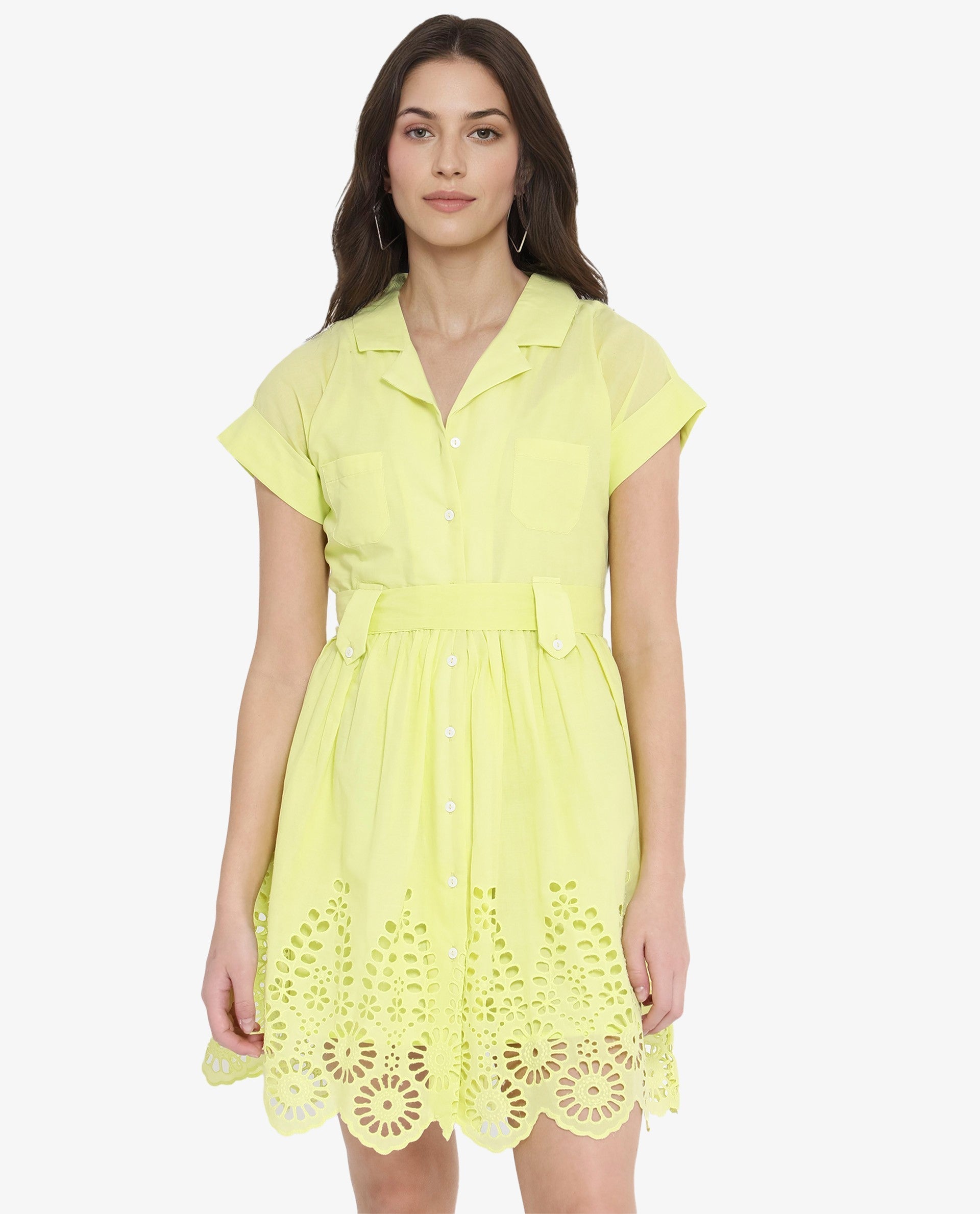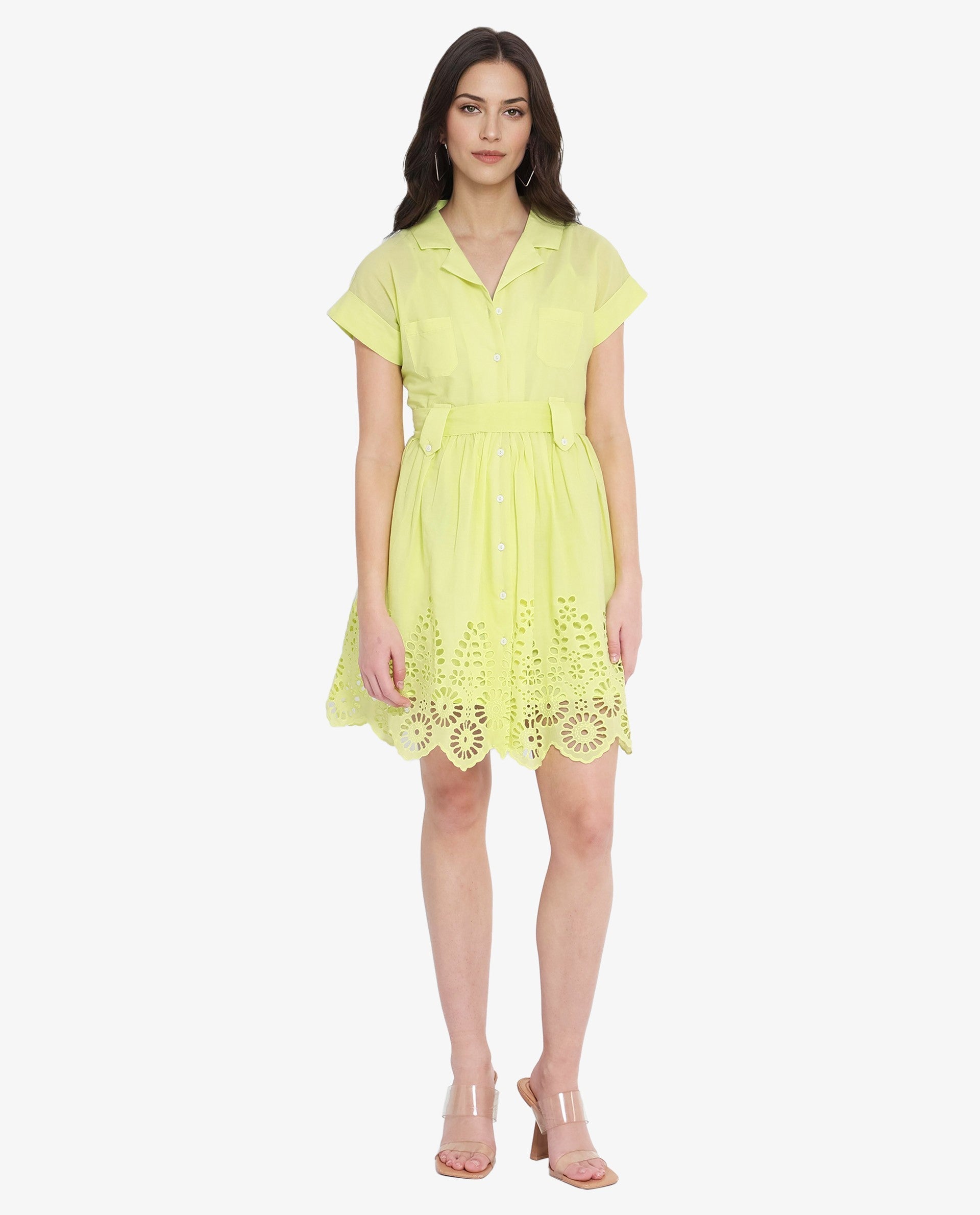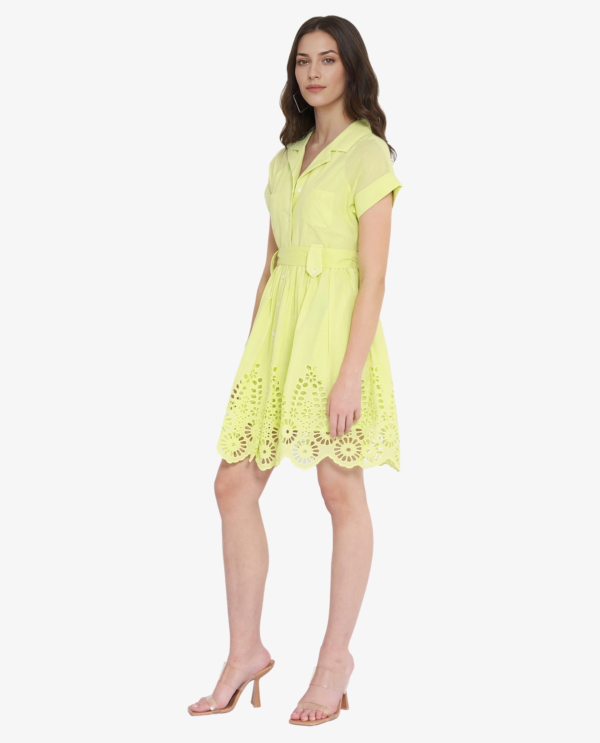 SCHIFFLI HEM KNEE-LENGTH SHIRT DRESS