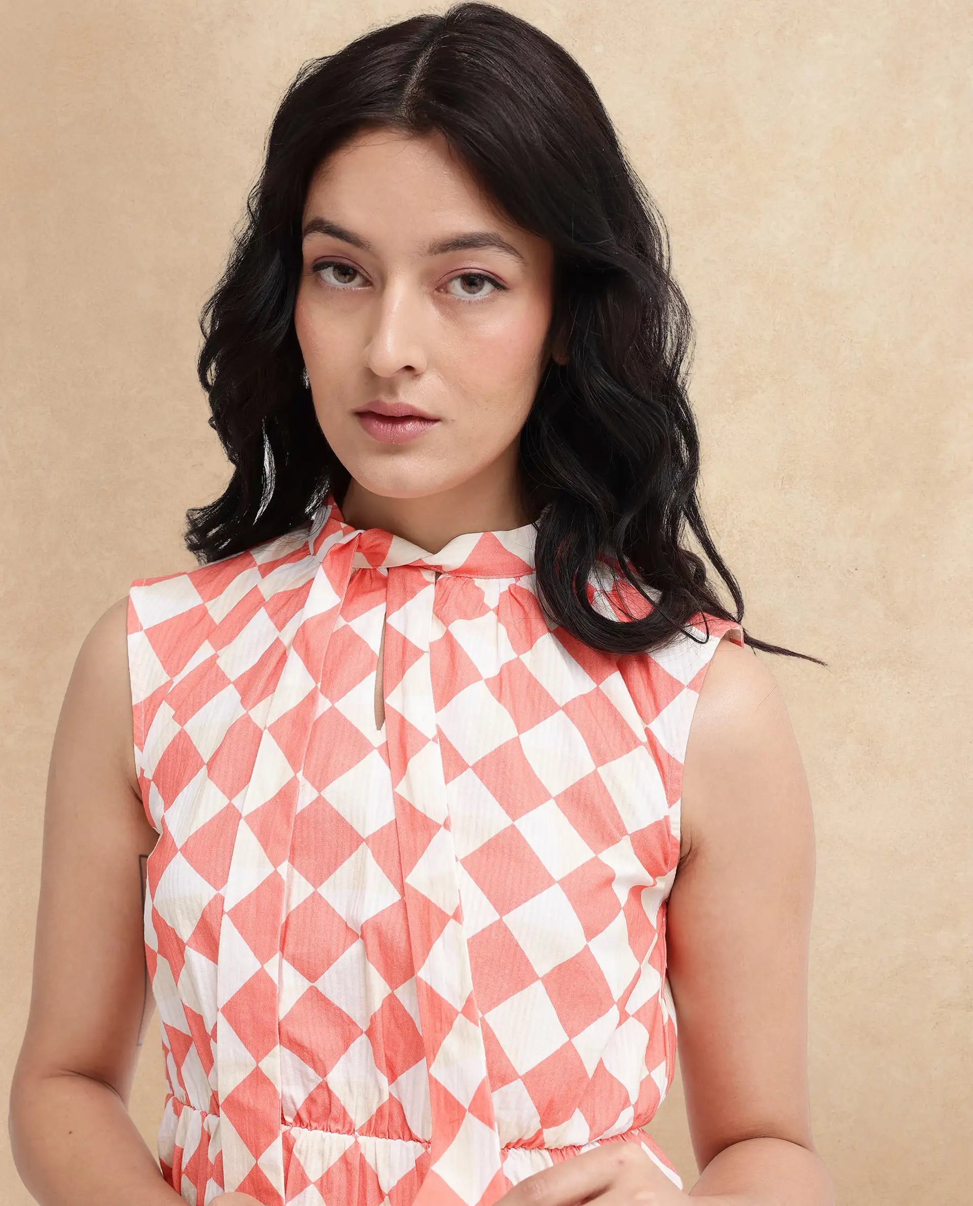 Rareism Women Juite SC Multi Sleeveless Tie Up Neck Tie Up Fit And Flare Geometric Print Knee Length Dress