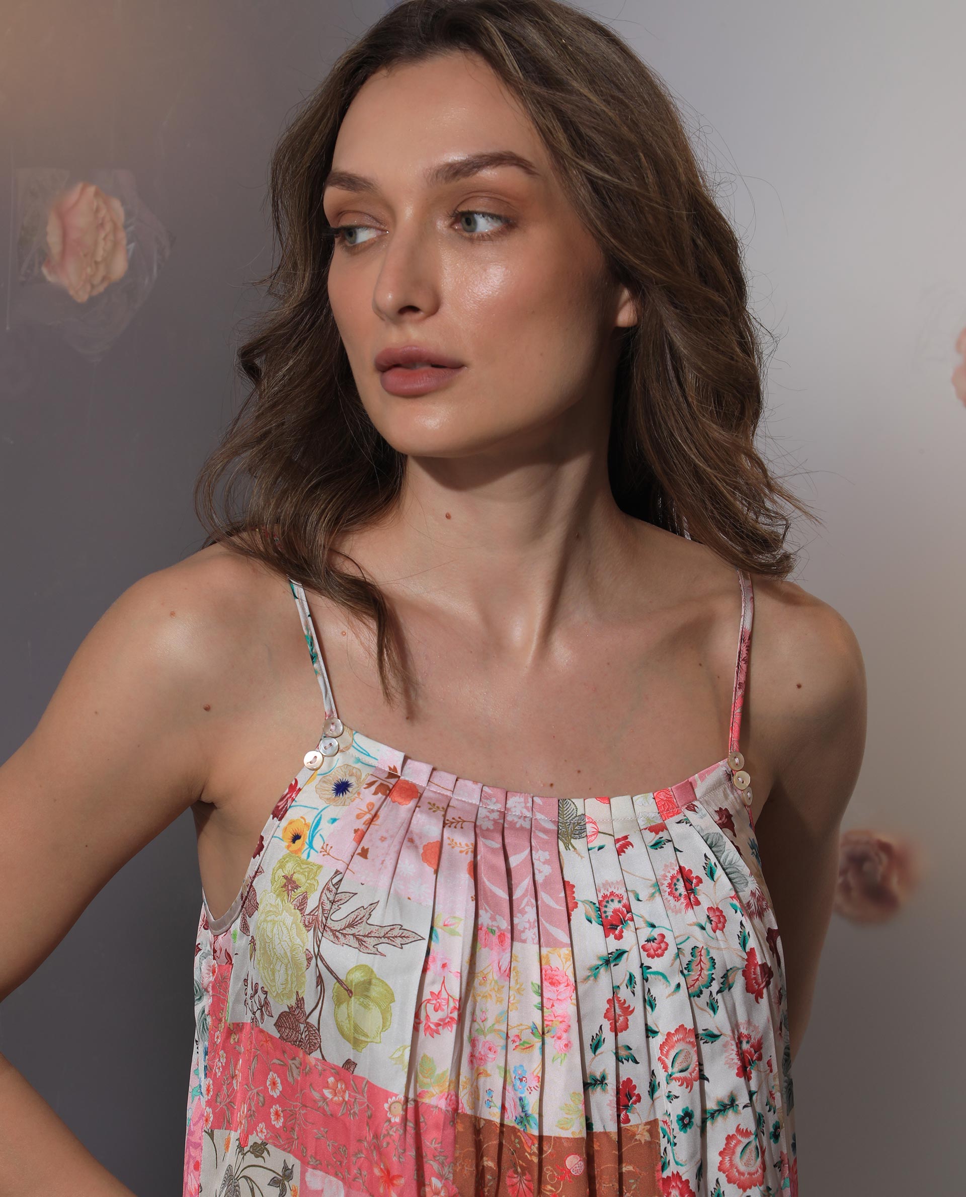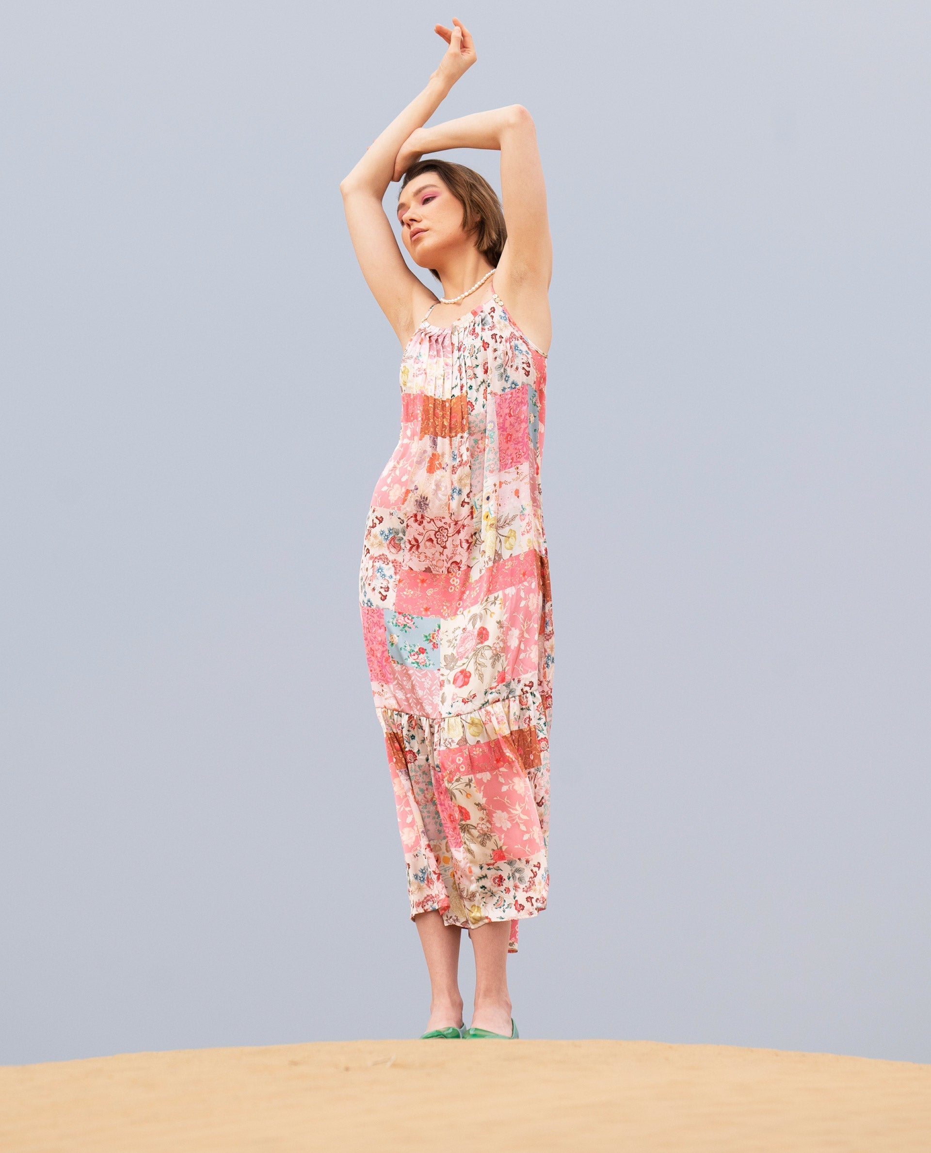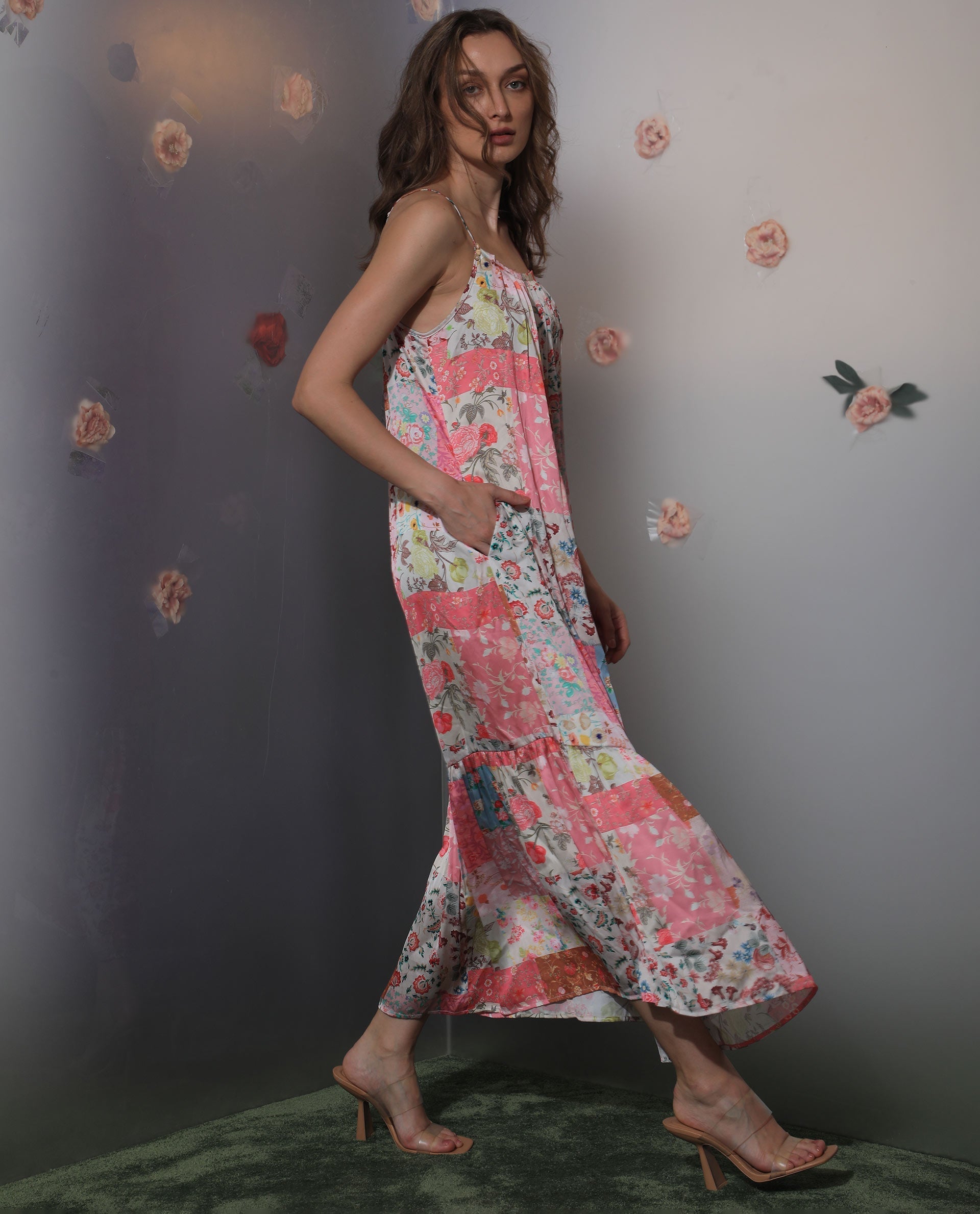 Elevate your summer wardrobe with this stunning floral patchwork maxi dress. Crafted from lightweight, breathable fabric, it offers a comfortable fit perfect for warm days. The vibrant floral pattern adds a touch of elegance, while the sleeveless design and spaghetti straps provide a breezy feel. Ideal for casual outings or beach vacations, this dress ensures you stay stylish and comfortable. Pair it with sandals for a relaxed look or dress it up with heels for a chic evening ensemble.