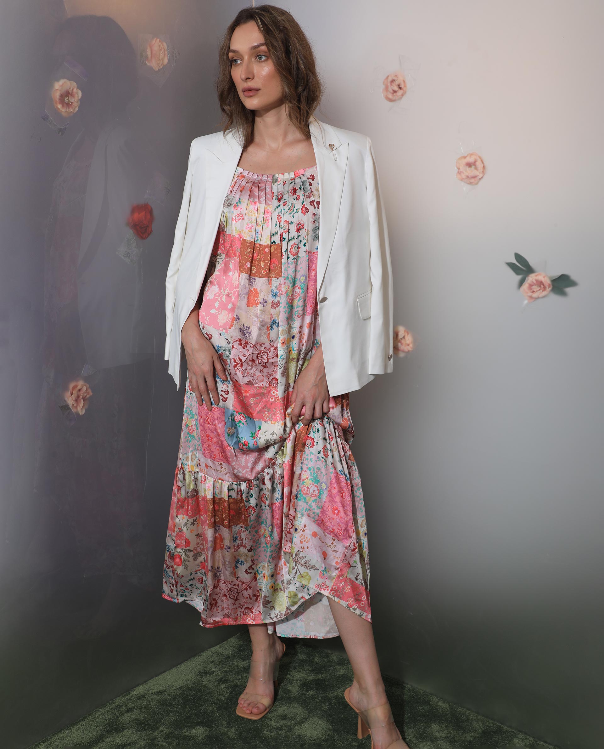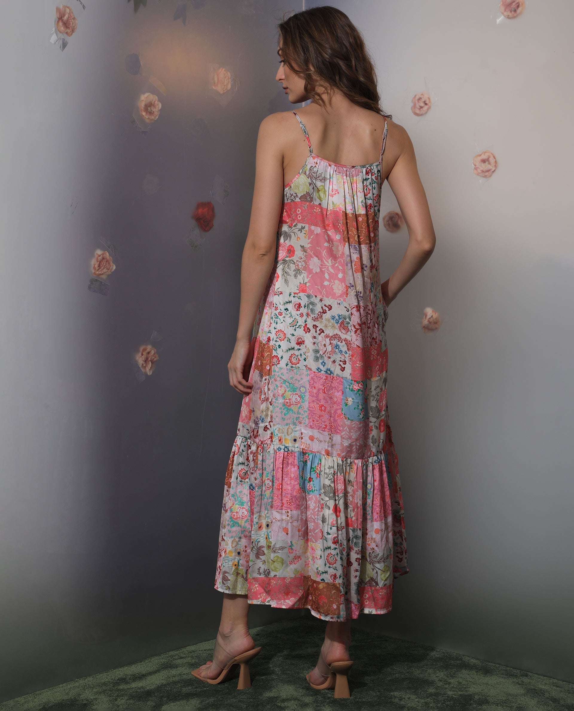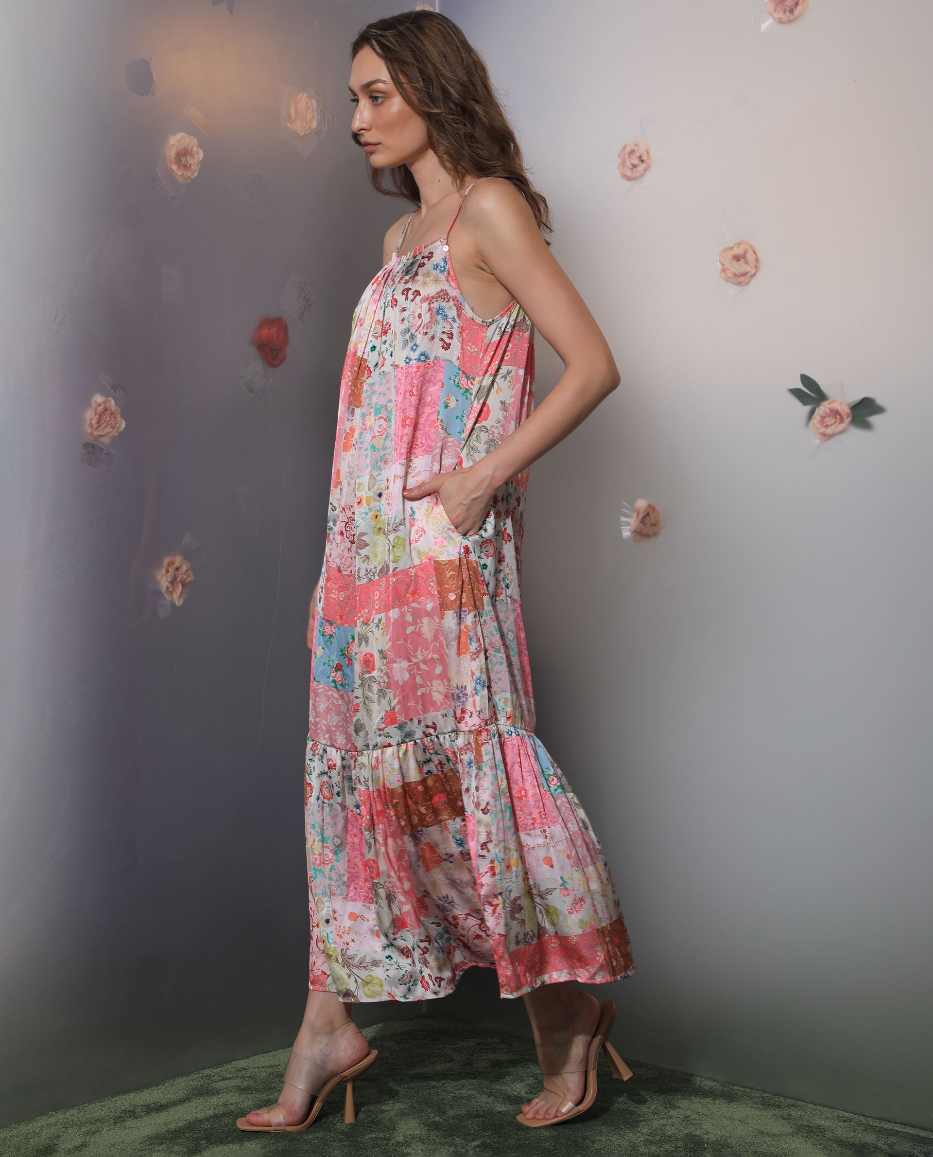 FLORAL PATCH PRINT MAXI DRESS