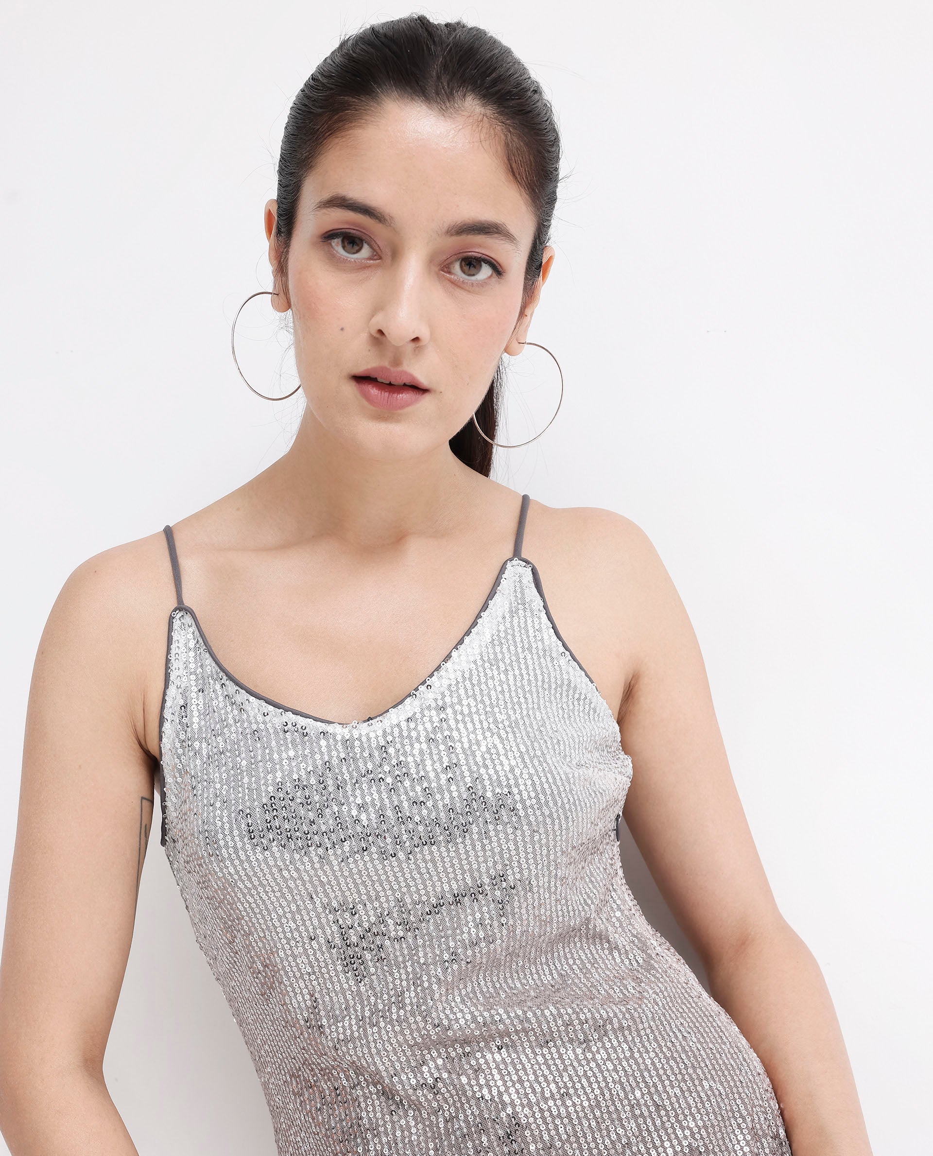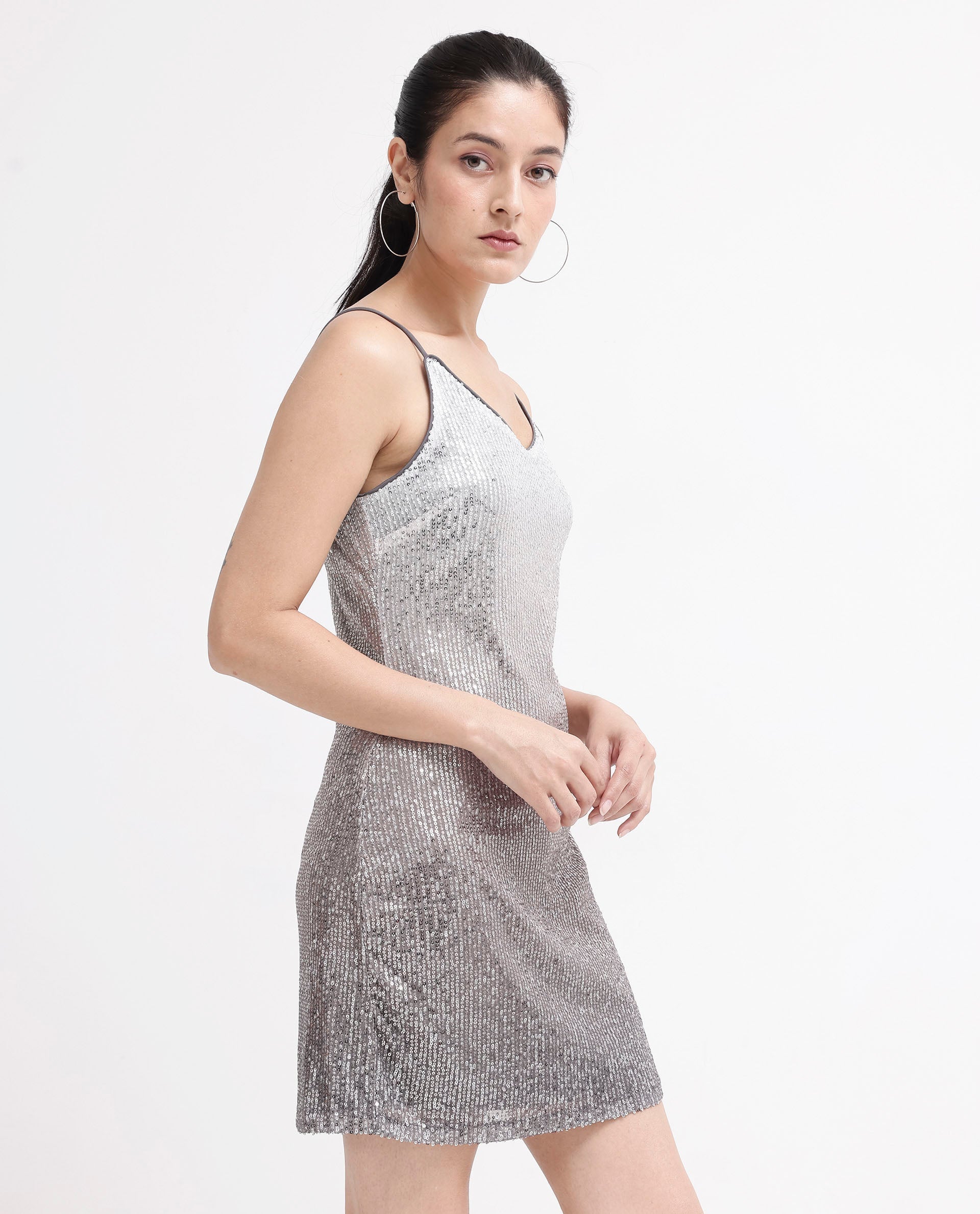 Rareism Women's Mykonos Metalic Multi    Shoulder Straps Sequined Bodycon Mini Dress