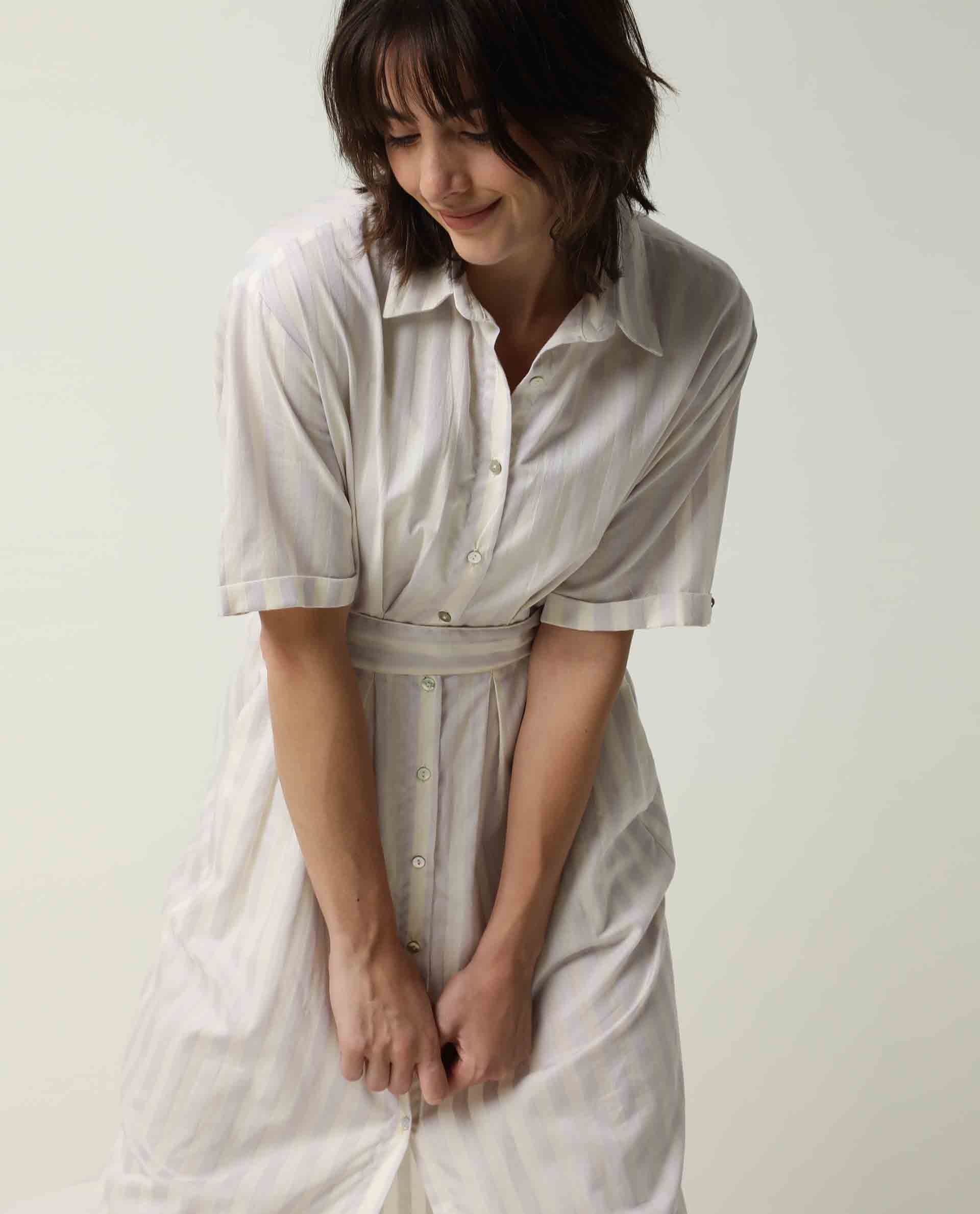 BUTTON DOWN SHIRT PLEATED MIDI DRESS