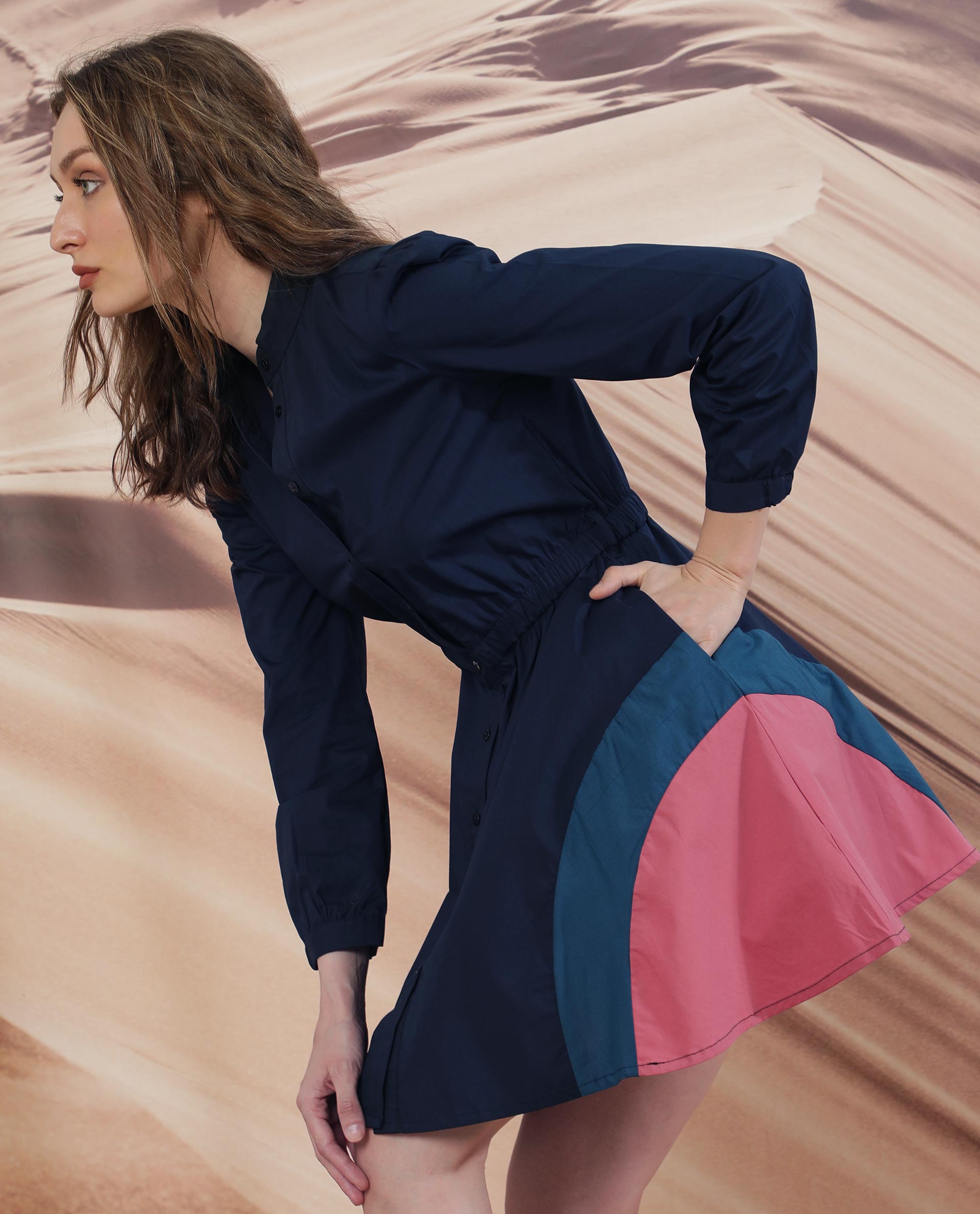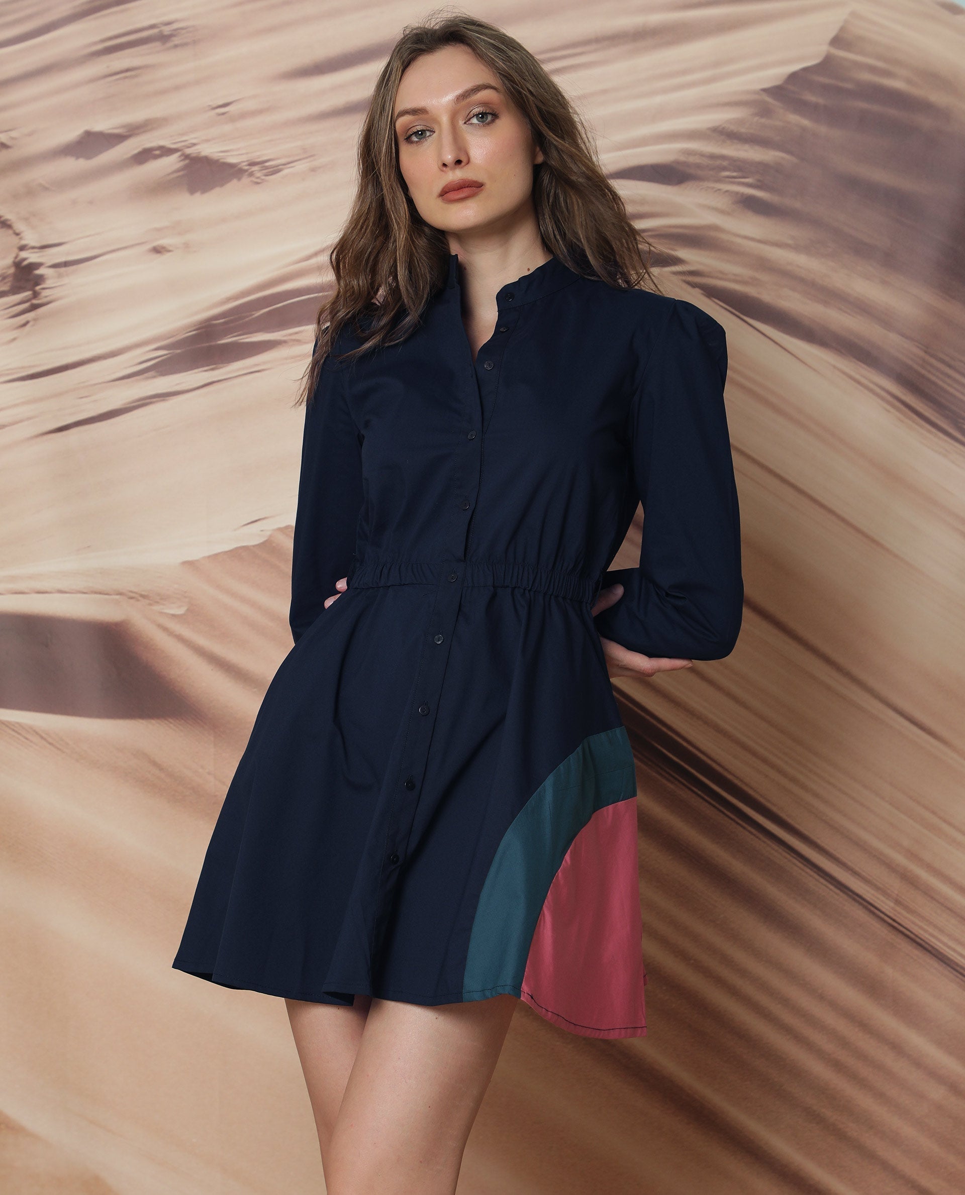COLOUR BLOCKED MANDARIN COLLAR SHIRT MINI DRESS