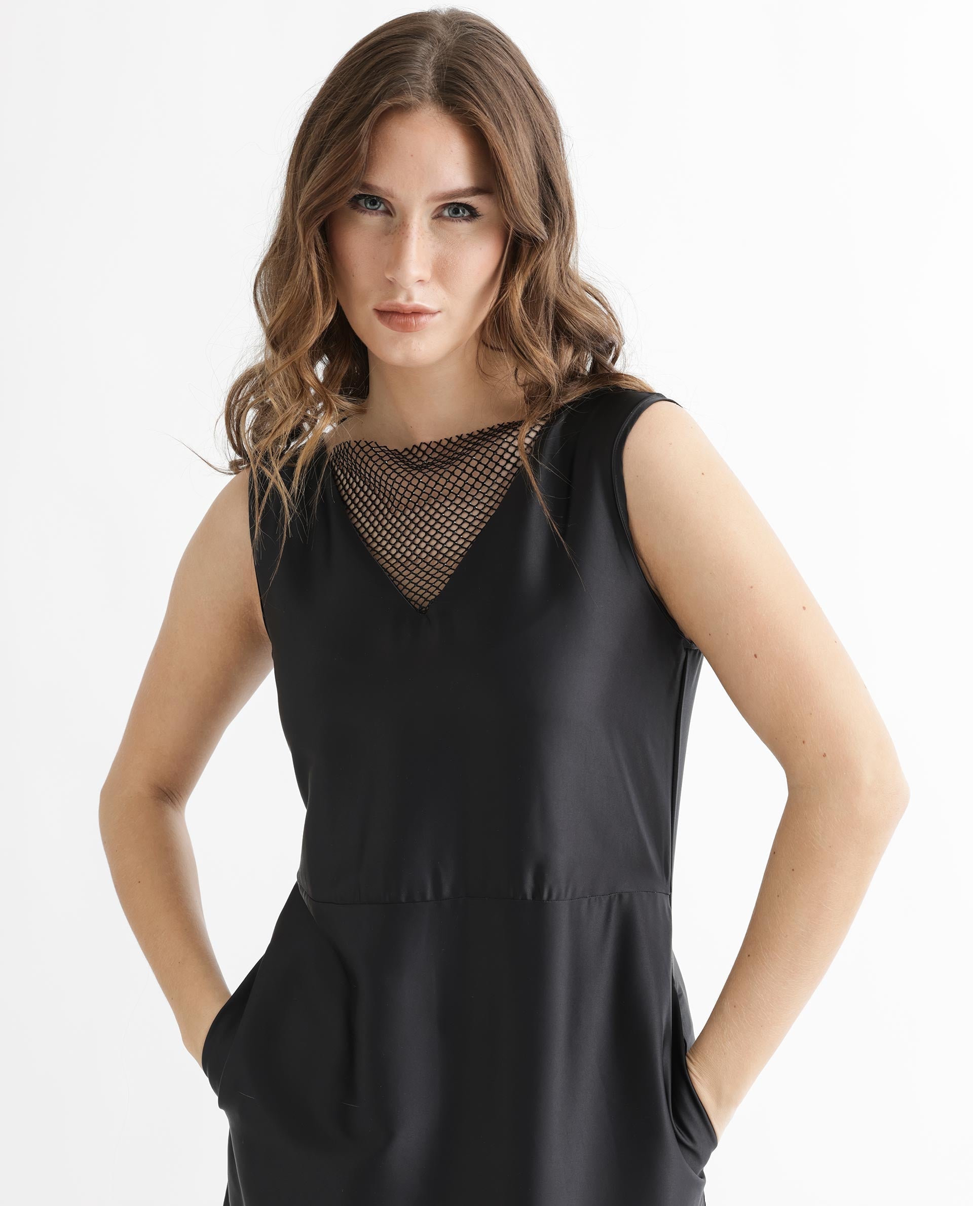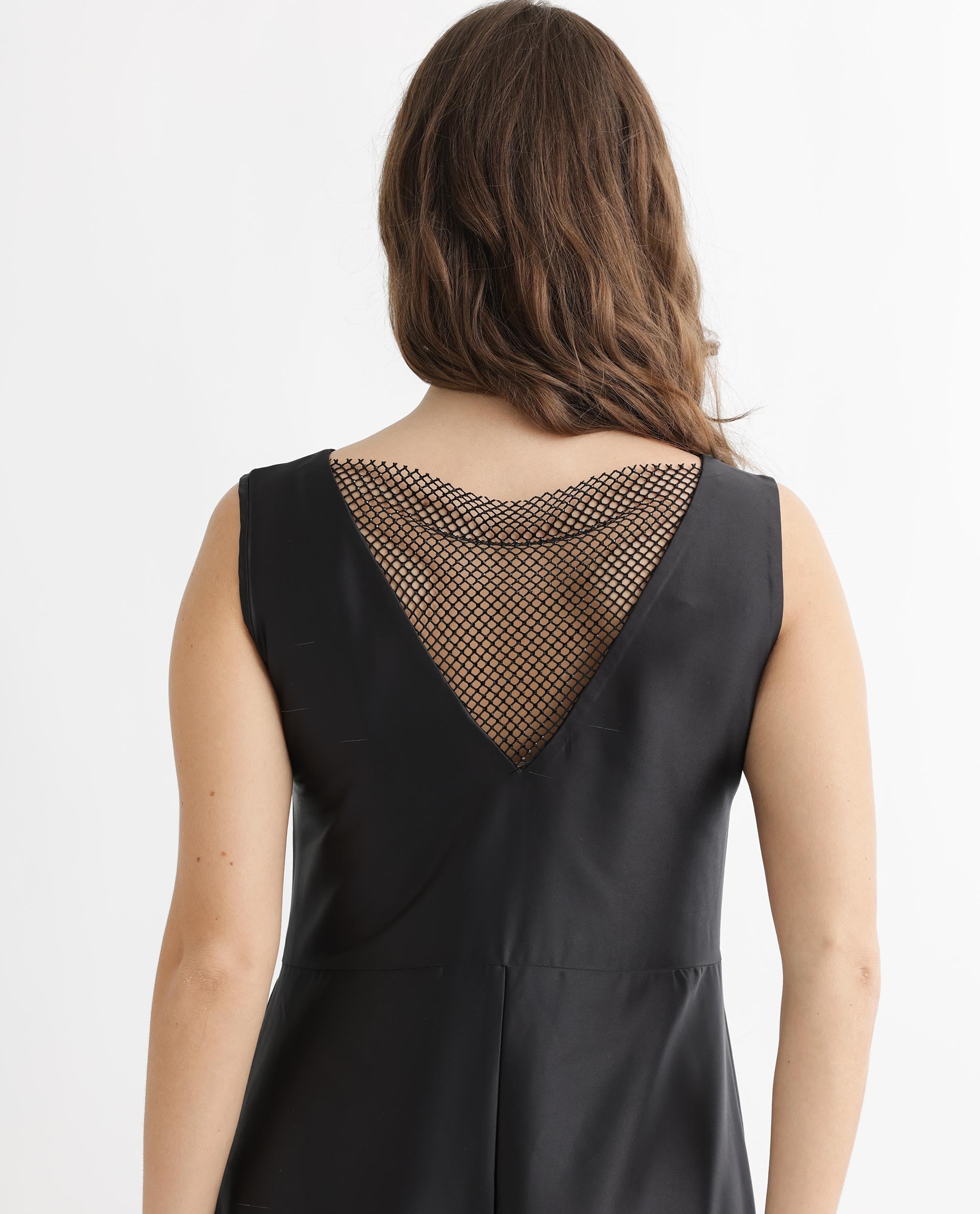1. Elevate your style with our sleeveless long dress, a stunning piece that exudes elegance and grace with its intricate design elements.