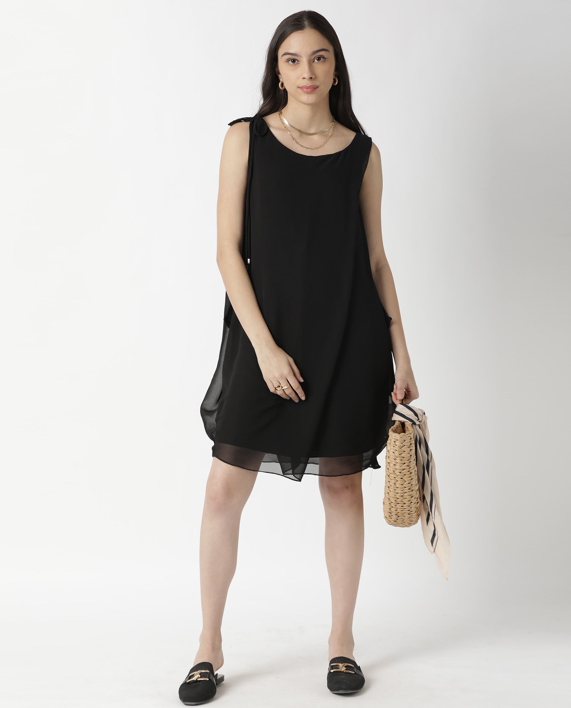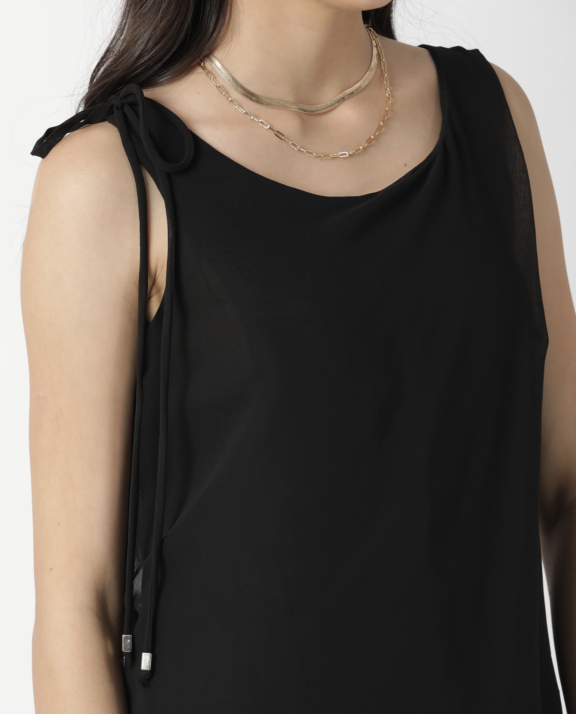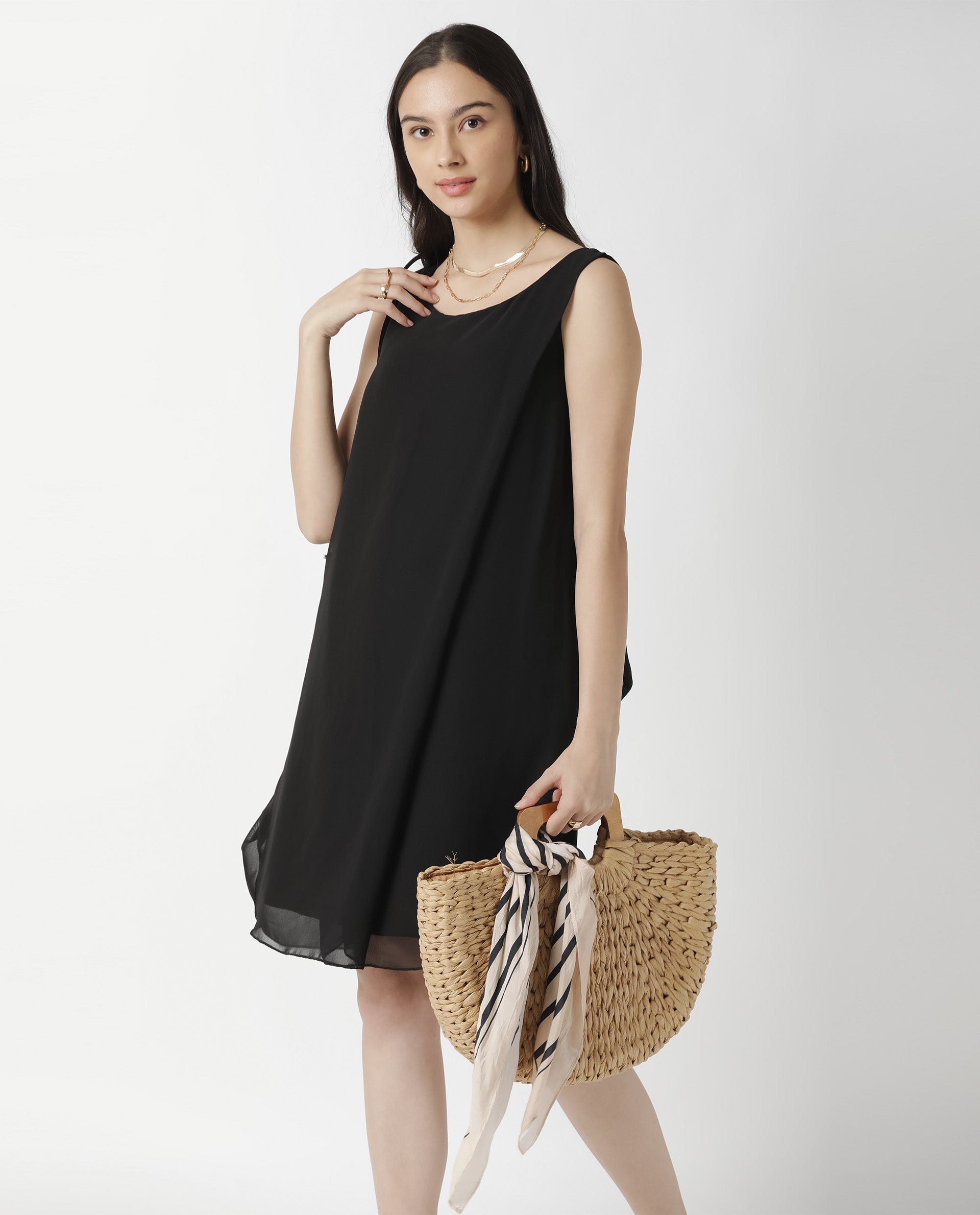 Rareism Womens Saabo Black Dress Polyester Fabric Regular Fit Sleeveless Round Neck