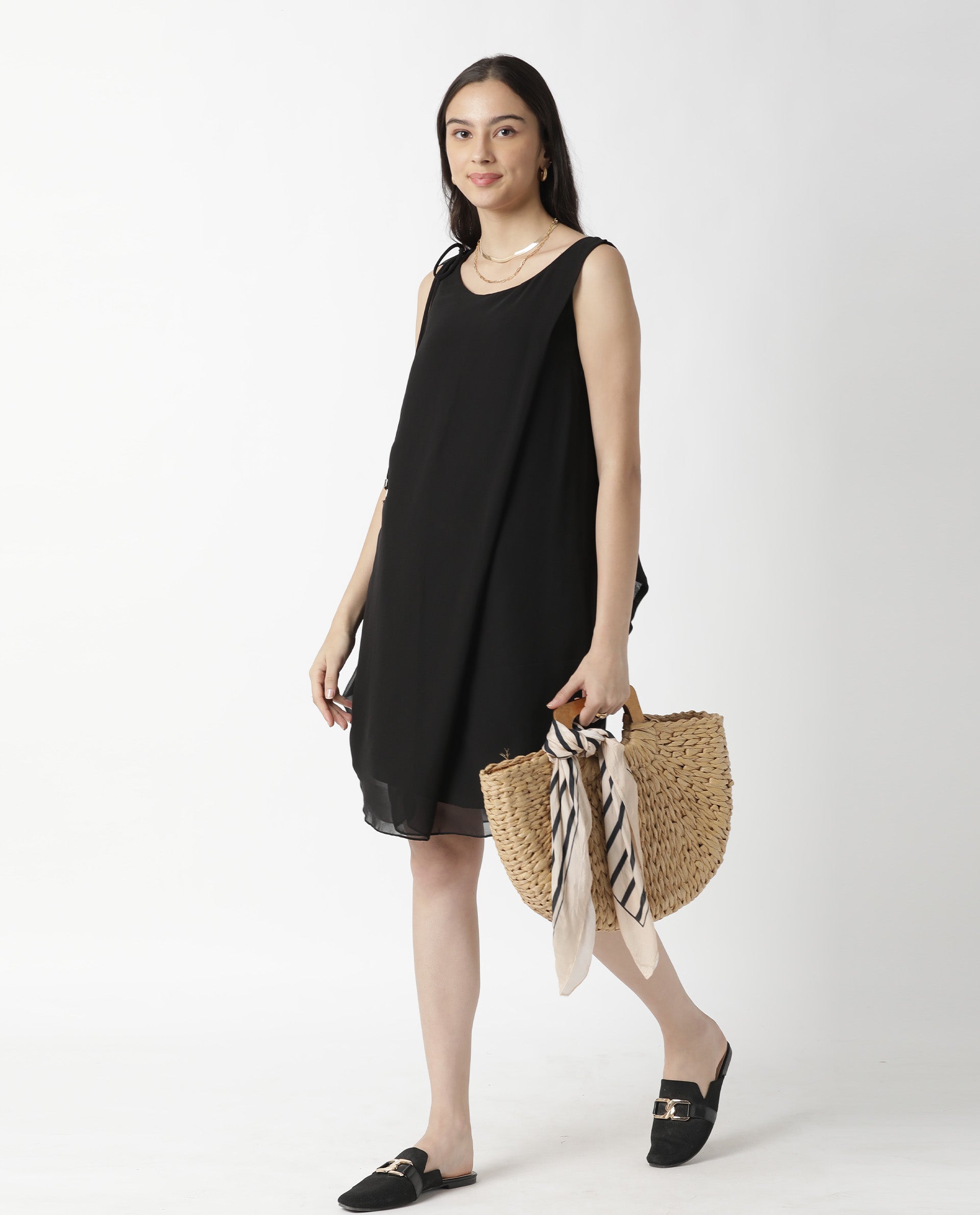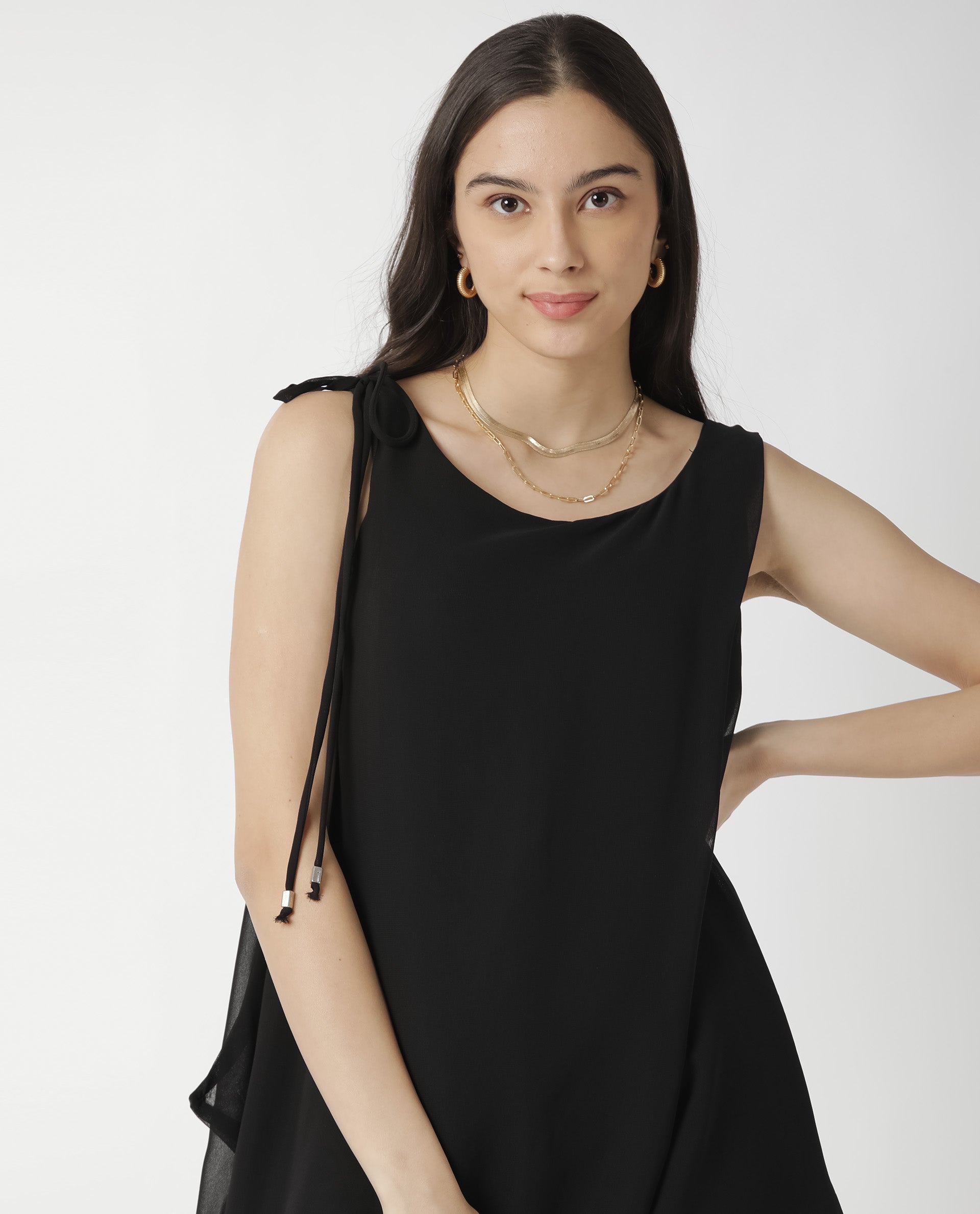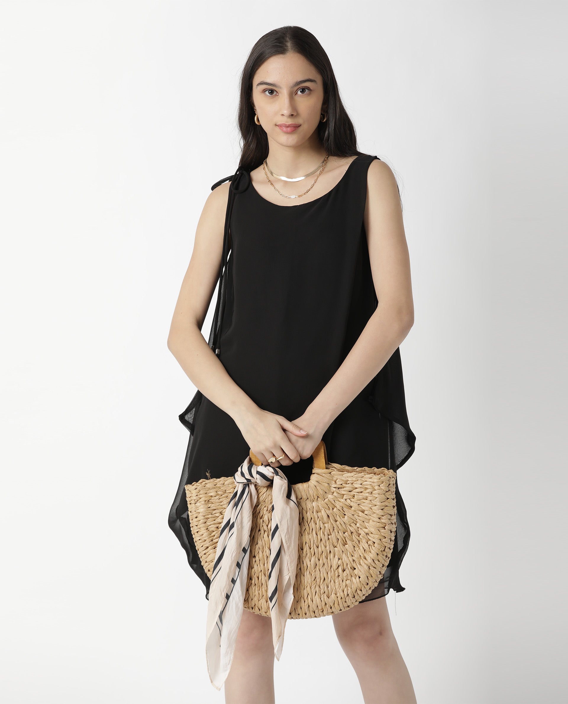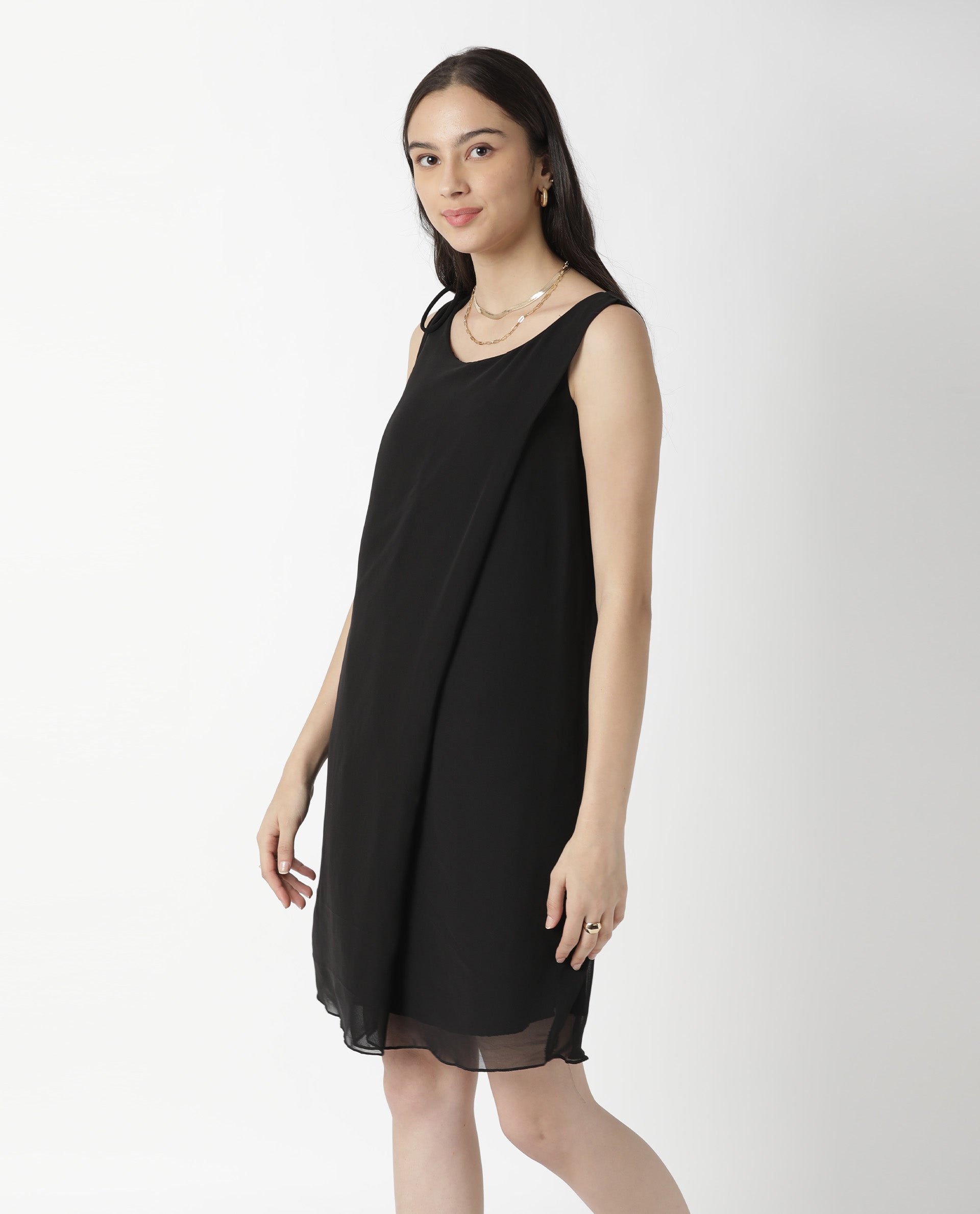 Rareism Womens Saabo Black Dress Polyester Fabric Regular Fit Sleeveless Round Neck