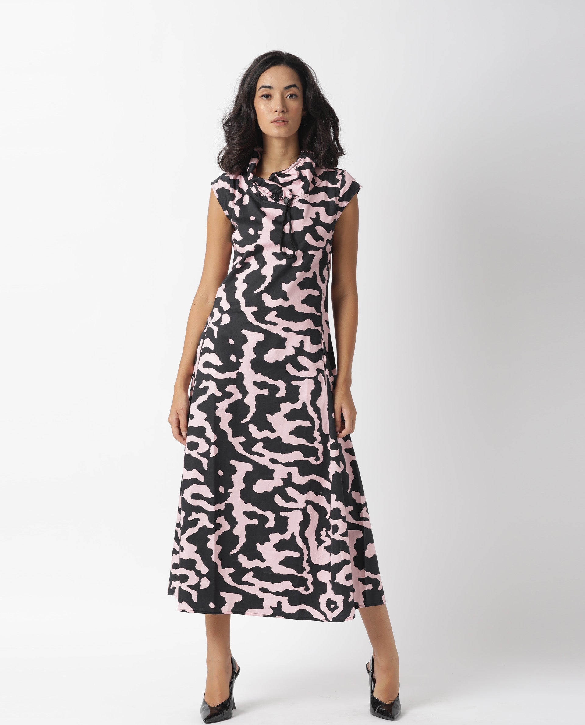ABSTRACT PRINT A LINE MIDI DRESS