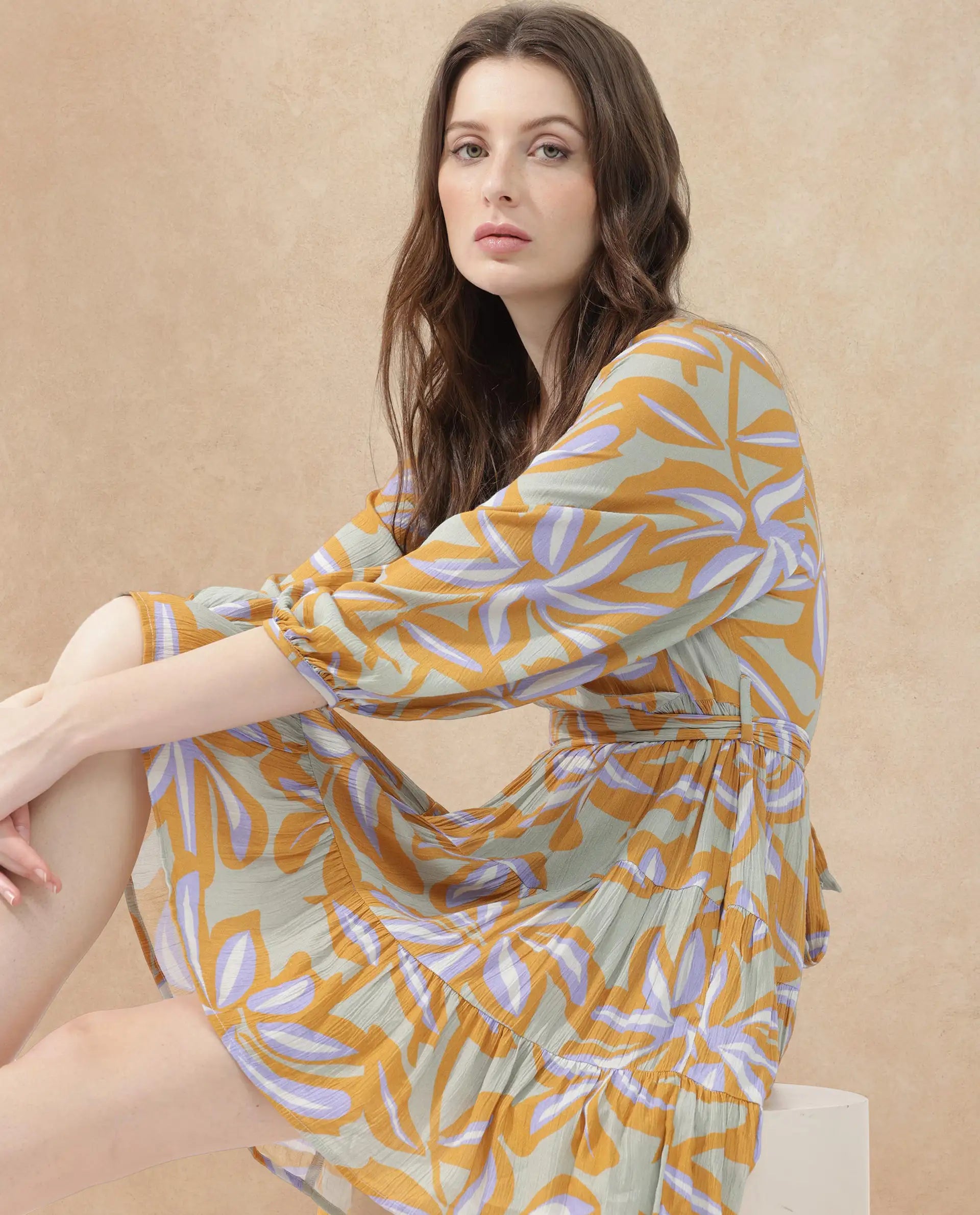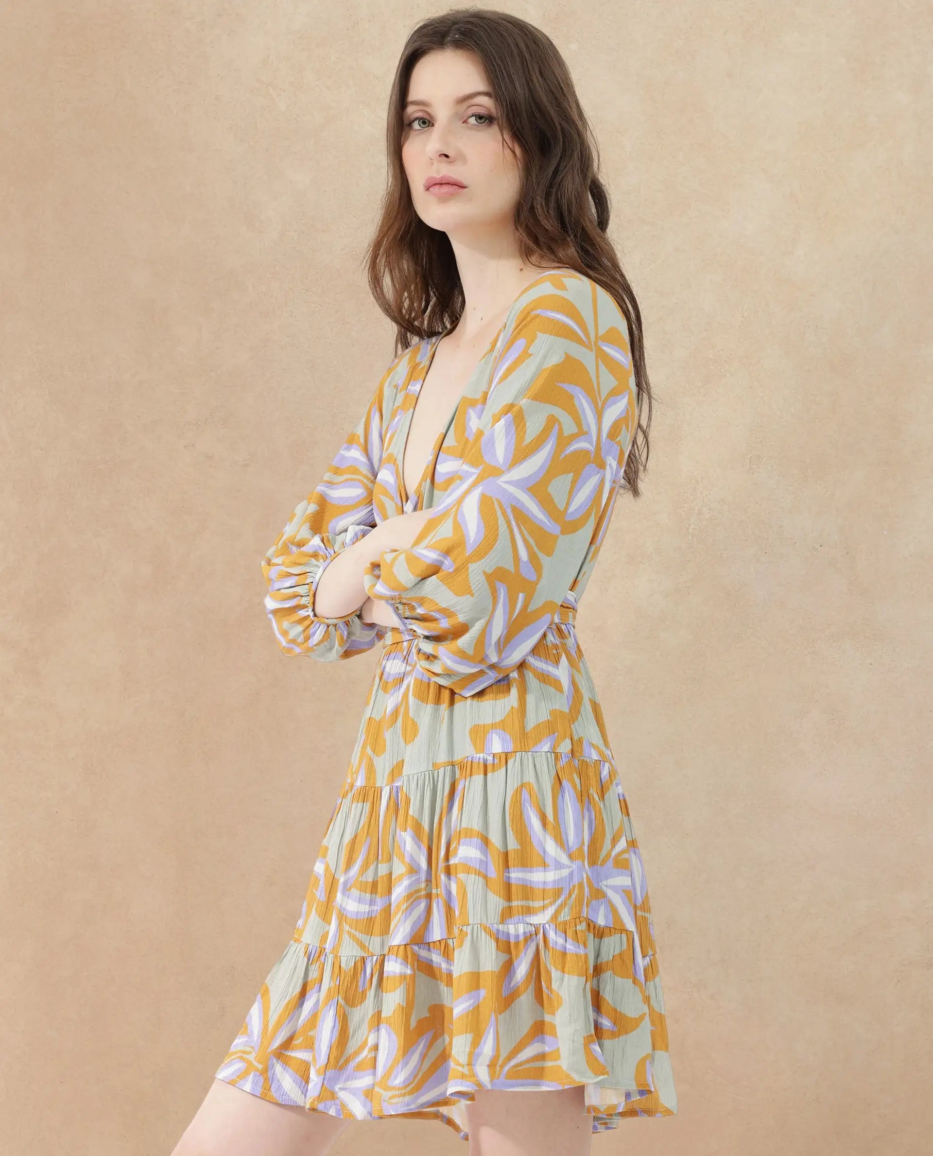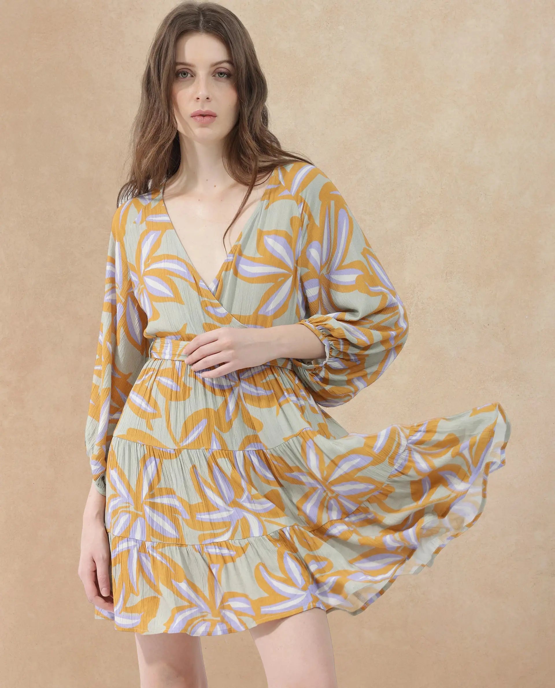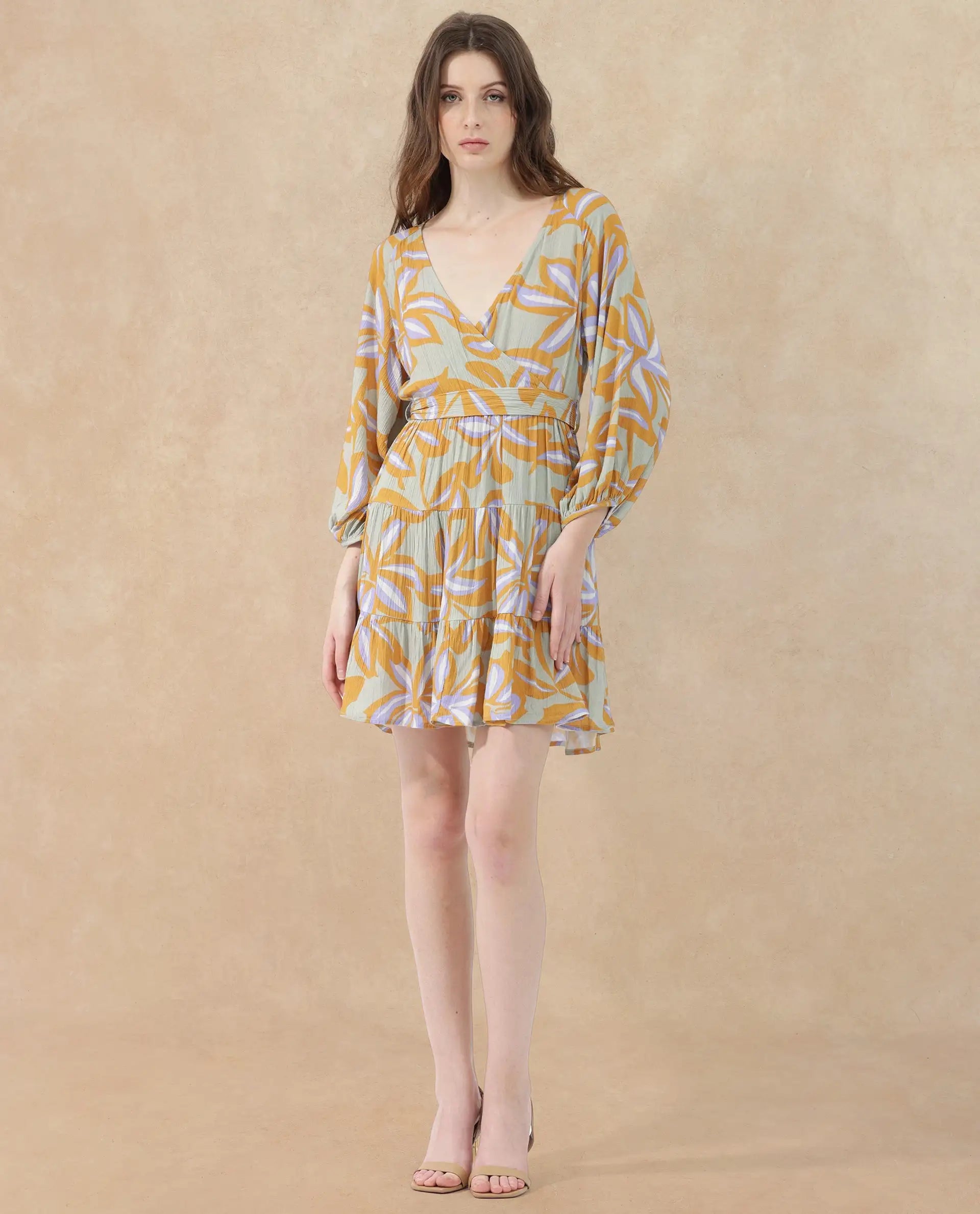 Elevate your wardrobe with this chic Abstract print mini dress, perfect for any occasion. Featuring a flattering Overlap neck and long sleeves, this dress offers a comfortable and stylish fit. The lightweight fabric ensures ease of movement, while the tiered design adds a touch of elegance. Ideal for casual outings or special events, this dress pairs beautifully with your favorite accessories. Embrace effortless style and make a statement with this versatile piece.