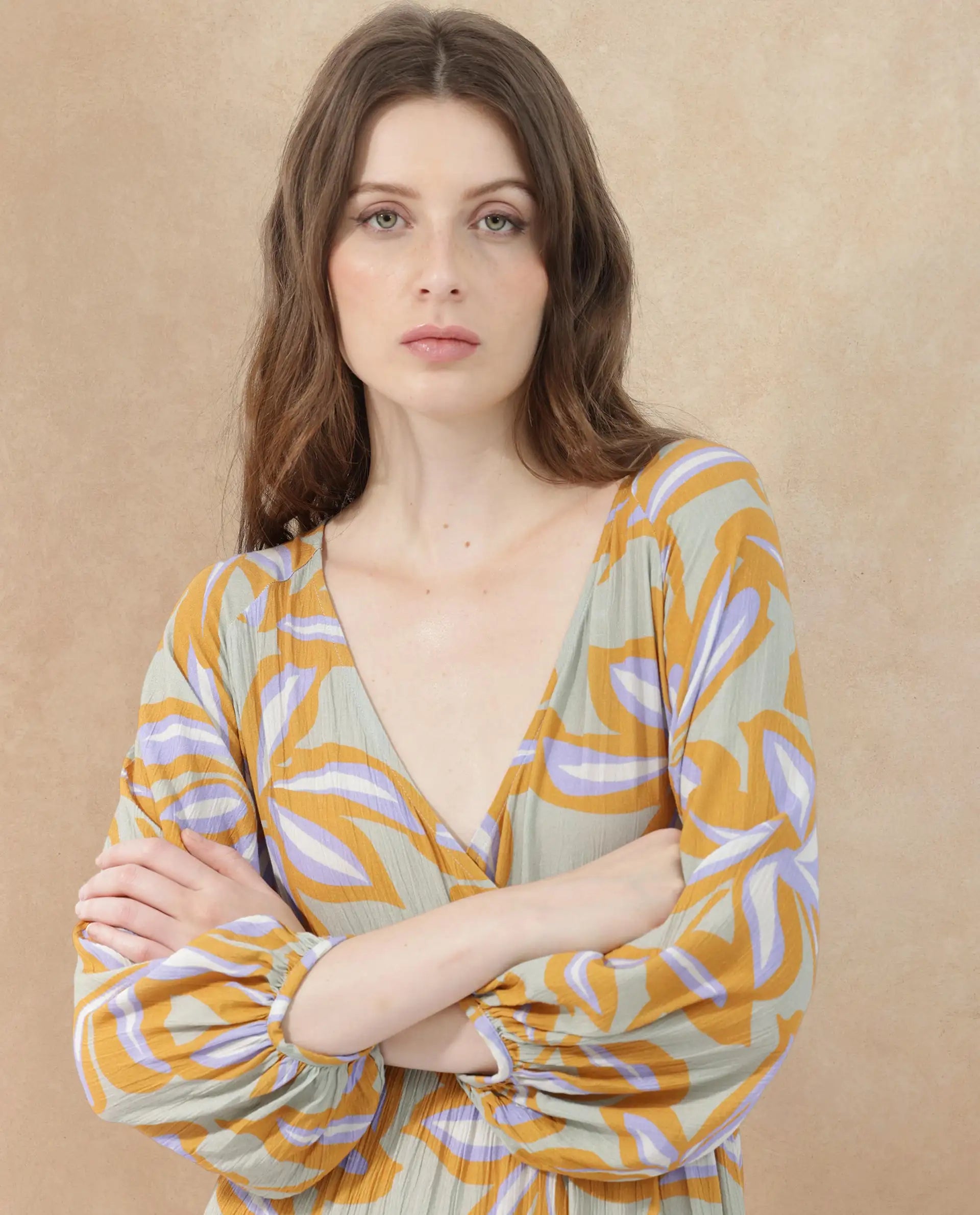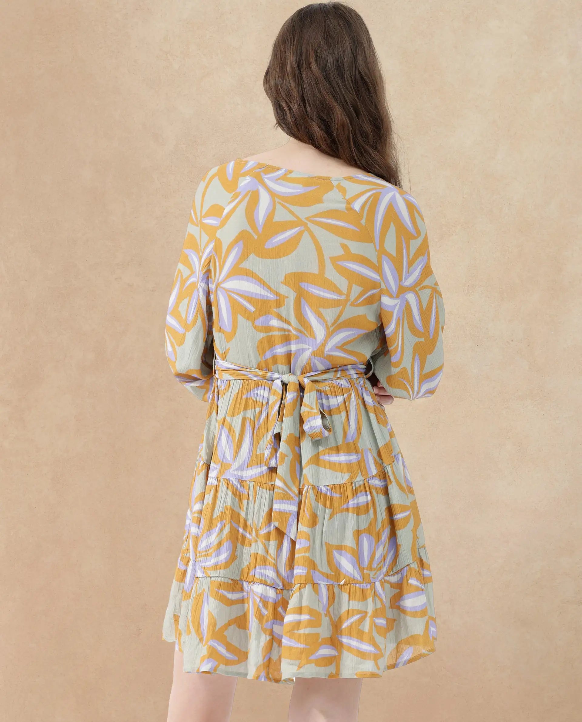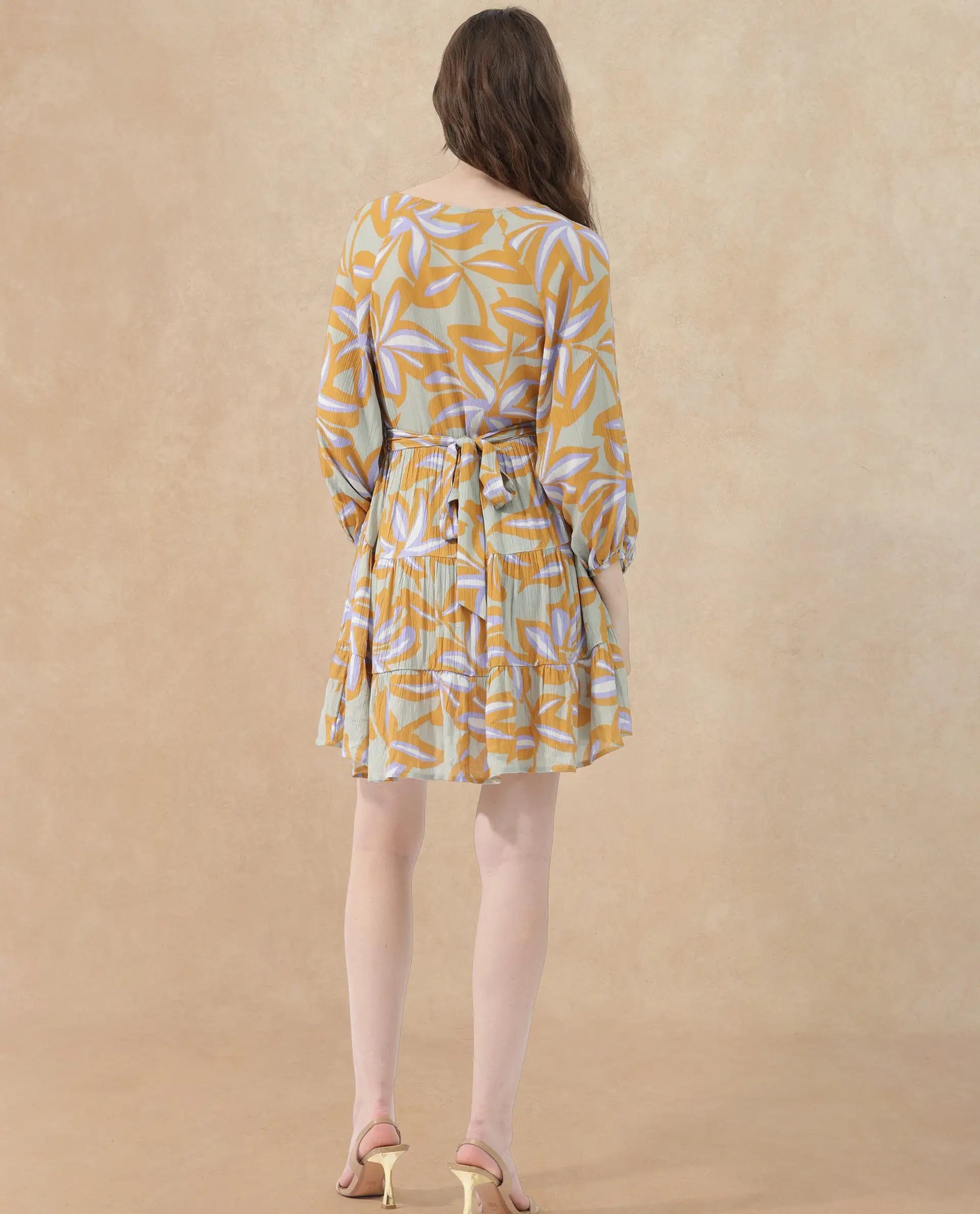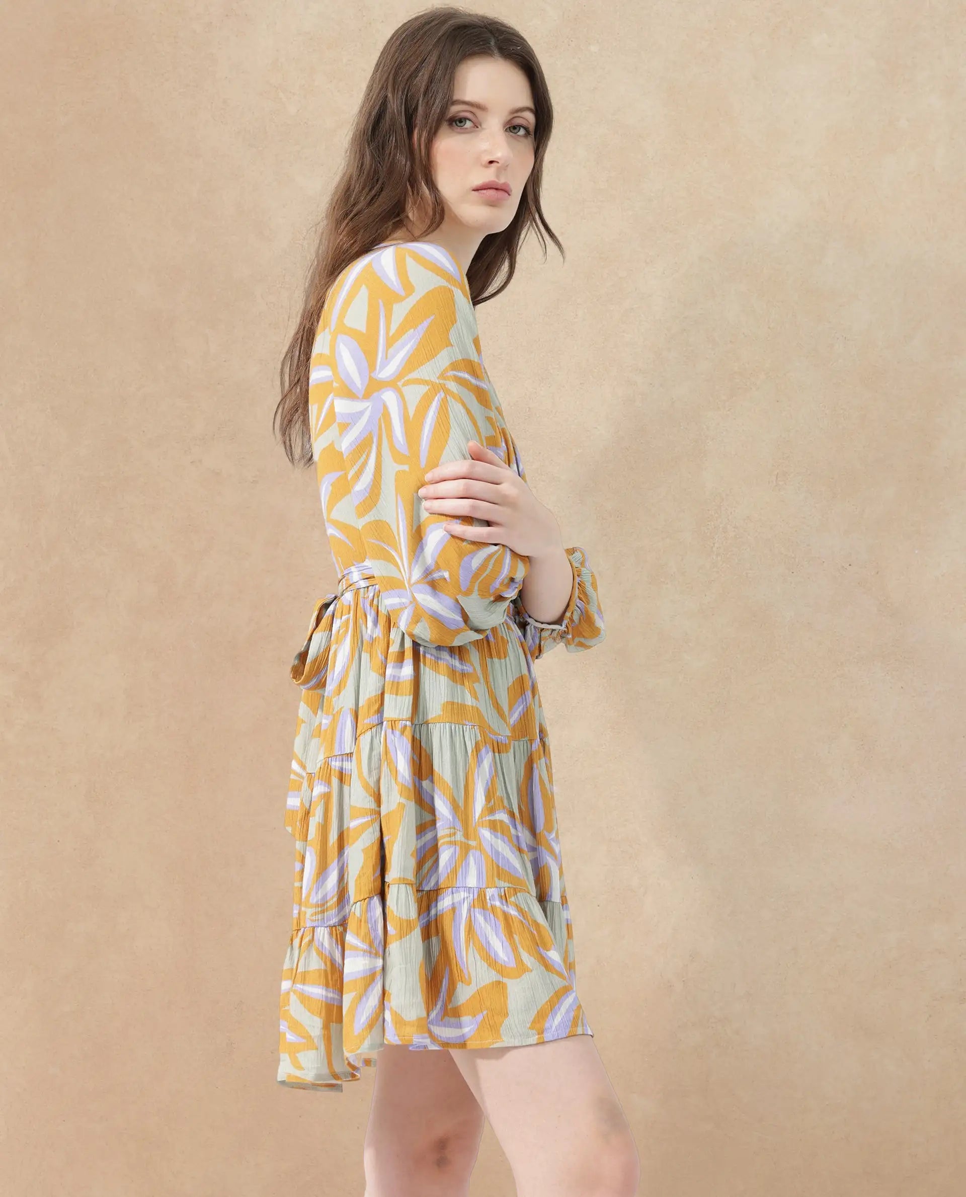 Elevate your wardrobe with this chic Abstract print mini dress, perfect for any occasion. Featuring a flattering Overlap neck and long sleeves, this dress offers a comfortable and stylish fit. The lightweight fabric ensures ease of movement, while the tiered design adds a touch of elegance. Ideal for casual outings or special events, this dress pairs beautifully with your favorite accessories. Embrace effortless style and make a statement with this versatile piece.