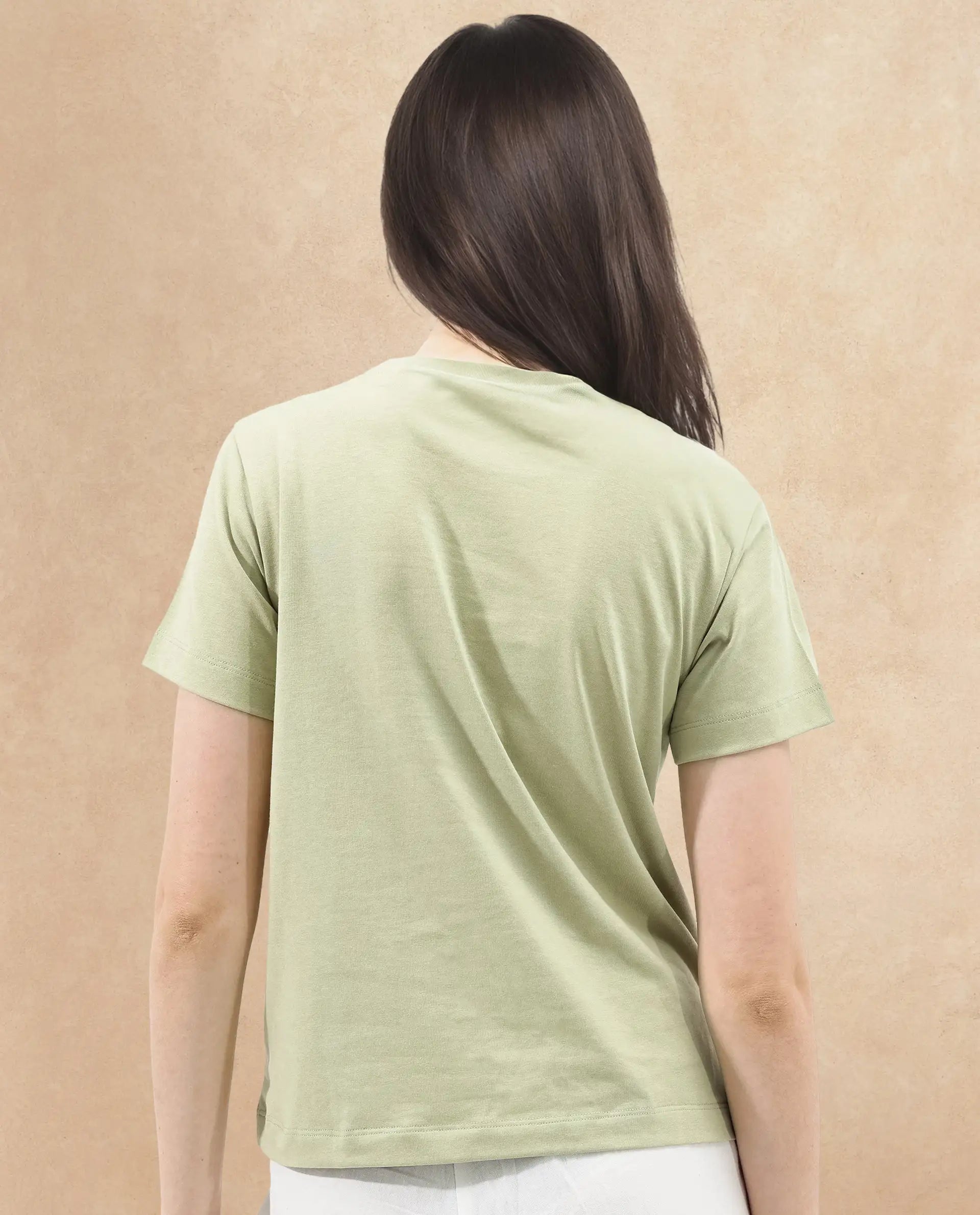 Rareism Women Erin Light Green Cotton Poly Fabric Short Sleeve Crew Neck Solid T-Shirt