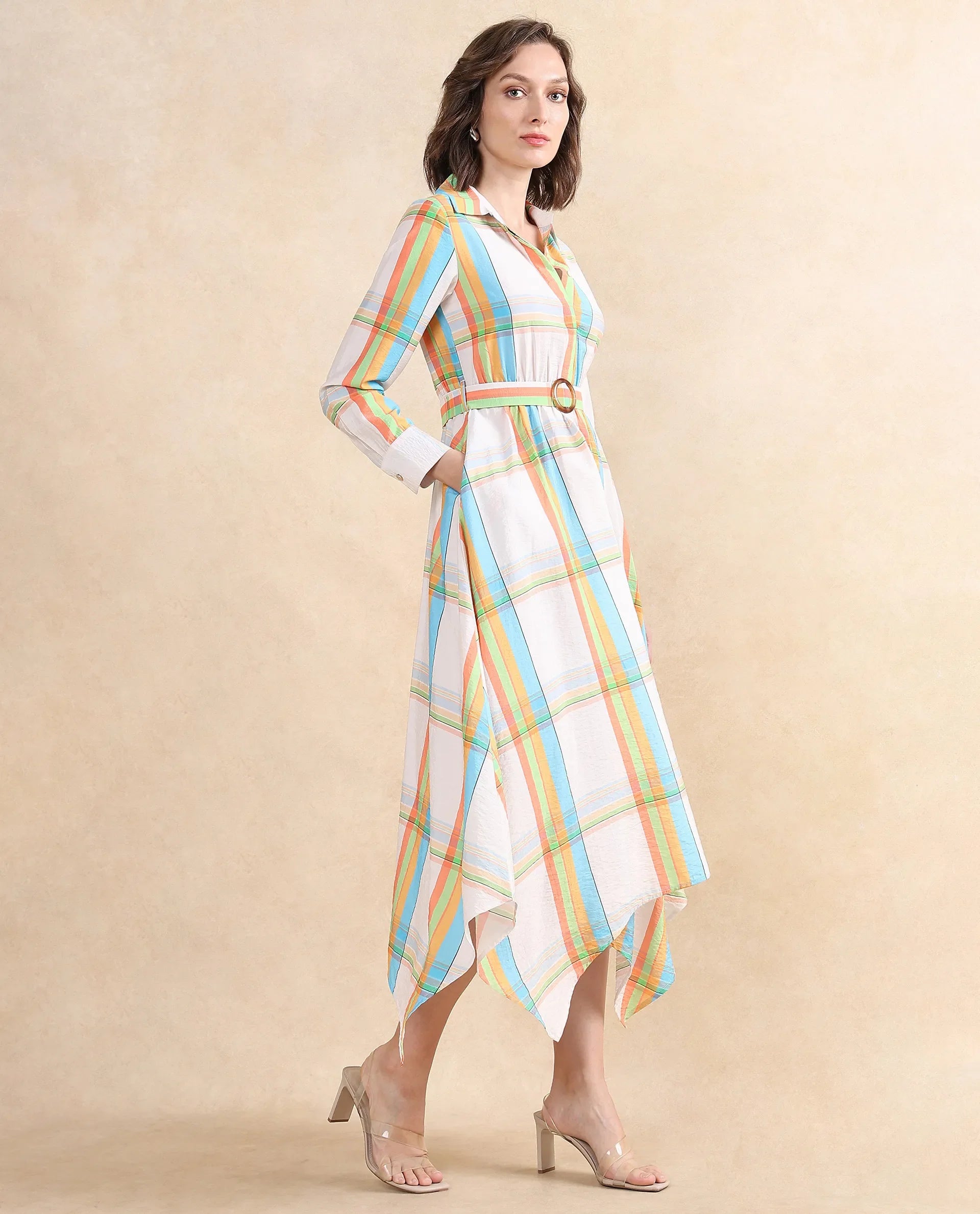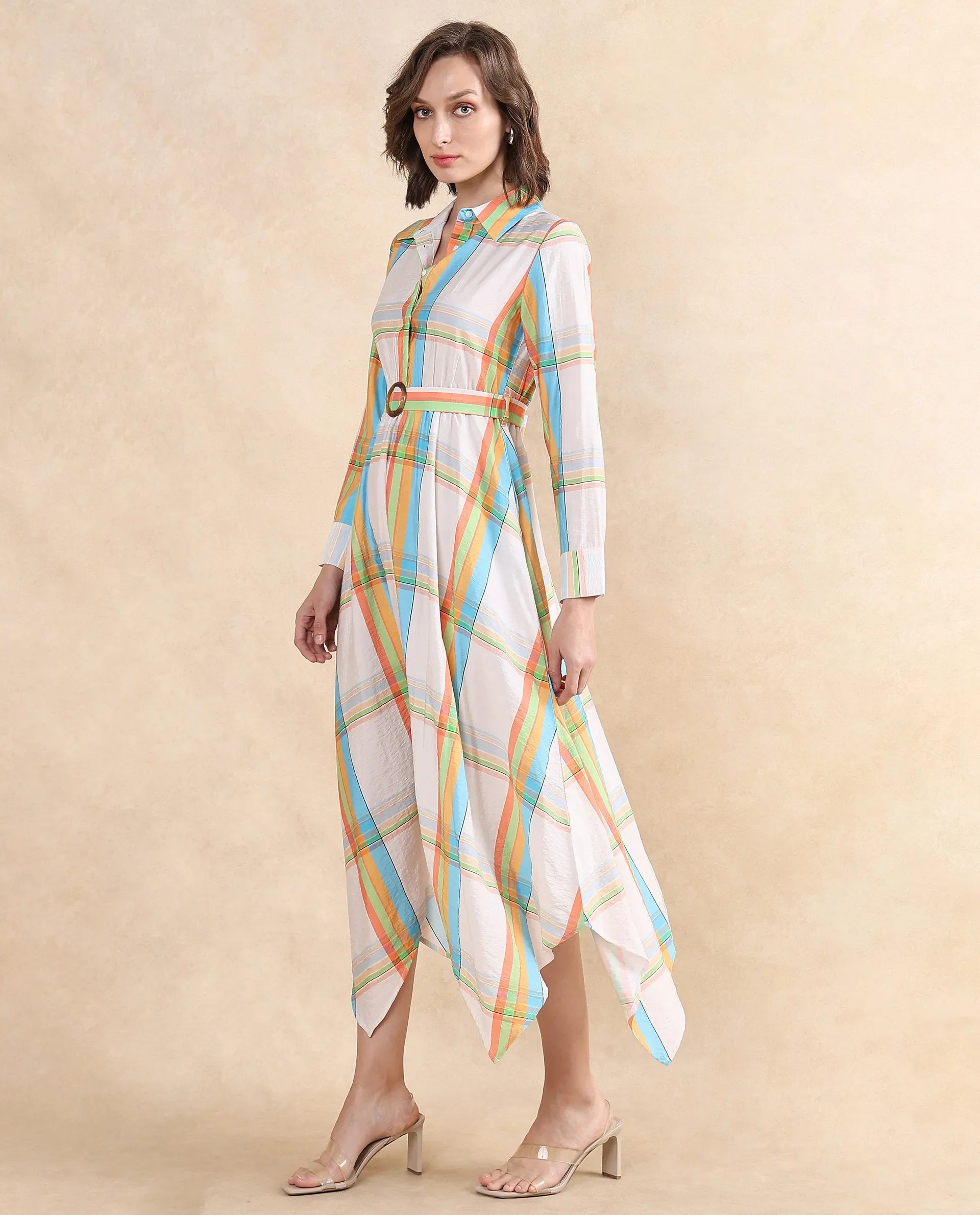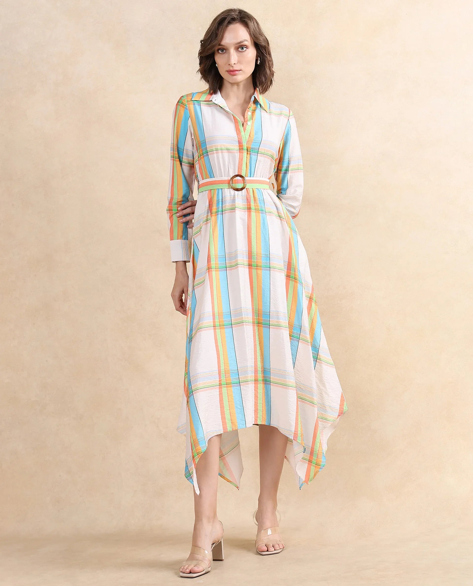 Rareism Women Ariska Multi Nylon Viscose Fabric Cuffed Sleeve Collared Neck Button Closure Fit And Flare Maxi Printed Dress