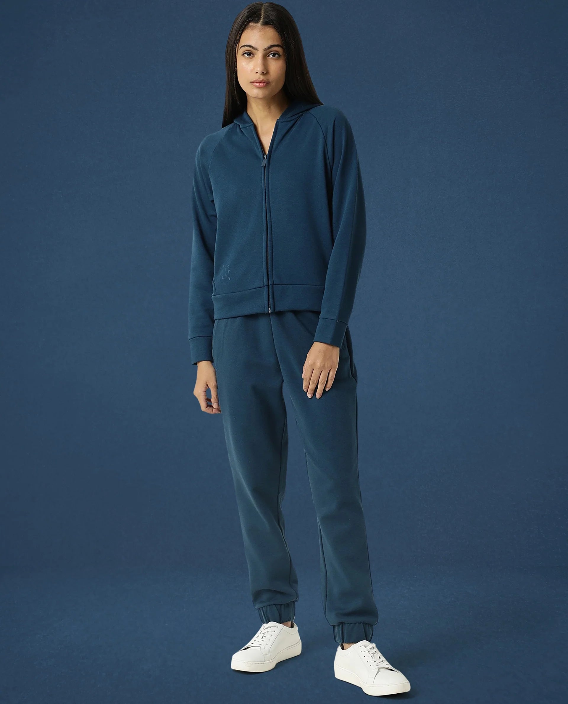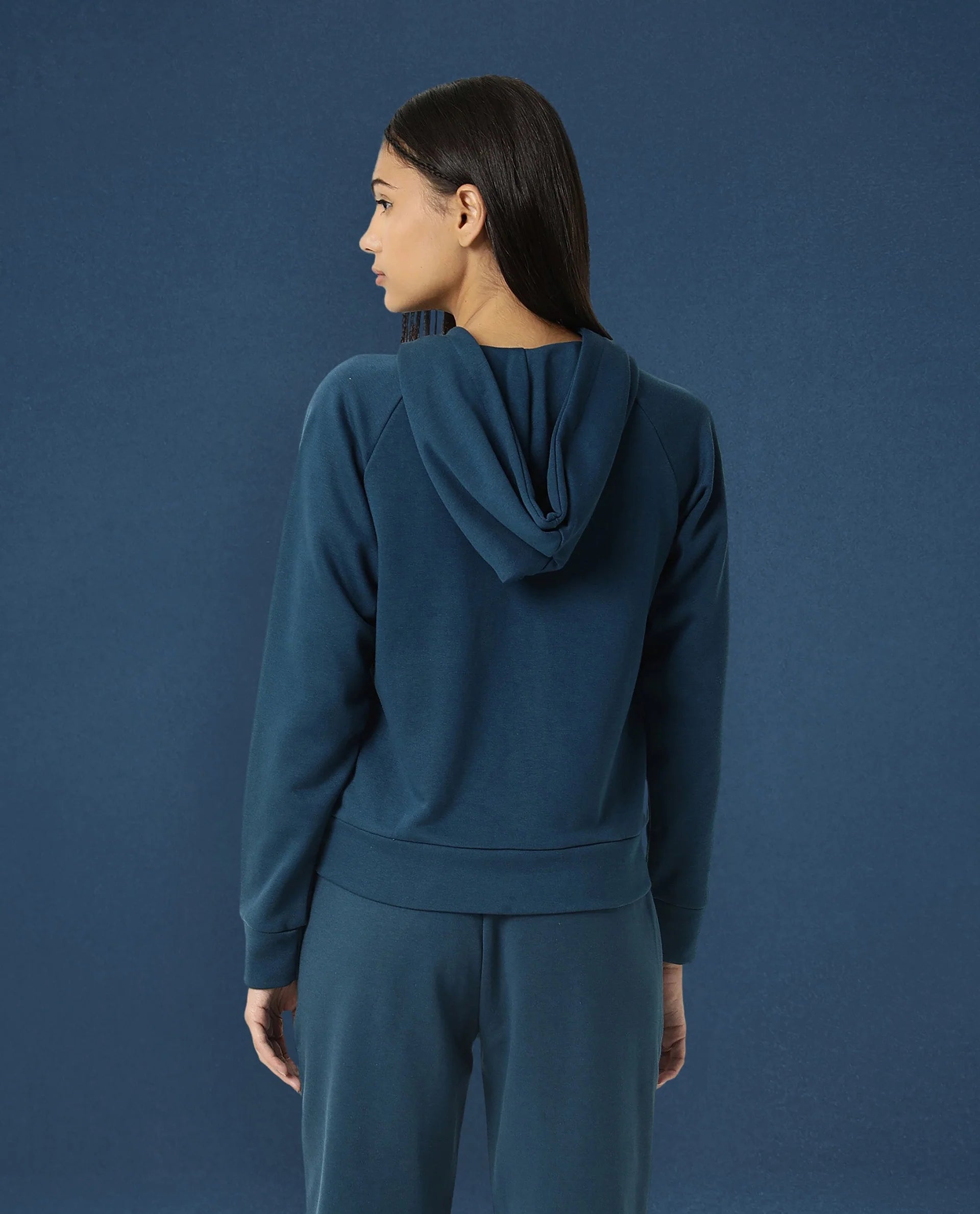 Rareism Women Capper Dusky Green Cotton Blend Fabric Full Sleeves Solid Hooded Jacket