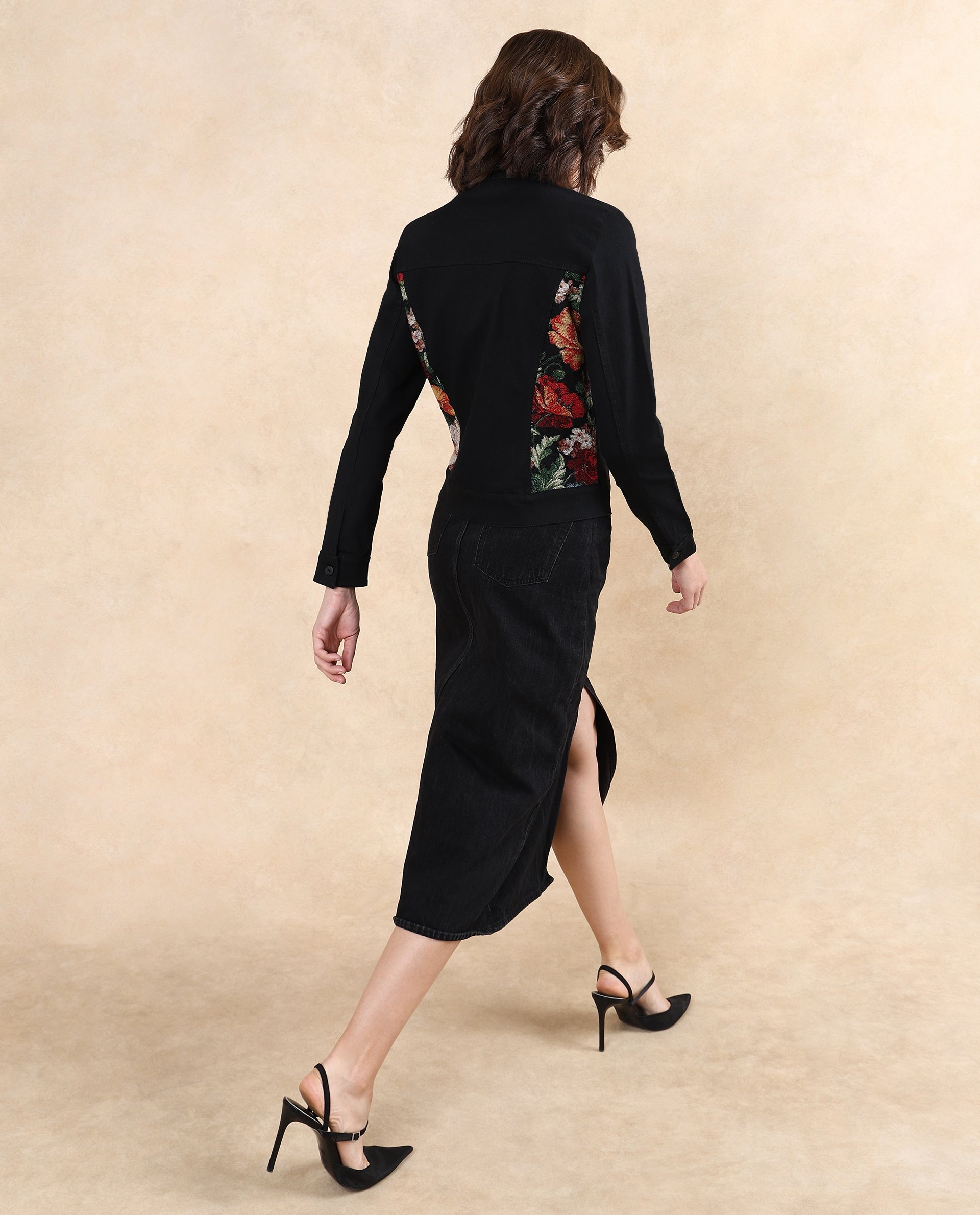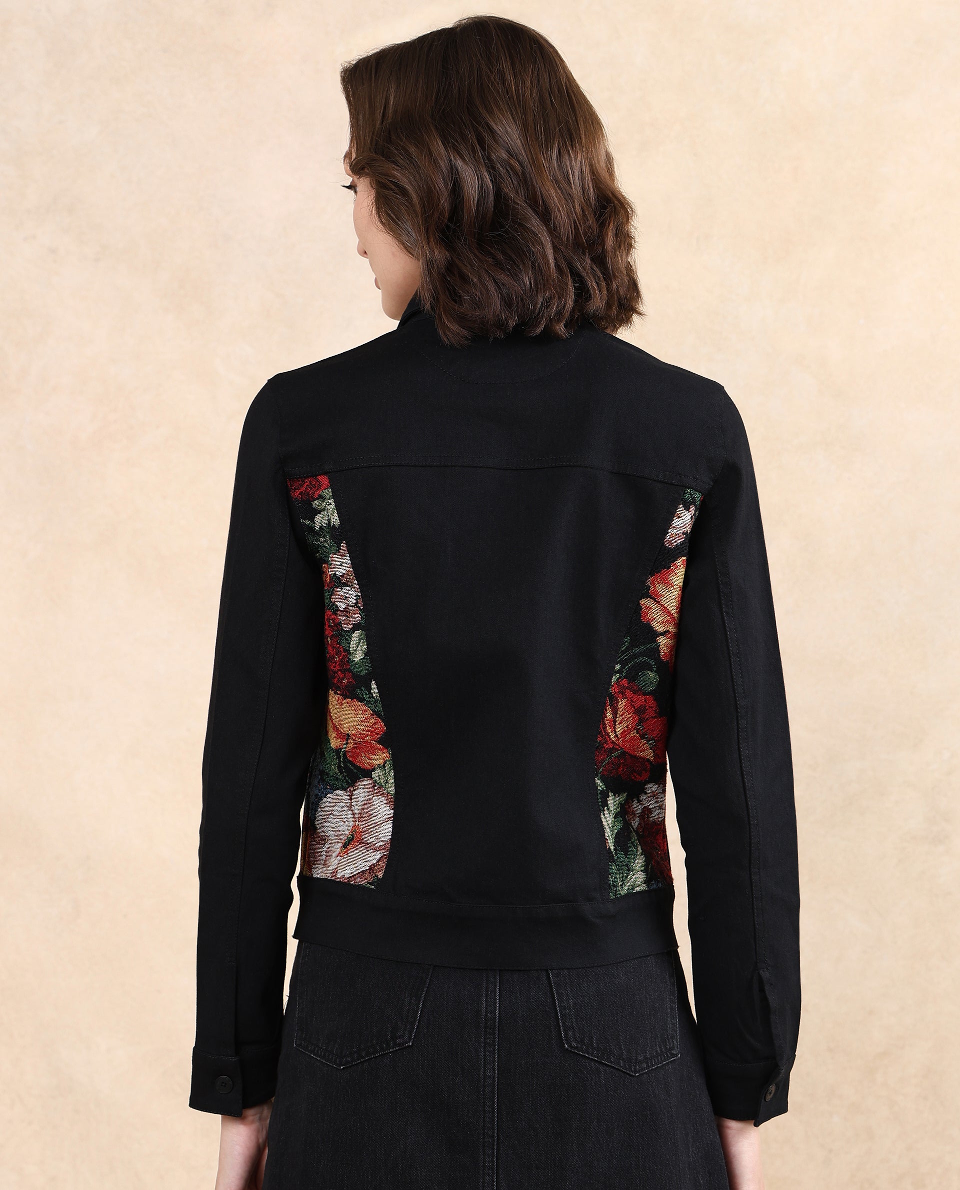 2. Floral jacquard panel at the back adds a unique, feminine touch.