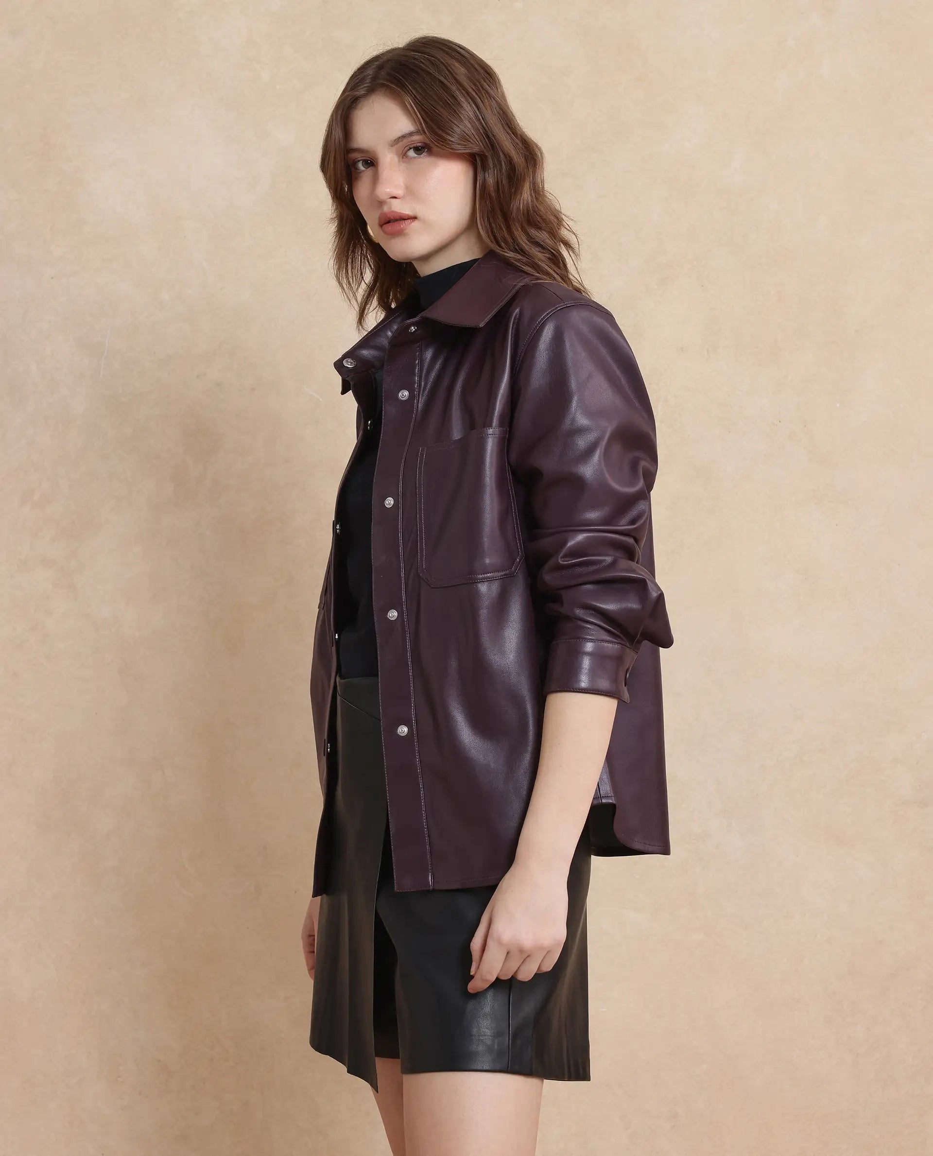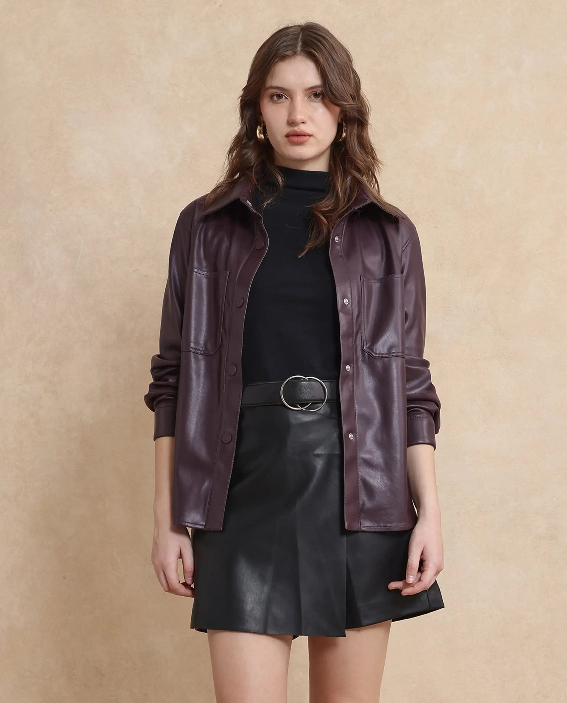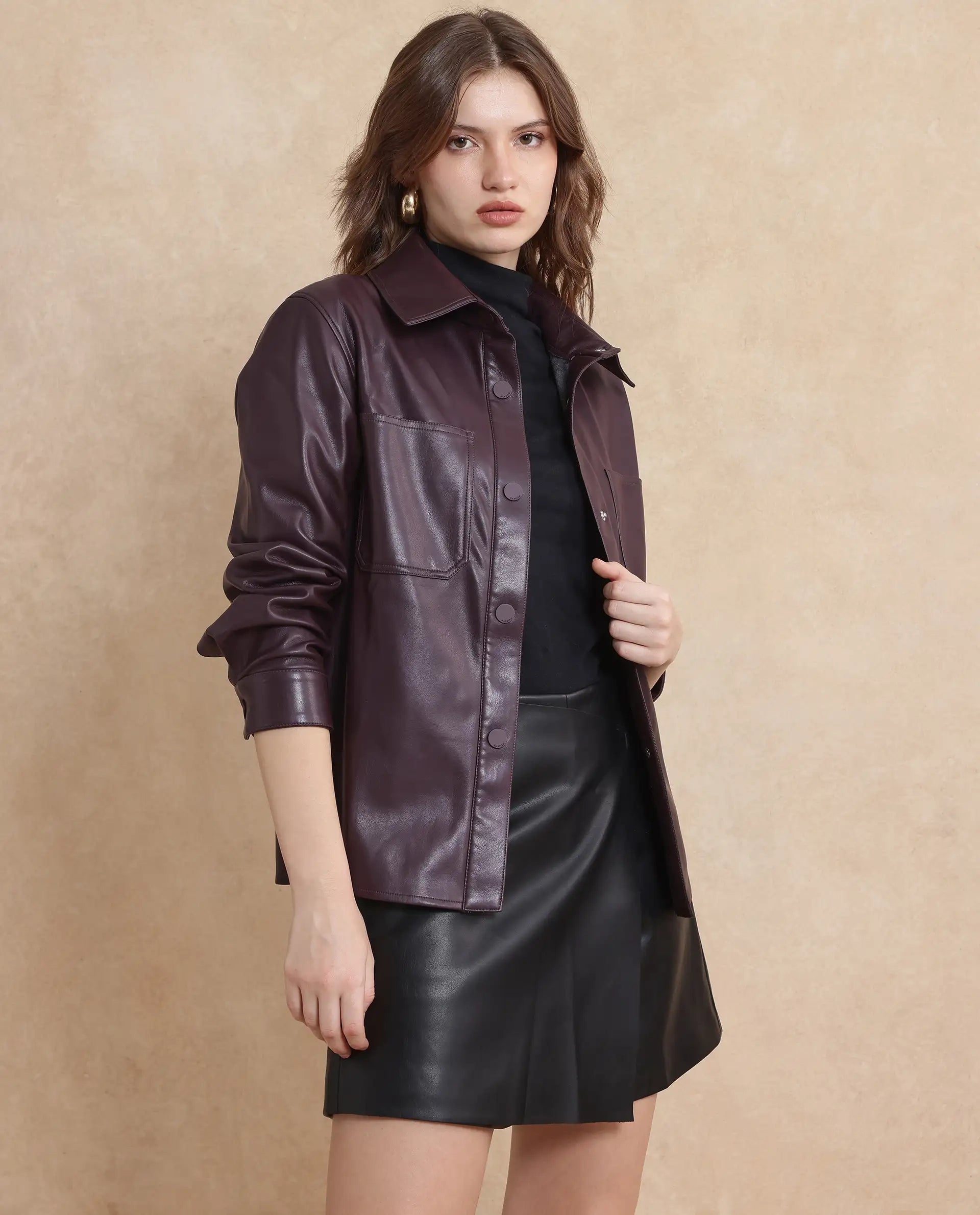 Rareism Women Nemer Maroon Polyester Fabric Short Sleeve Plain Jacket