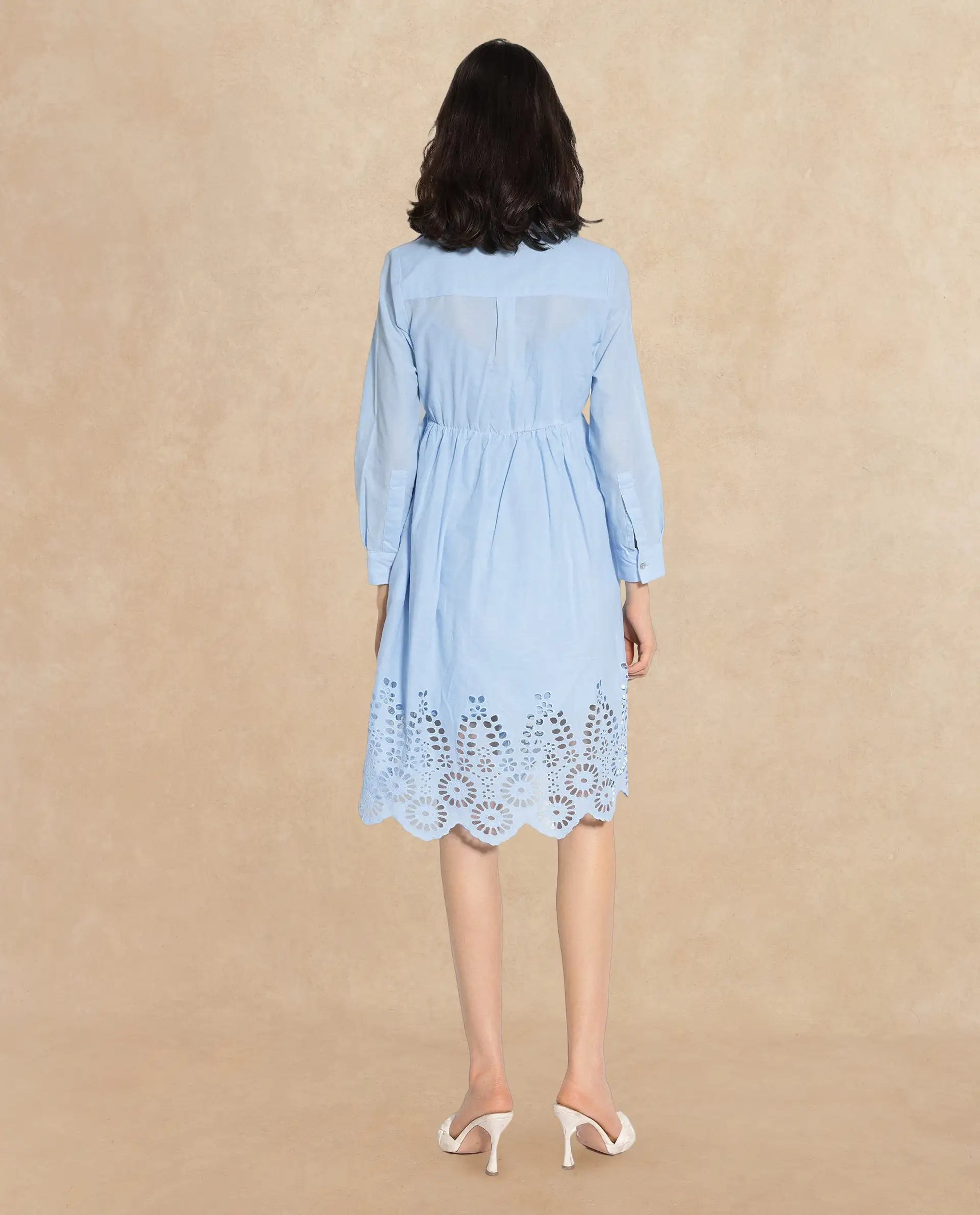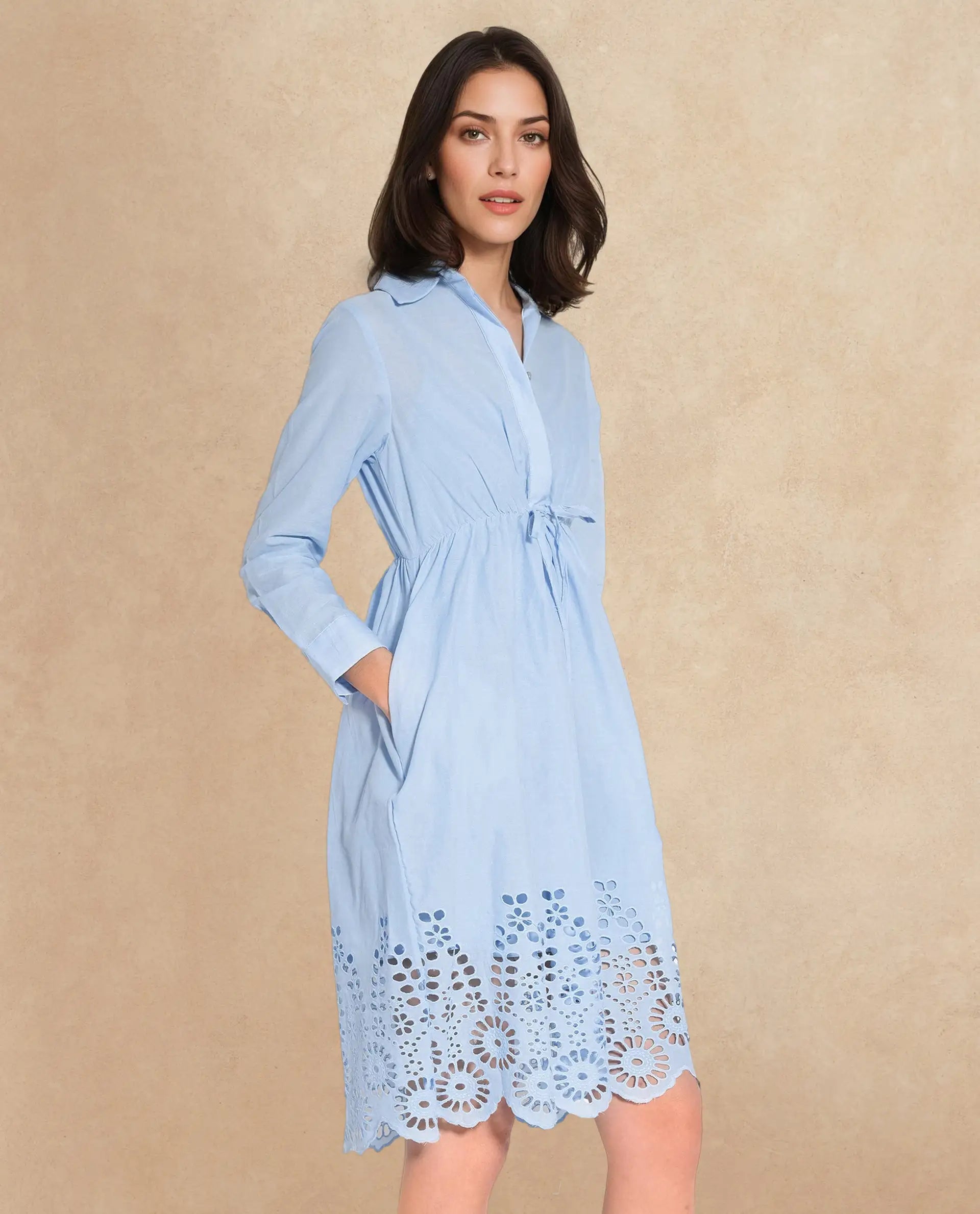 SHORT SHIRT DRESS WITH SCHIFFLI ACCENTS