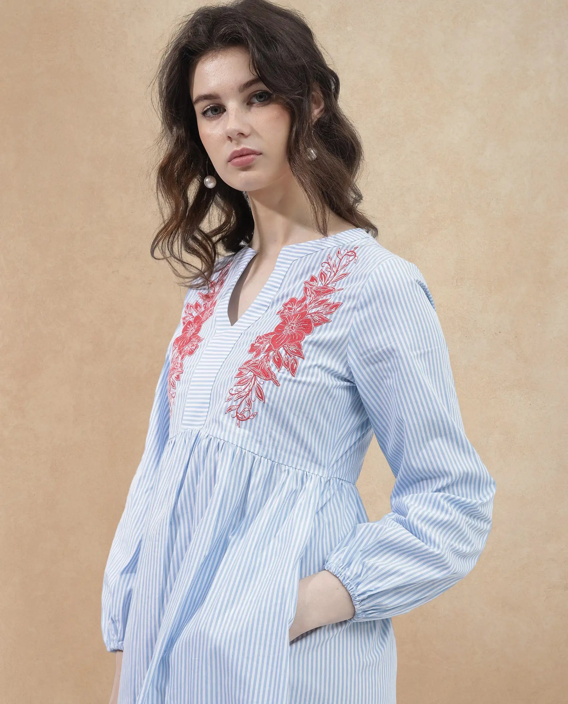 2. Beautiful Embroidered Neckline: Adorned with a beautifully embroidered neckline, adding an elegant touch to the dress.