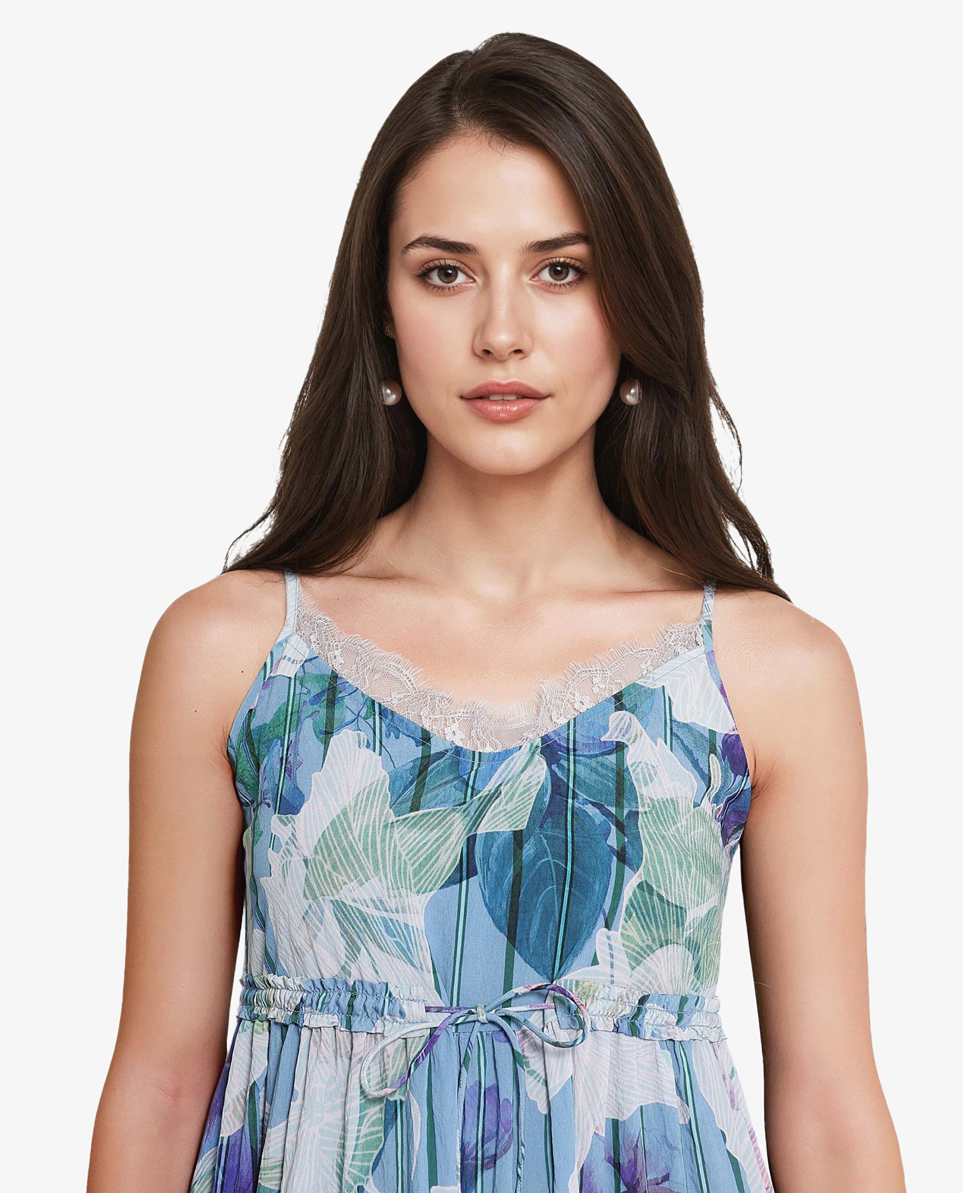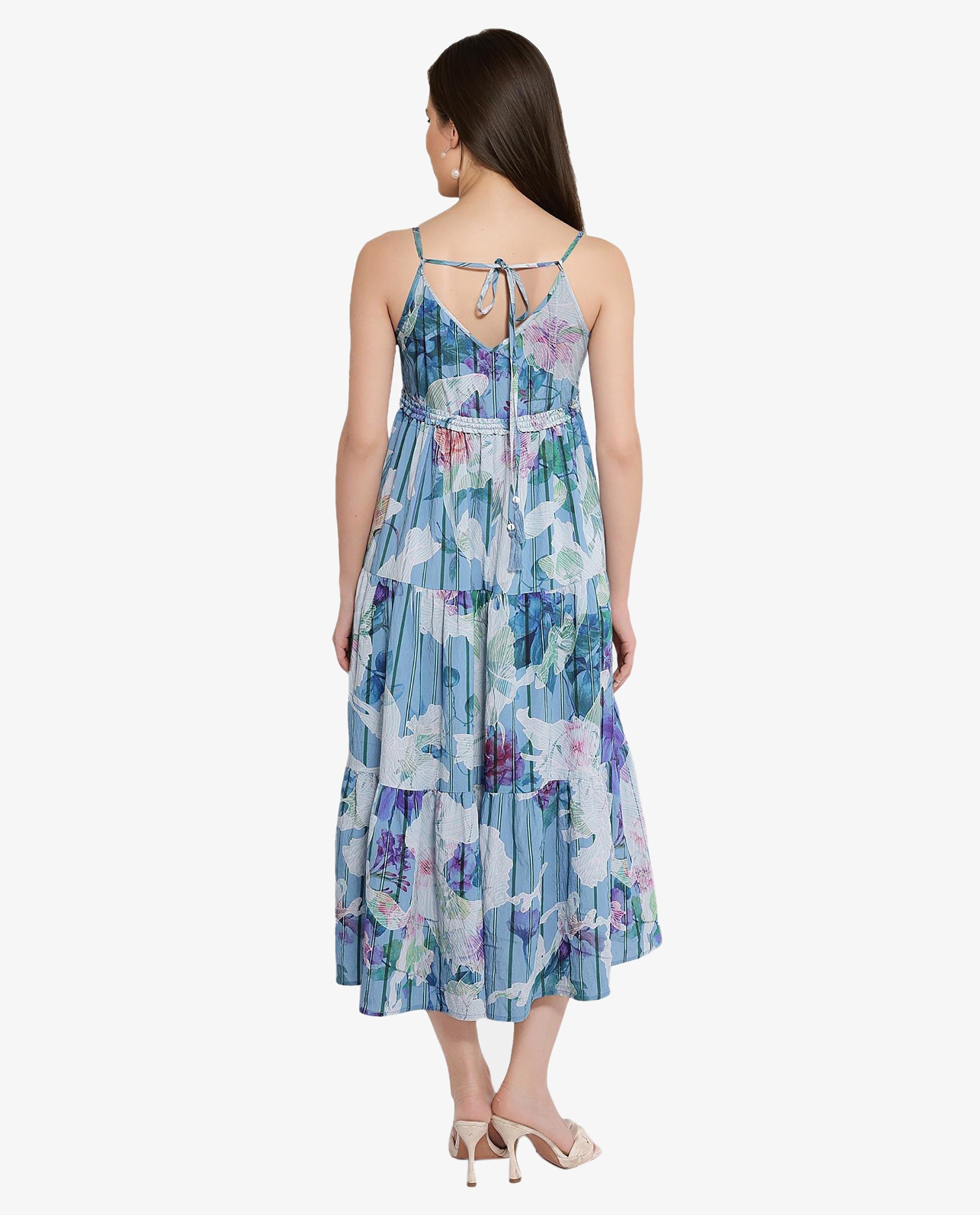 Rareism Women Btewart Blue Shoulder Straps Shoulder Straps Zipper Closure Fit And Flare Floral Print Midi Dress