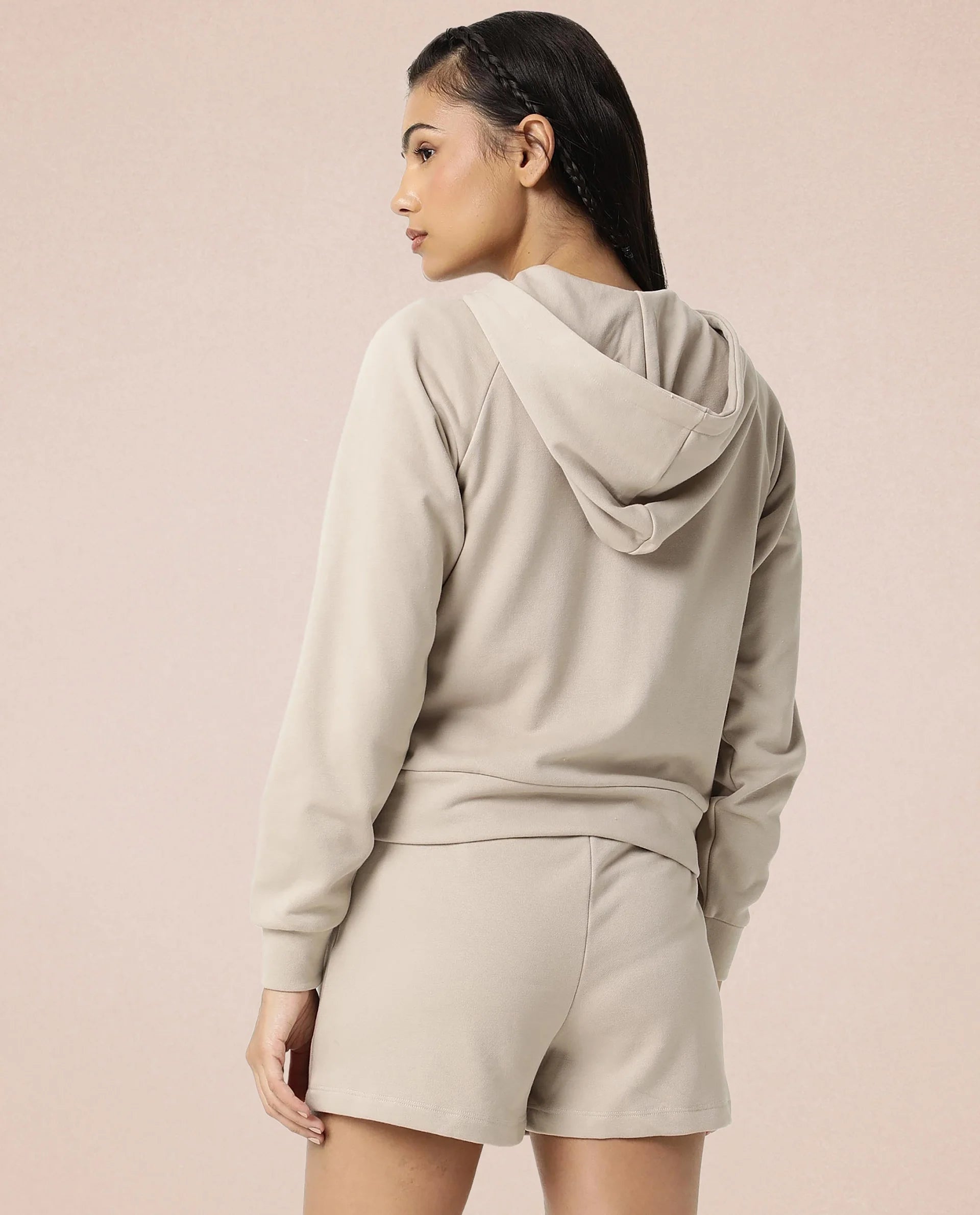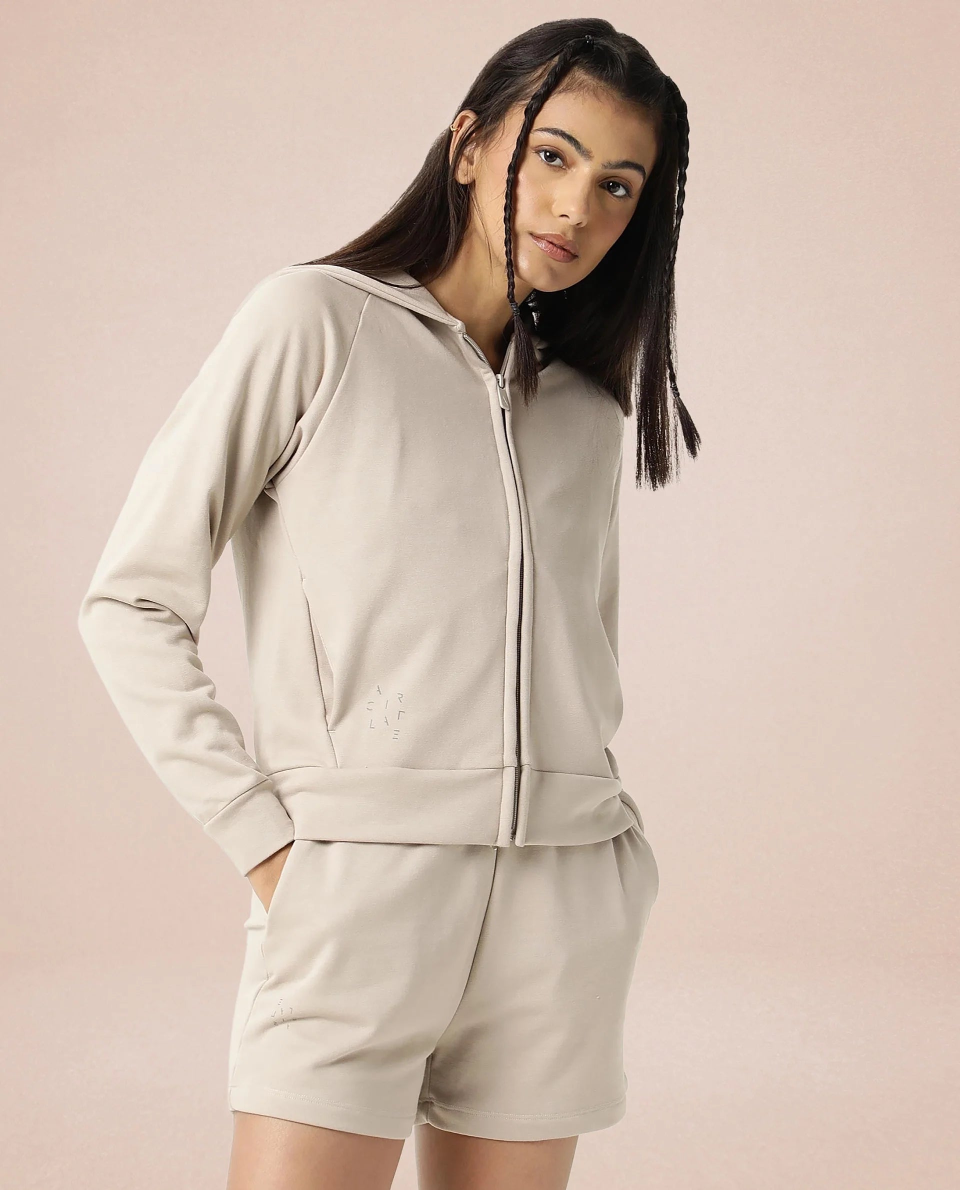 Rareism Women Ciri Beige Cotton Poly Fabric Relaxed Fit Solid Mid Rise Shorts