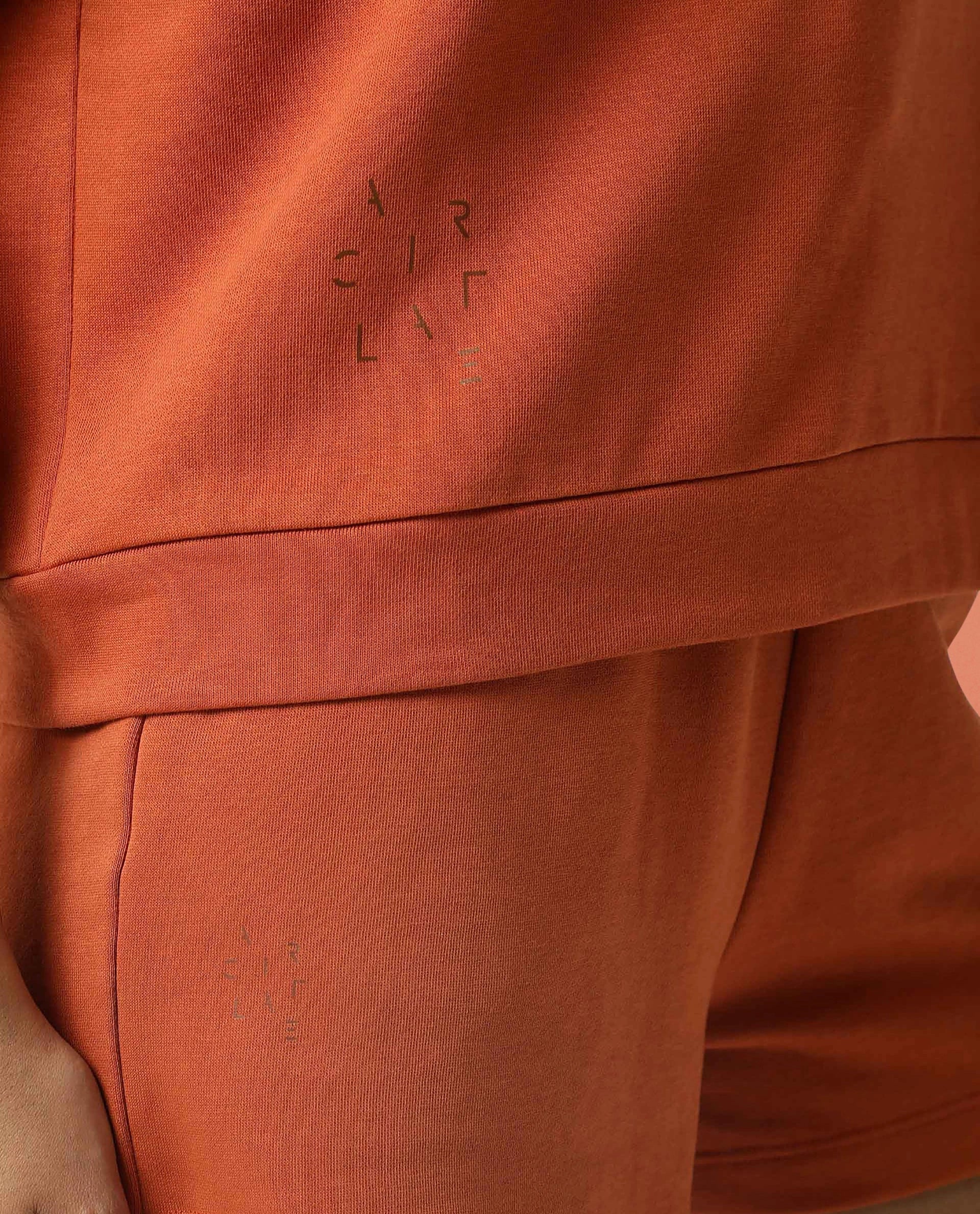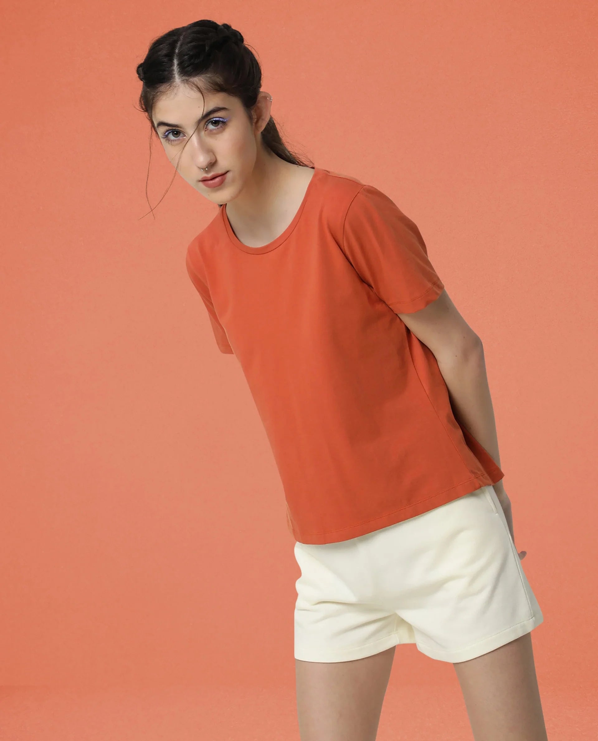 Rareism Women Coco Orange Cotton Fabric Half Sleeves Relaxed Fit Solid Round Neck Sweat Tee