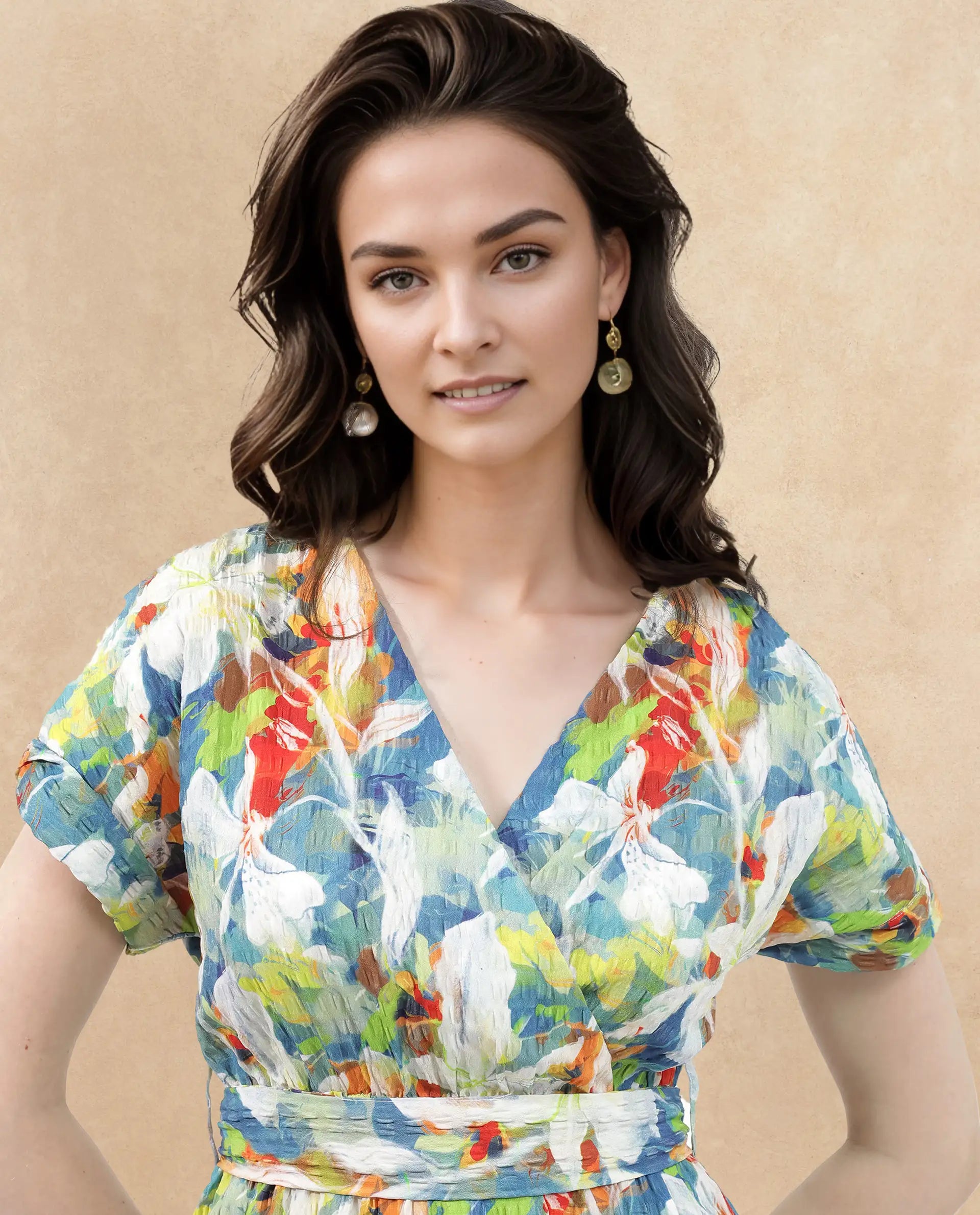 FLORAL WRAP DRESS IN POLY LYCRA FABRIC