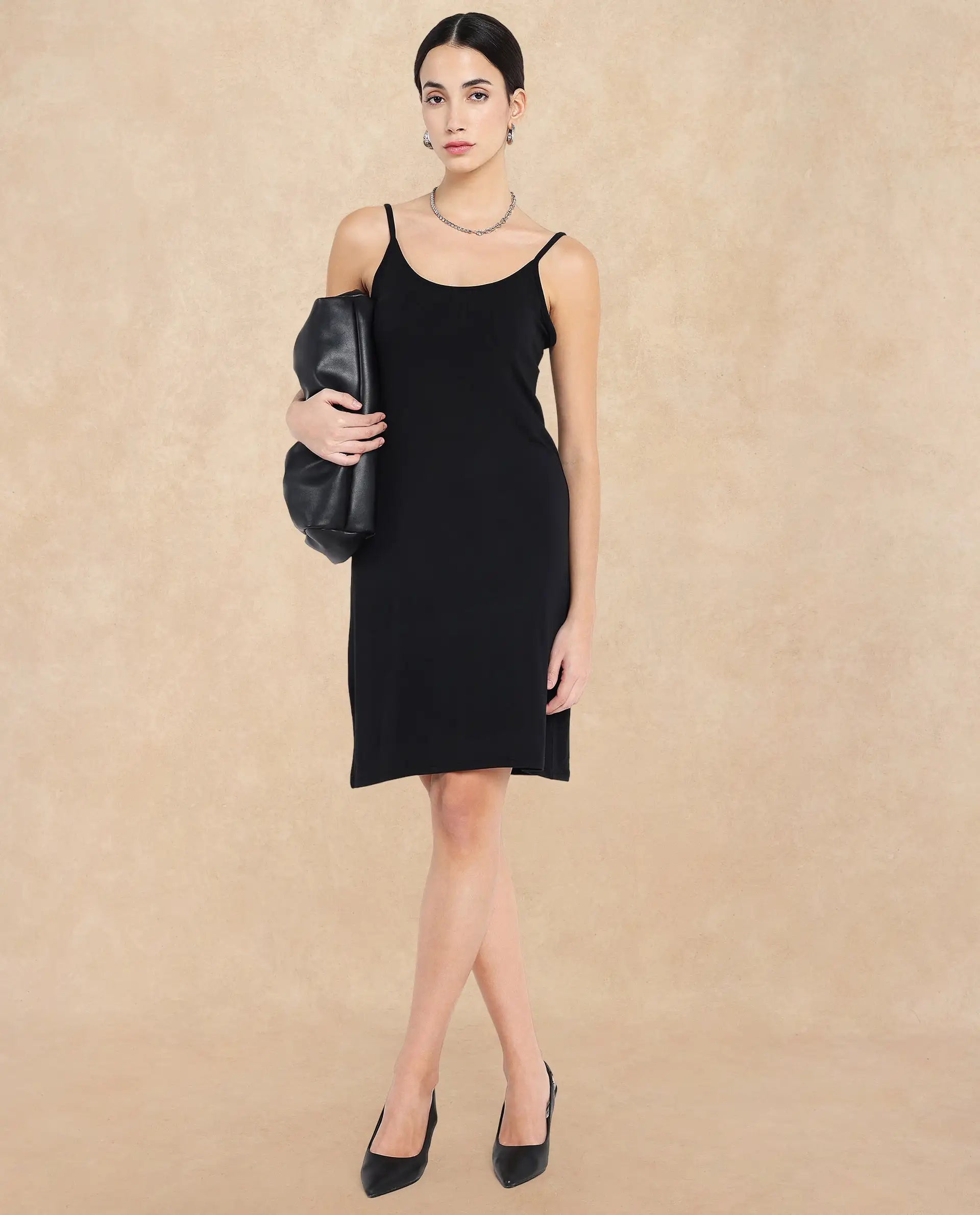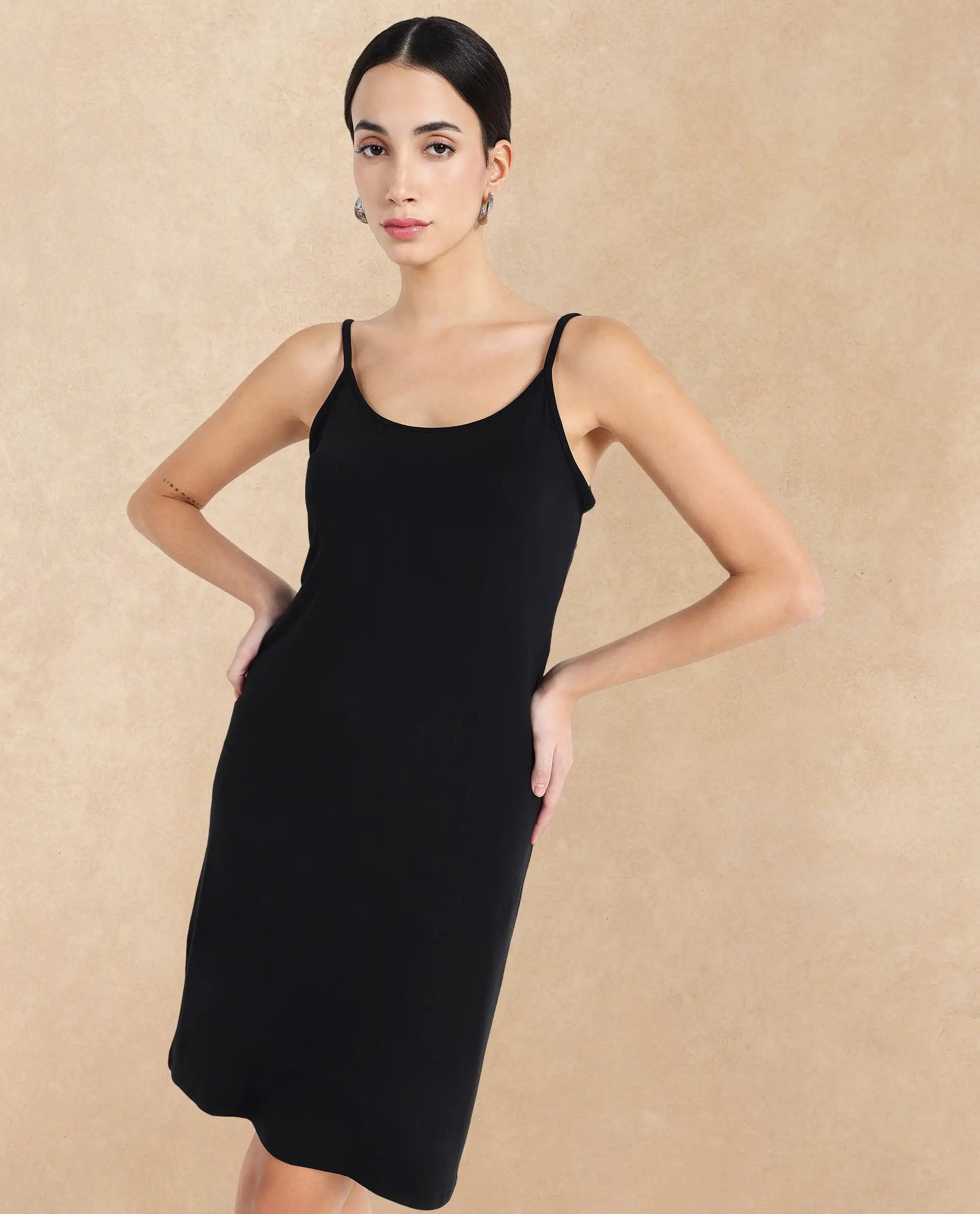 Rareism Women Slippy Black Modal Fabric Solid Inner Wear