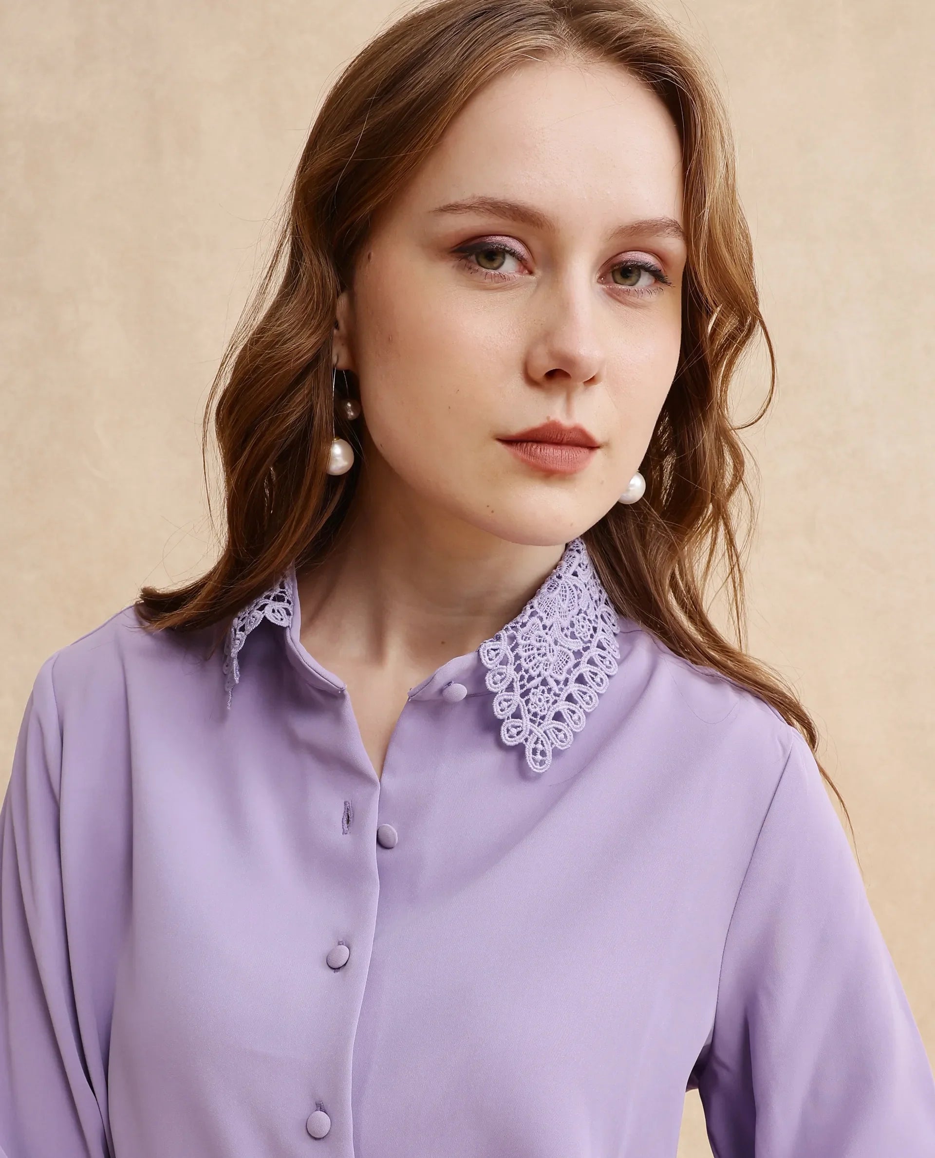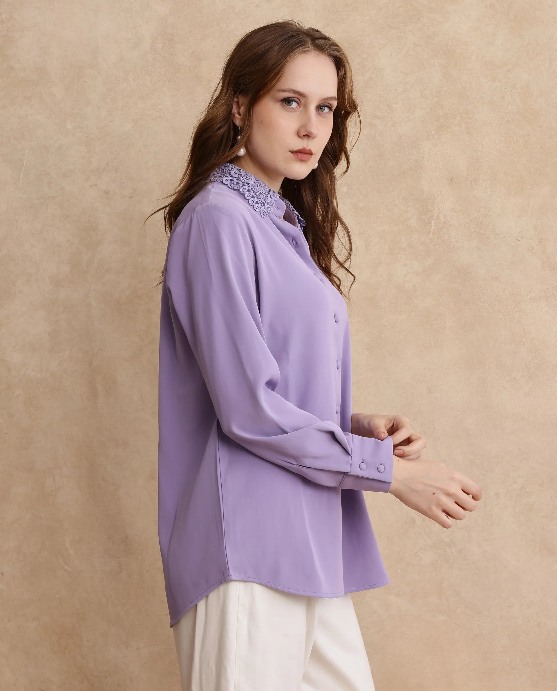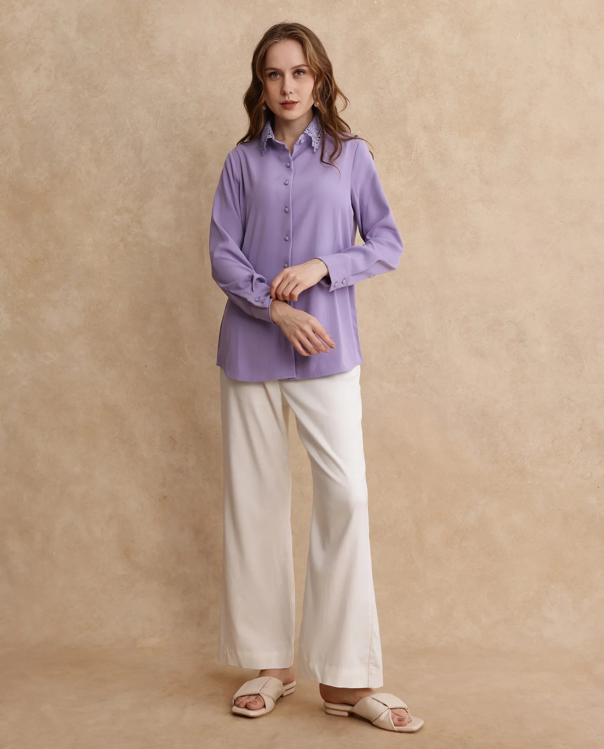 Rareism Women Dejon Dusky Lavender Cuffed Sleeve Collared Neck Regular Fit Plain Shirt