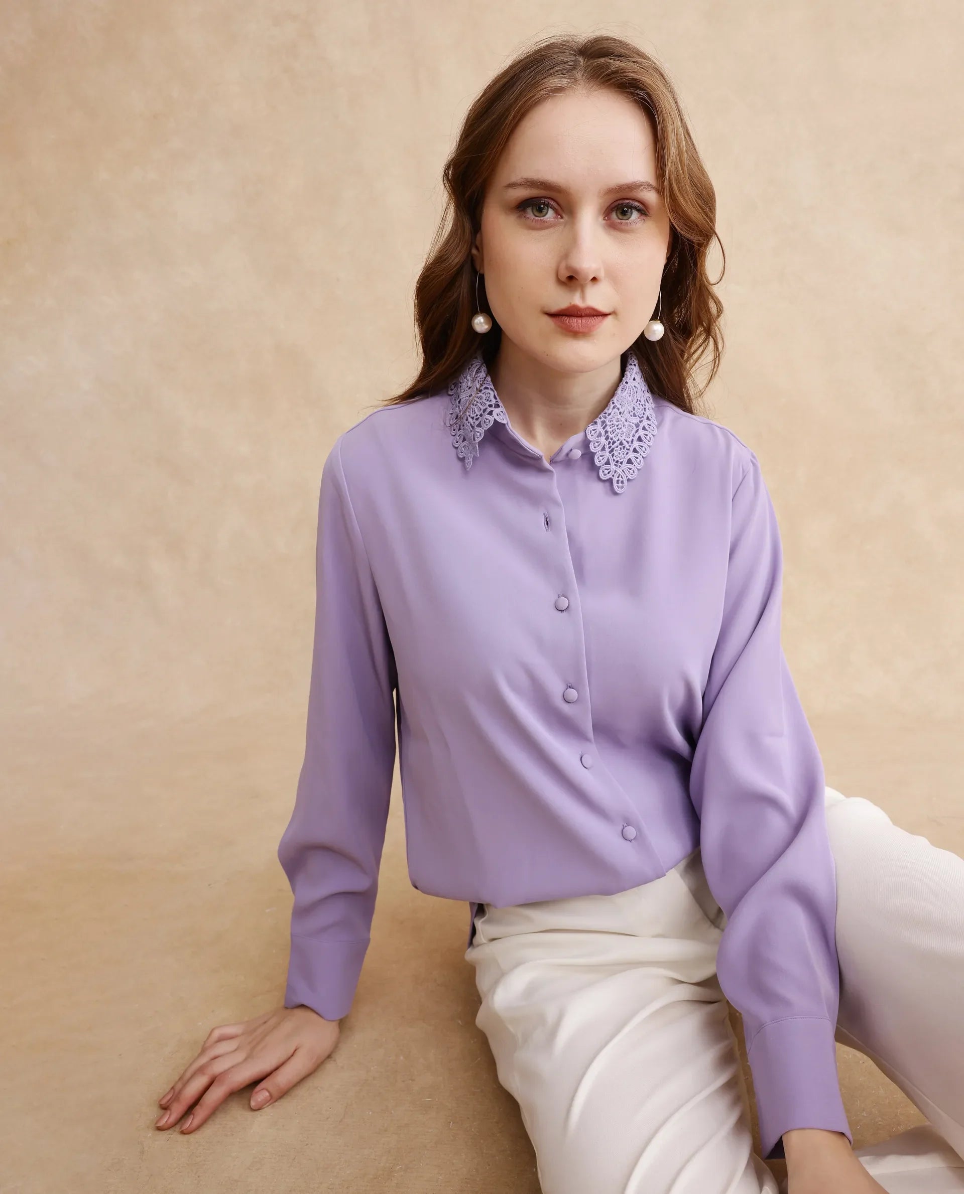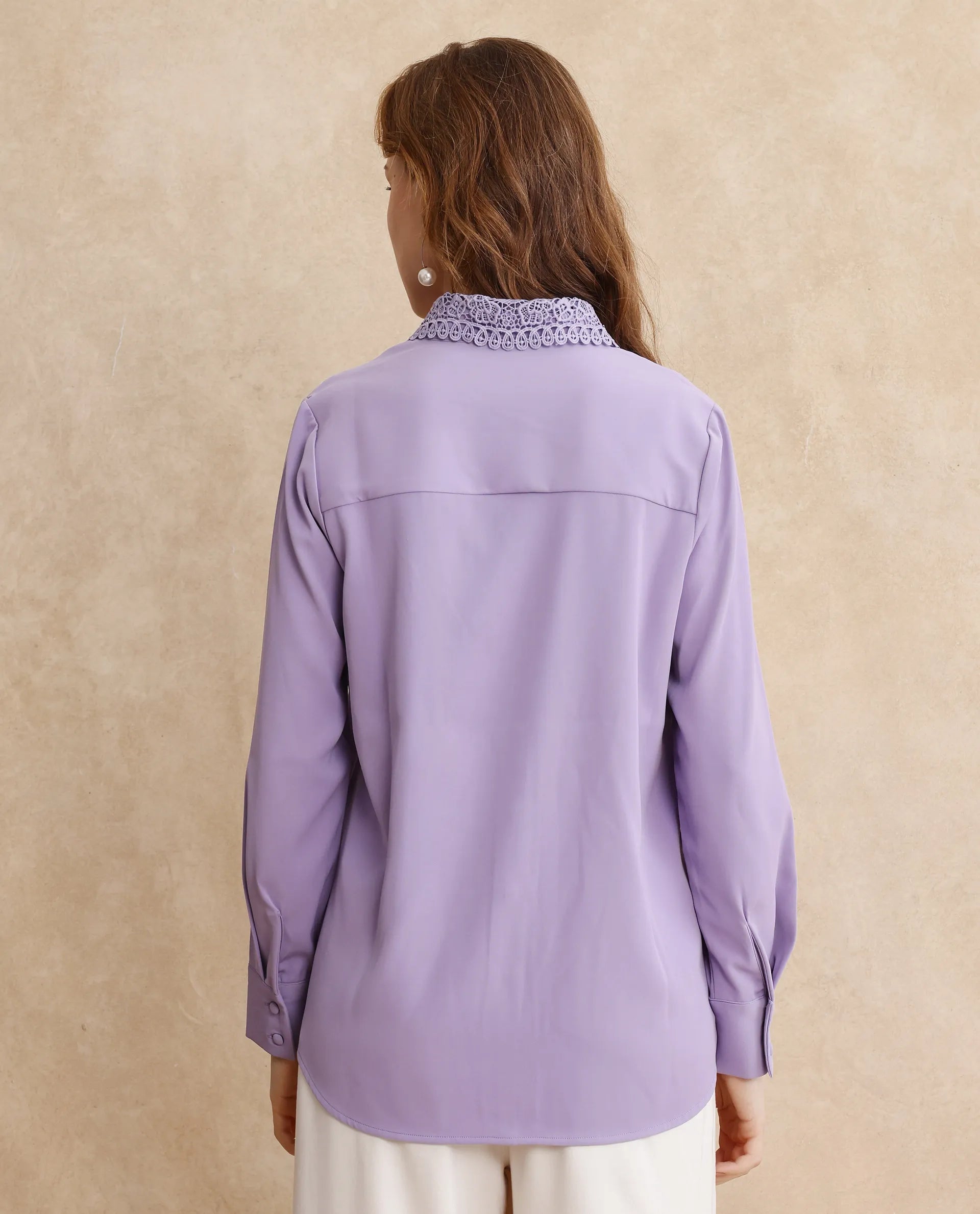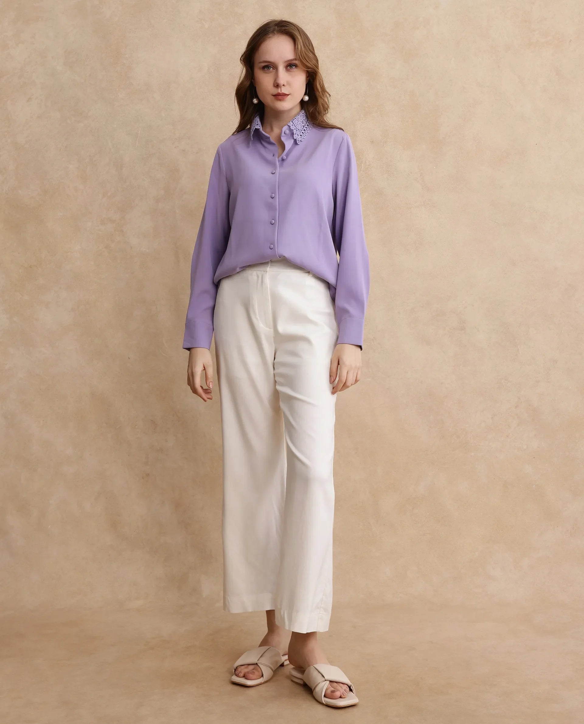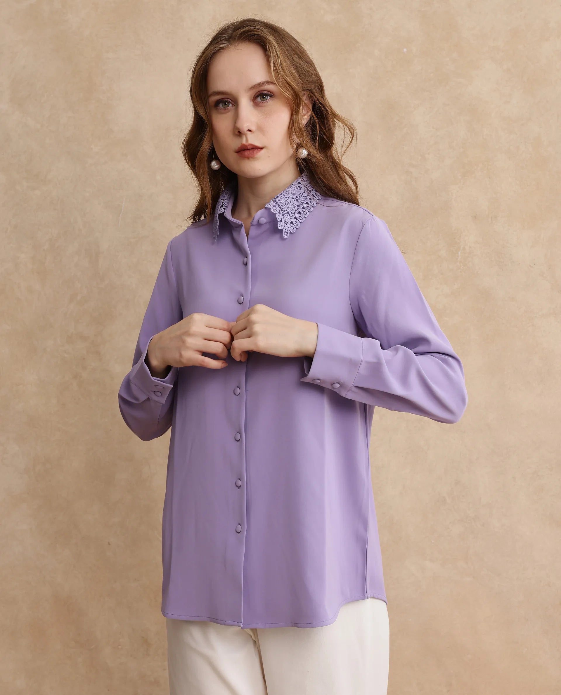 Rareism Women Dejon Dusky Lavender Cuffed Sleeve Collared Neck Regular Fit Plain Shirt