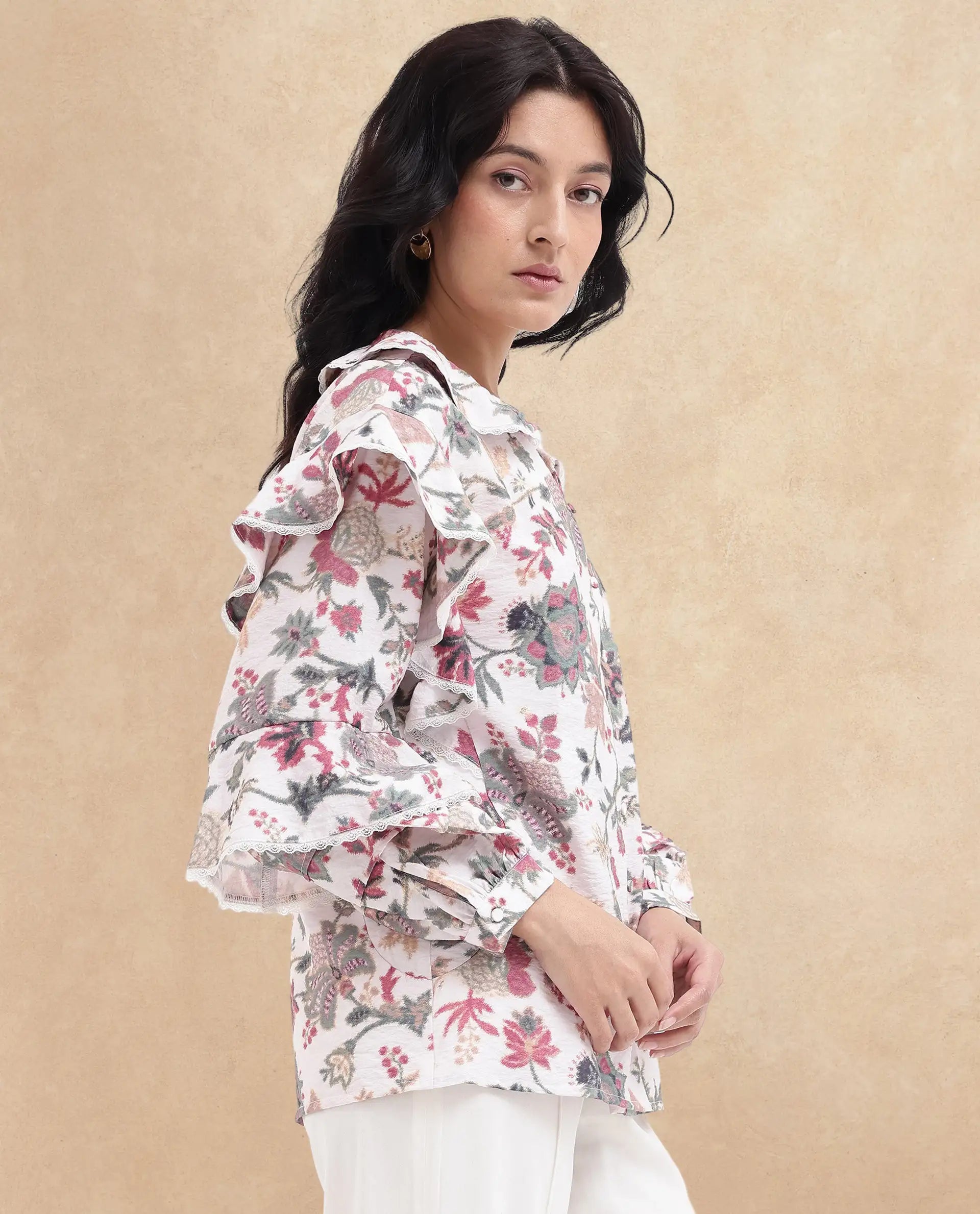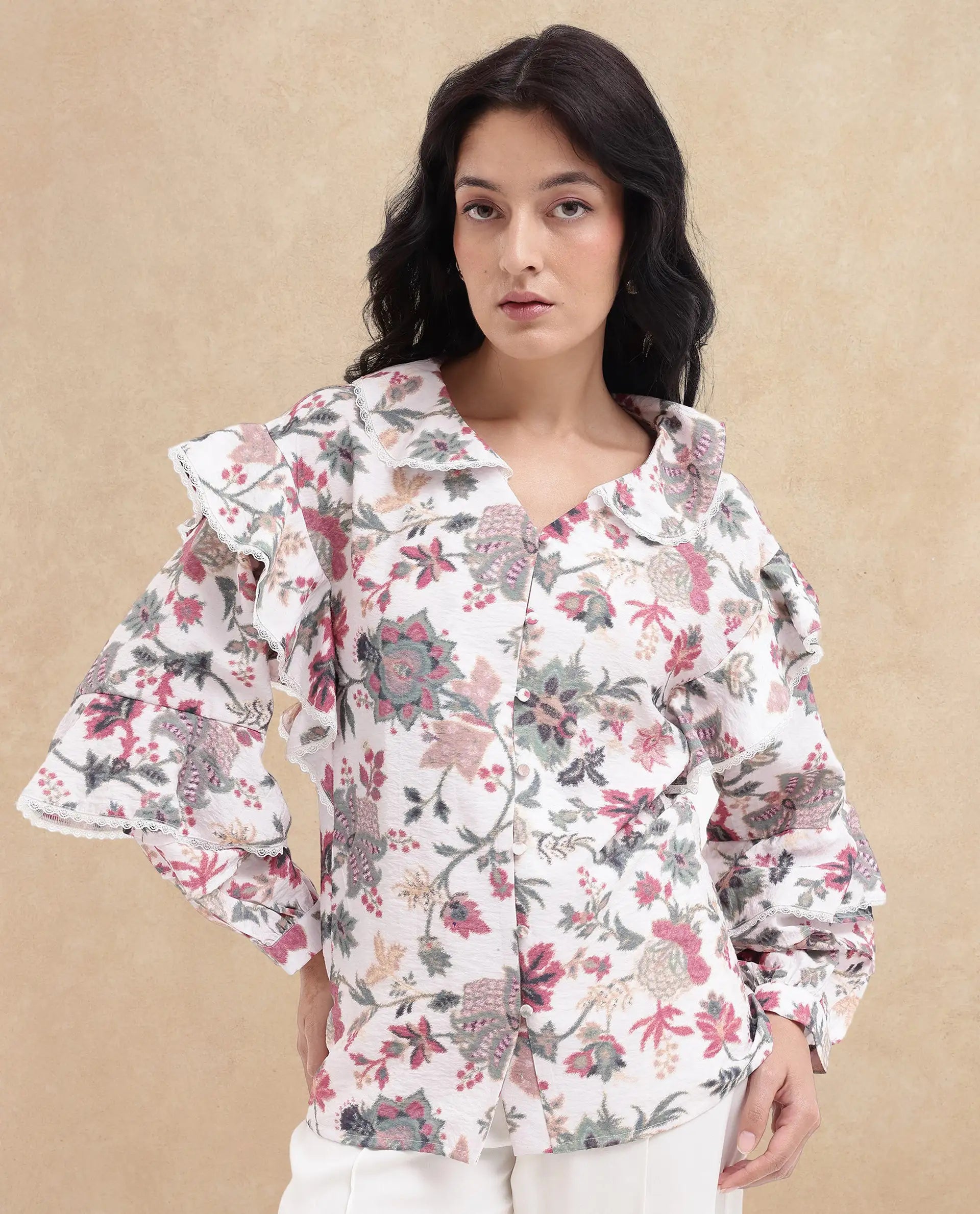 Rareism Women Mei-T Multi Poly Viscose Bishop Sleeve Peter Pan Neck Floral Print Shirt