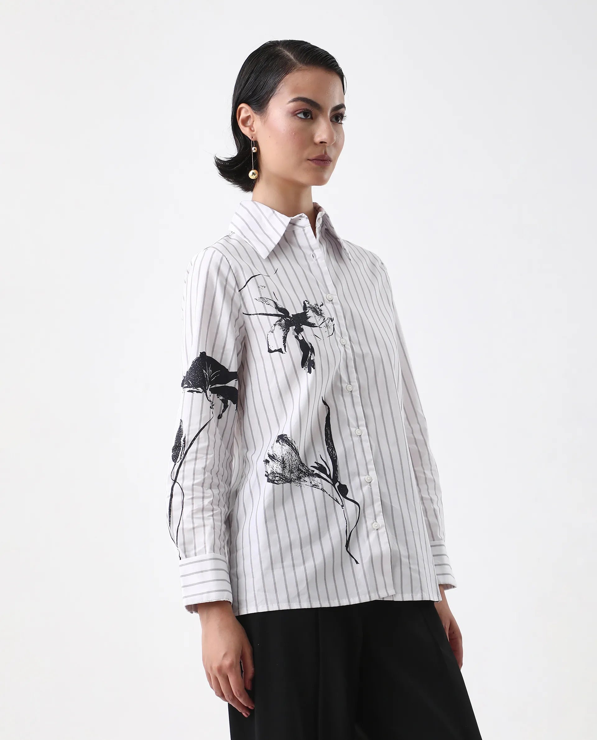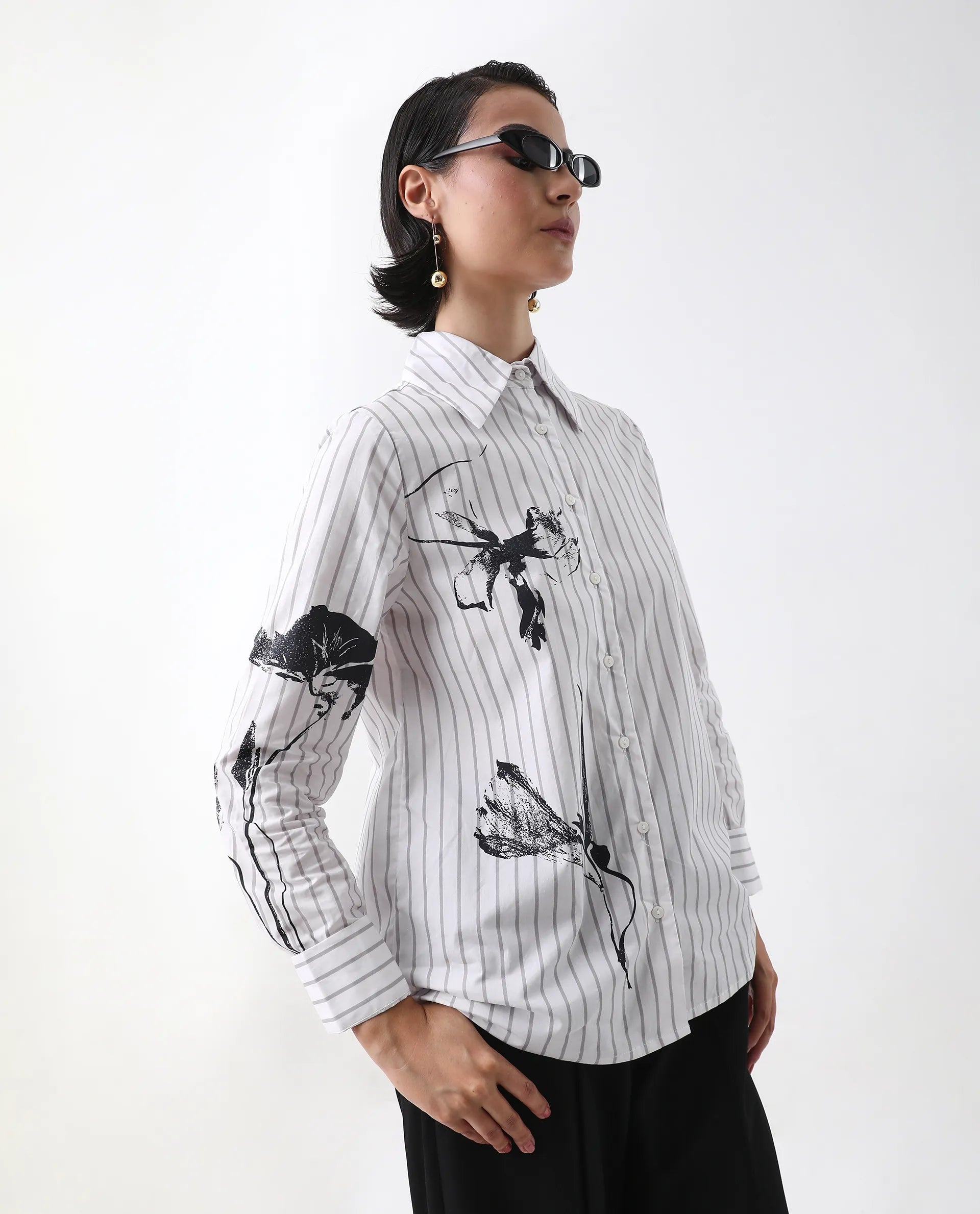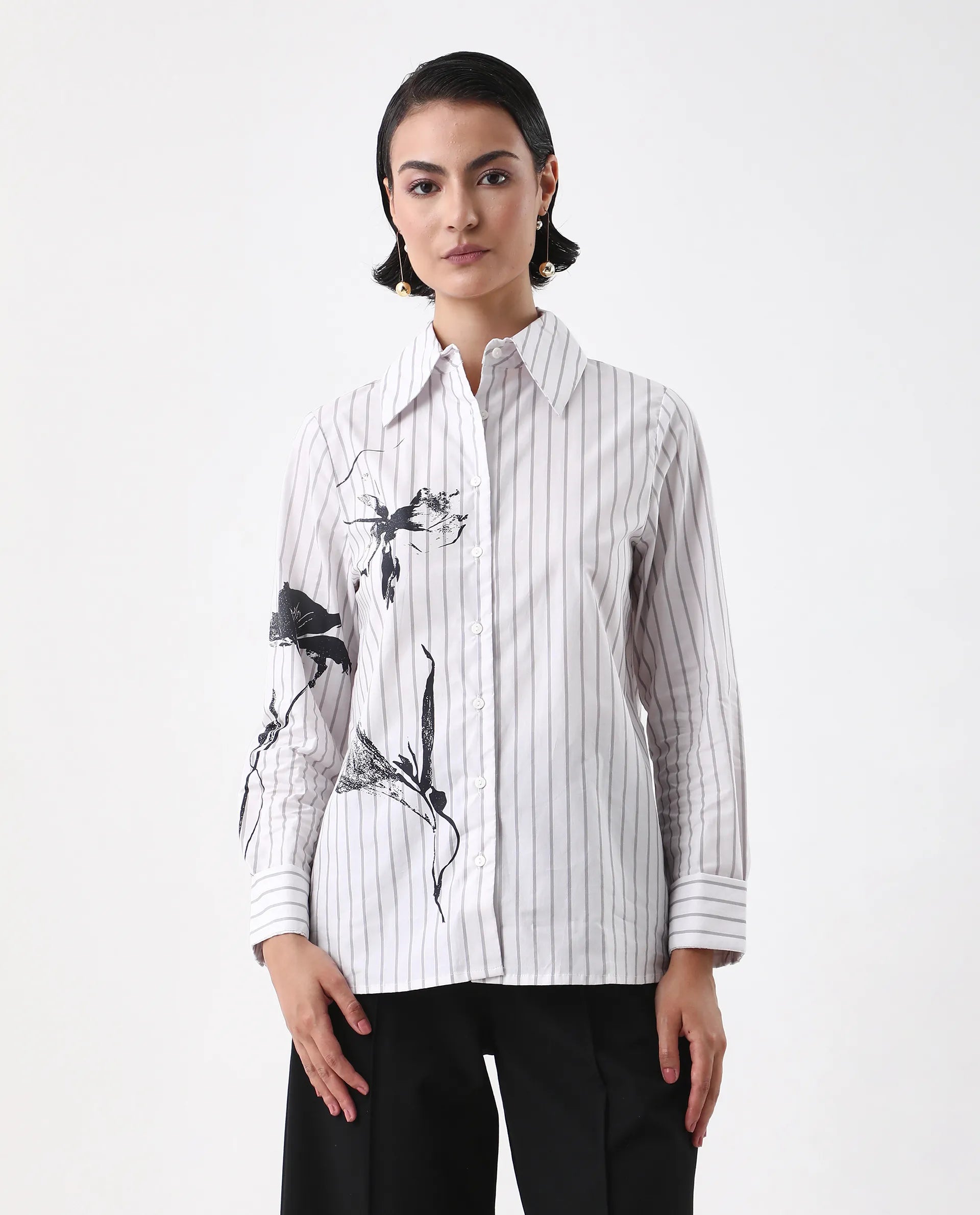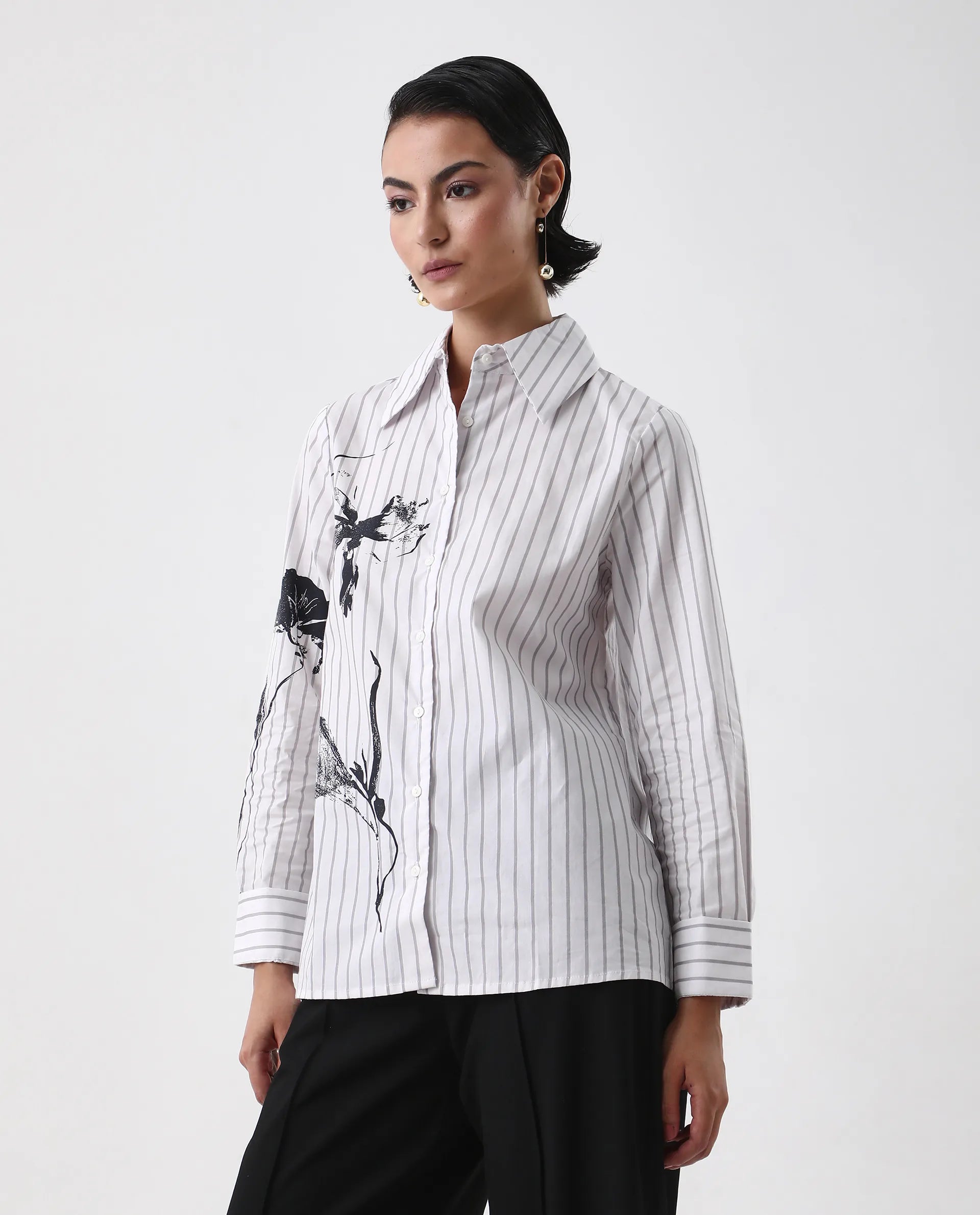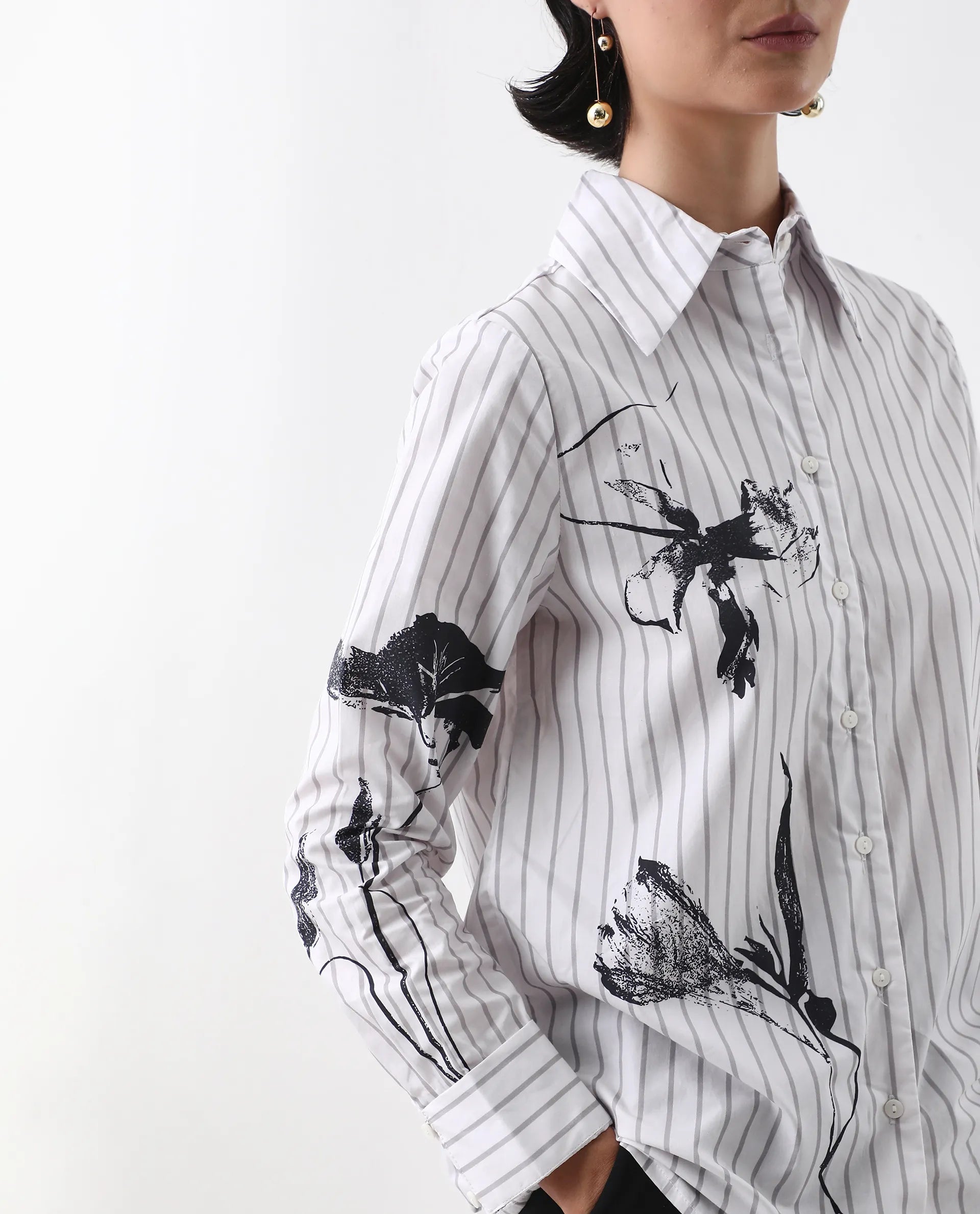 FLORAL PLACEMENT PRINT SHIRT WITH STRIPES
