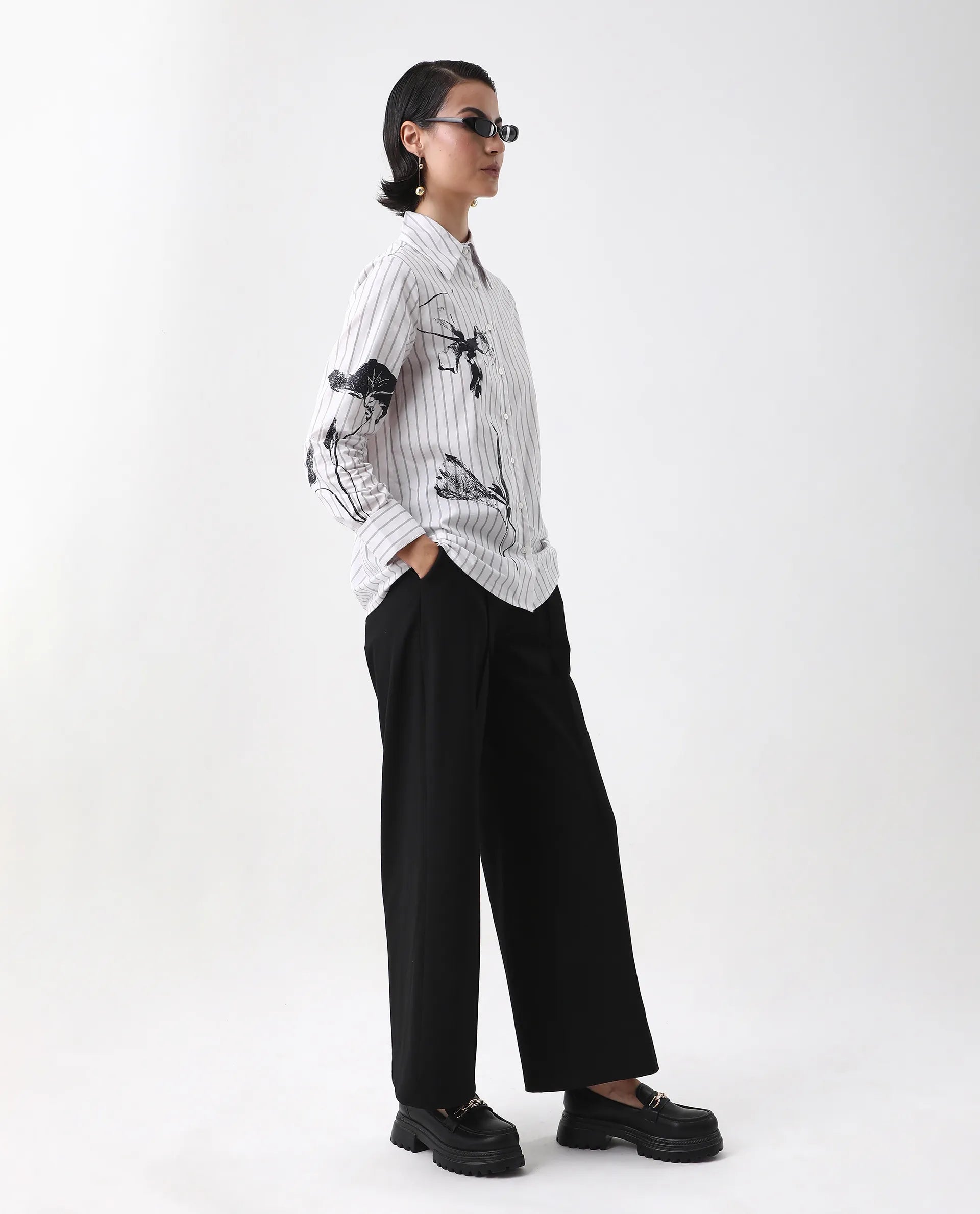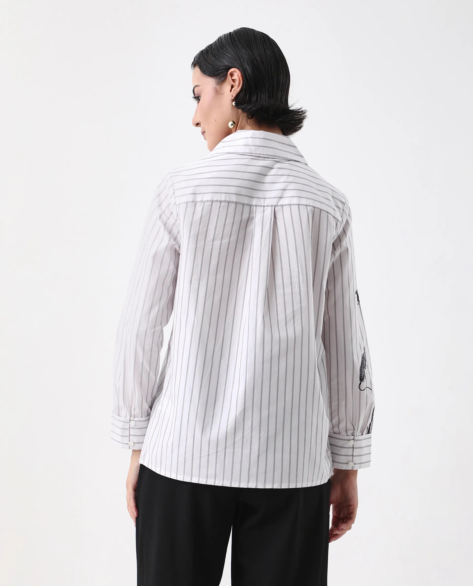 Rareism Women Nzingat White Cuffed Sleeve Collared Neck Regular Fit Floral Print Shirt