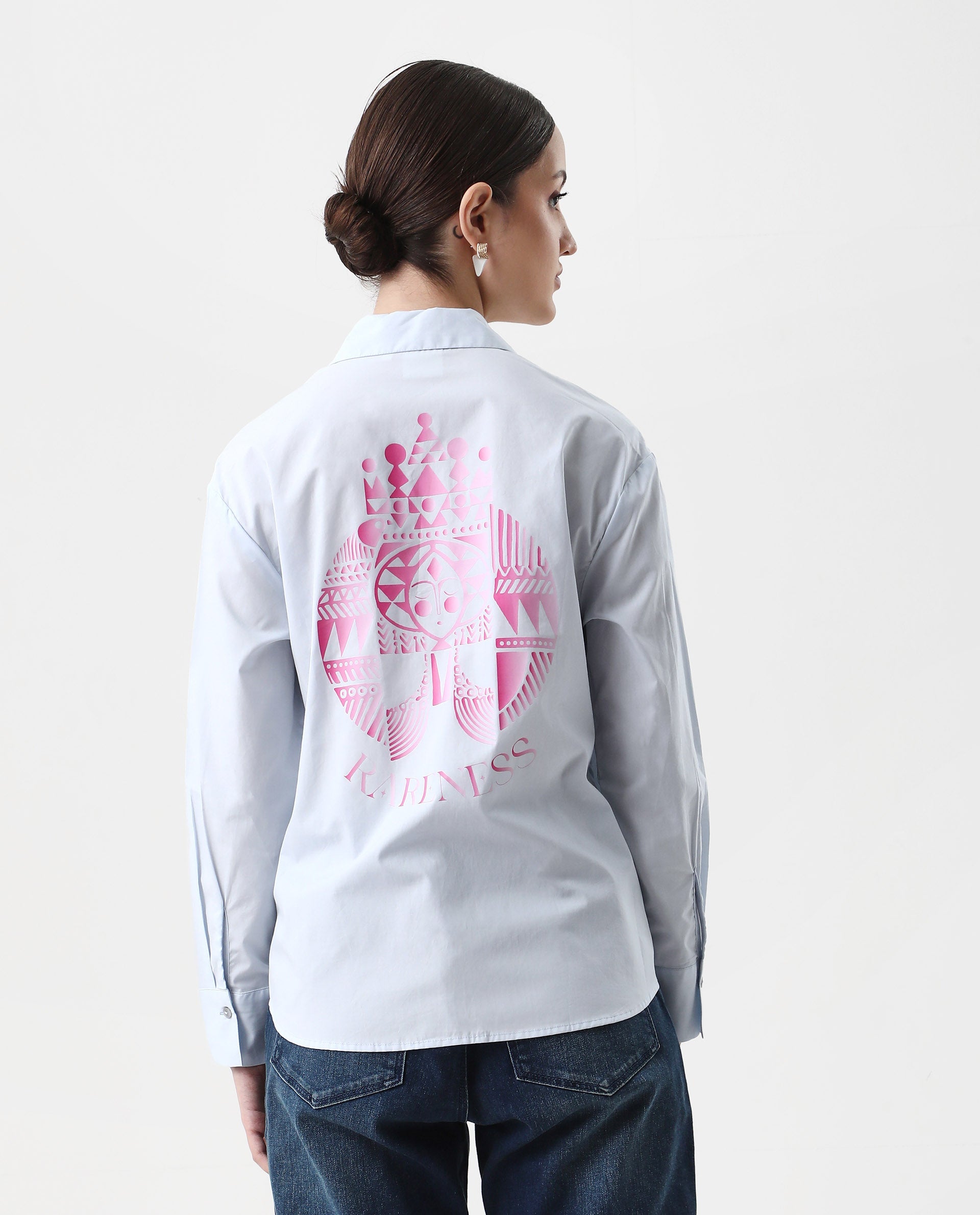 Rareism Women Zquib Grey Cuffed Sleeve Collared Neck Regular Fit Graphic Print Shirt