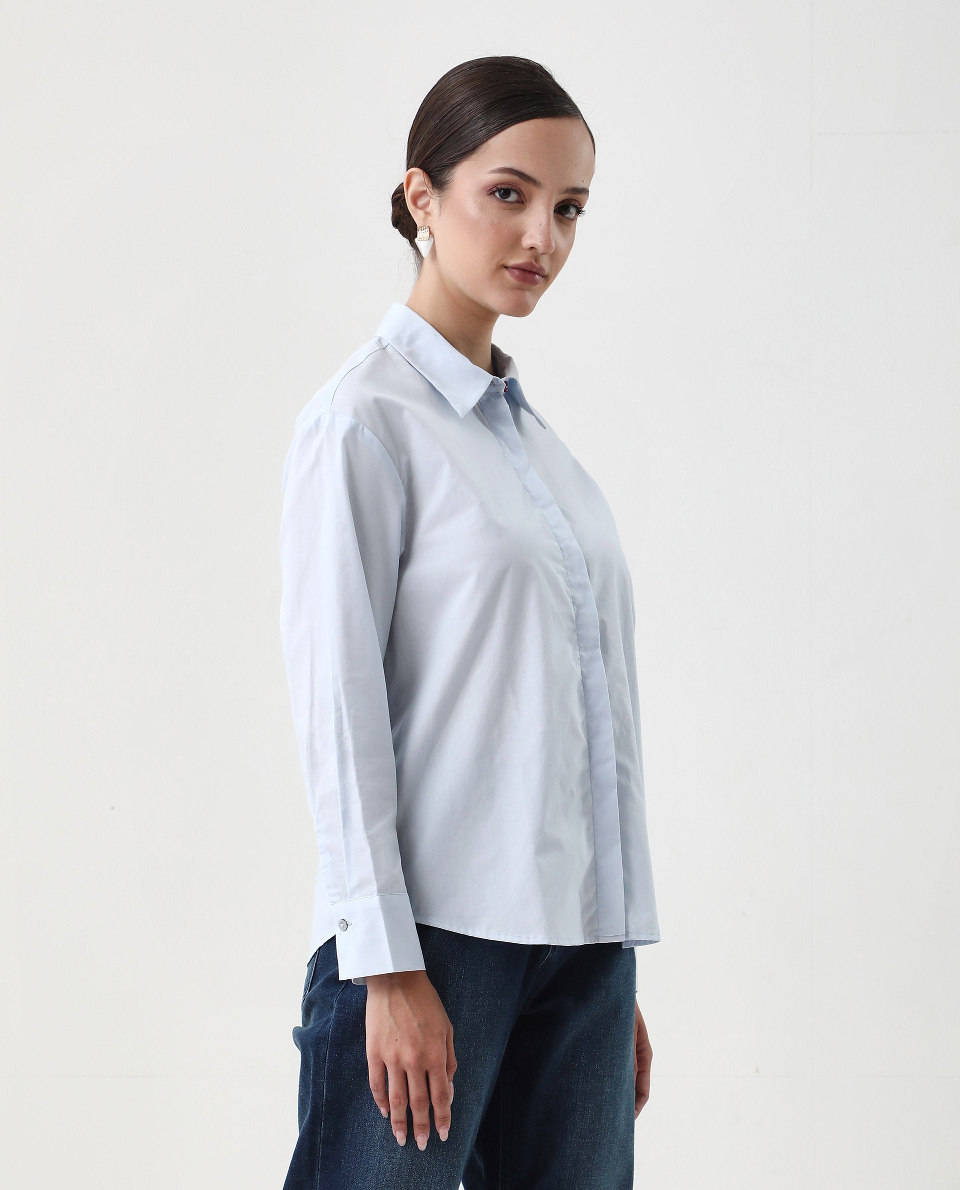 2. Cuffed sleeves enhance the shirt's tailored and structured look.