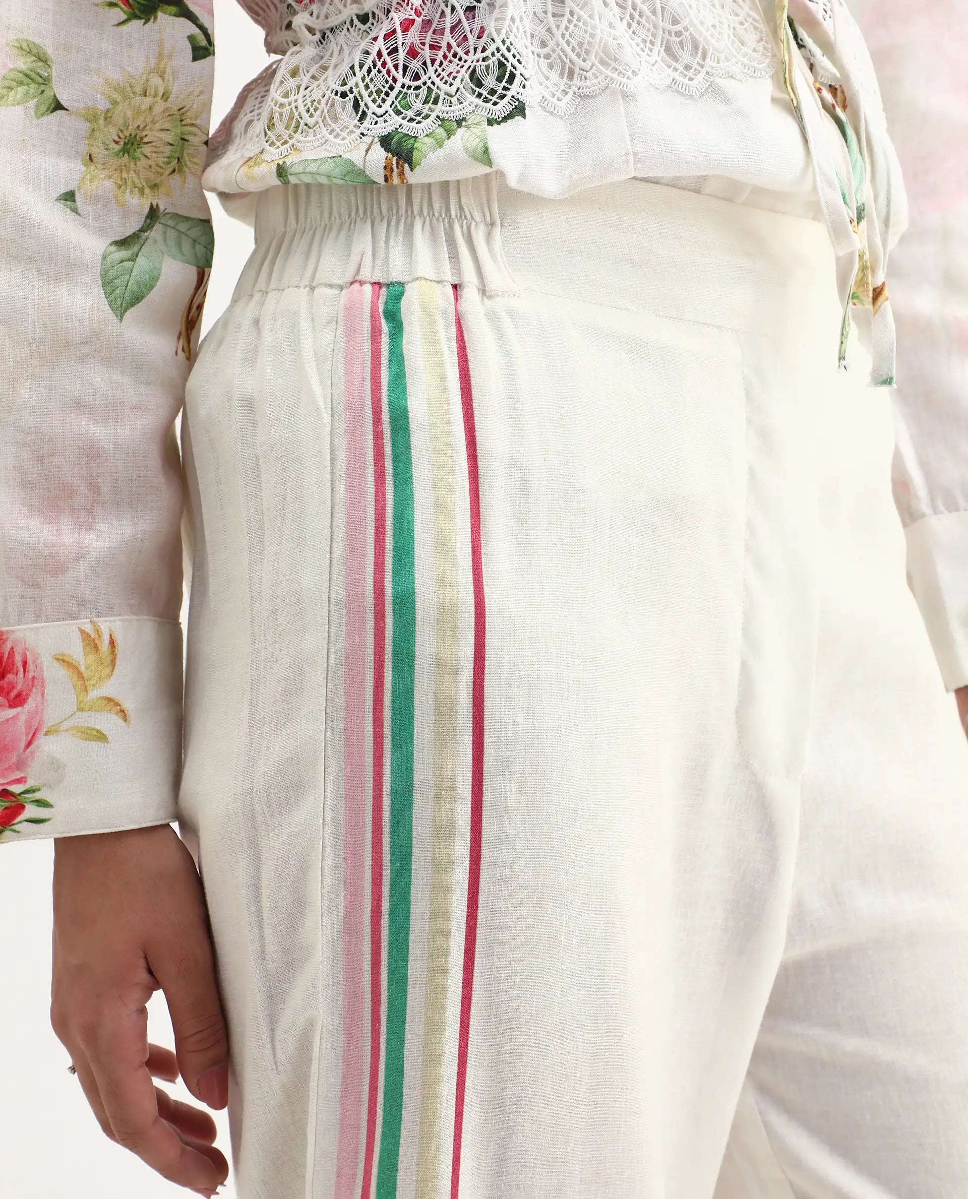 Rareism Women Banche-B Off White Cotton Linen Fabric Regular Length Trouser