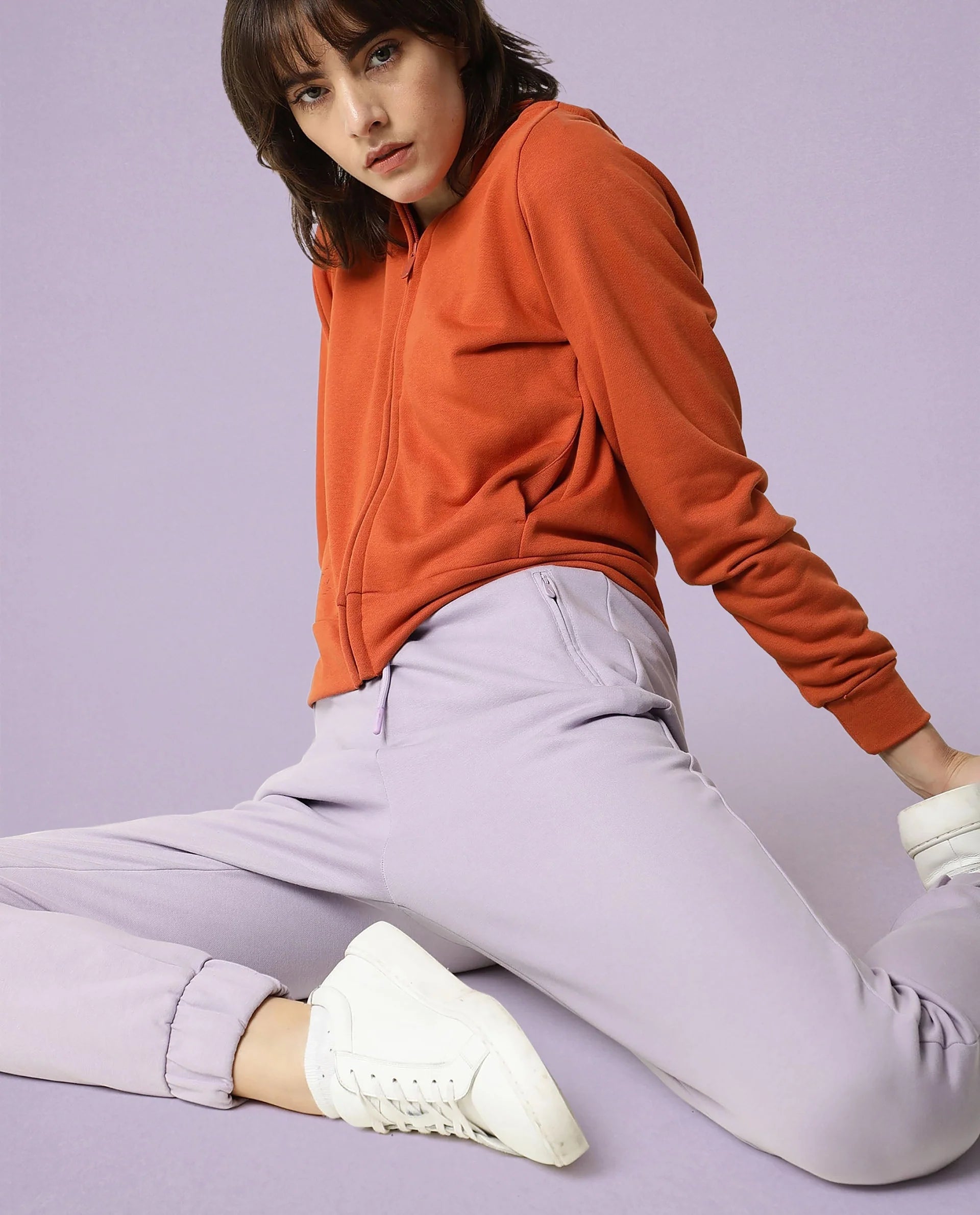 Rareism Women Creta Light Pink Cotton Blend Fabric Relaxed Fit Solid Mid Rise Ankle Length Track Pant
