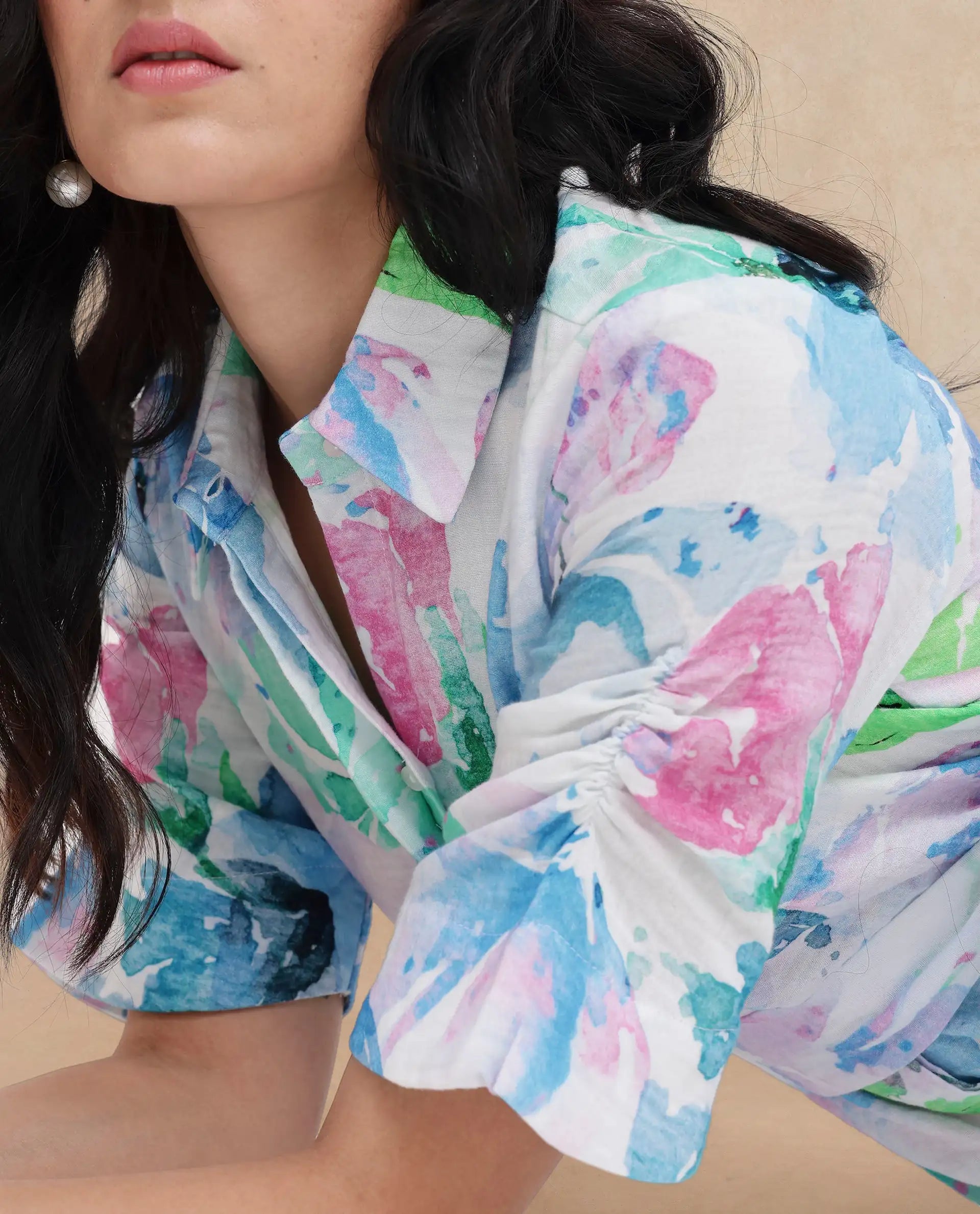 FLORAL PRINT LONGLINE COLLARED DRESS