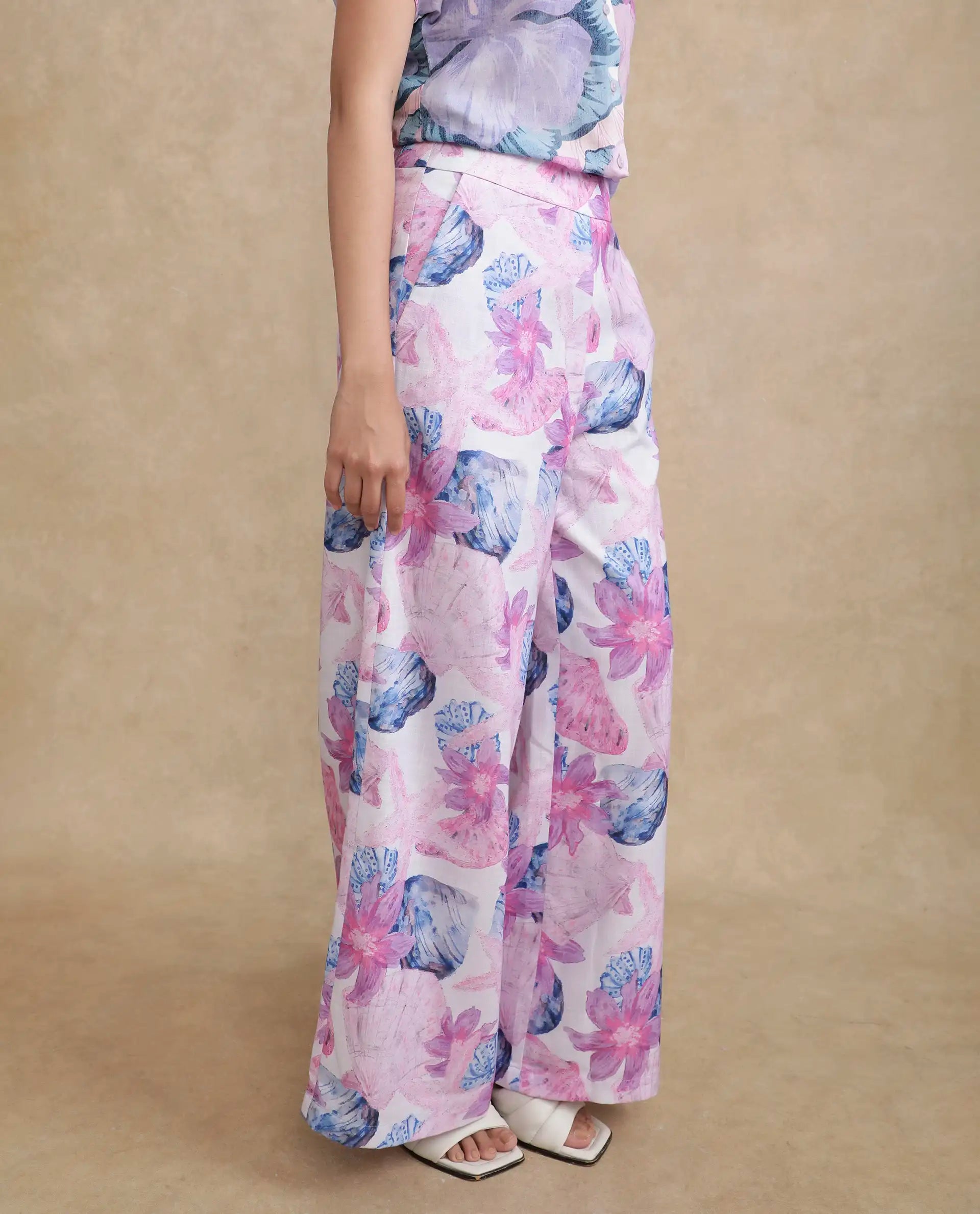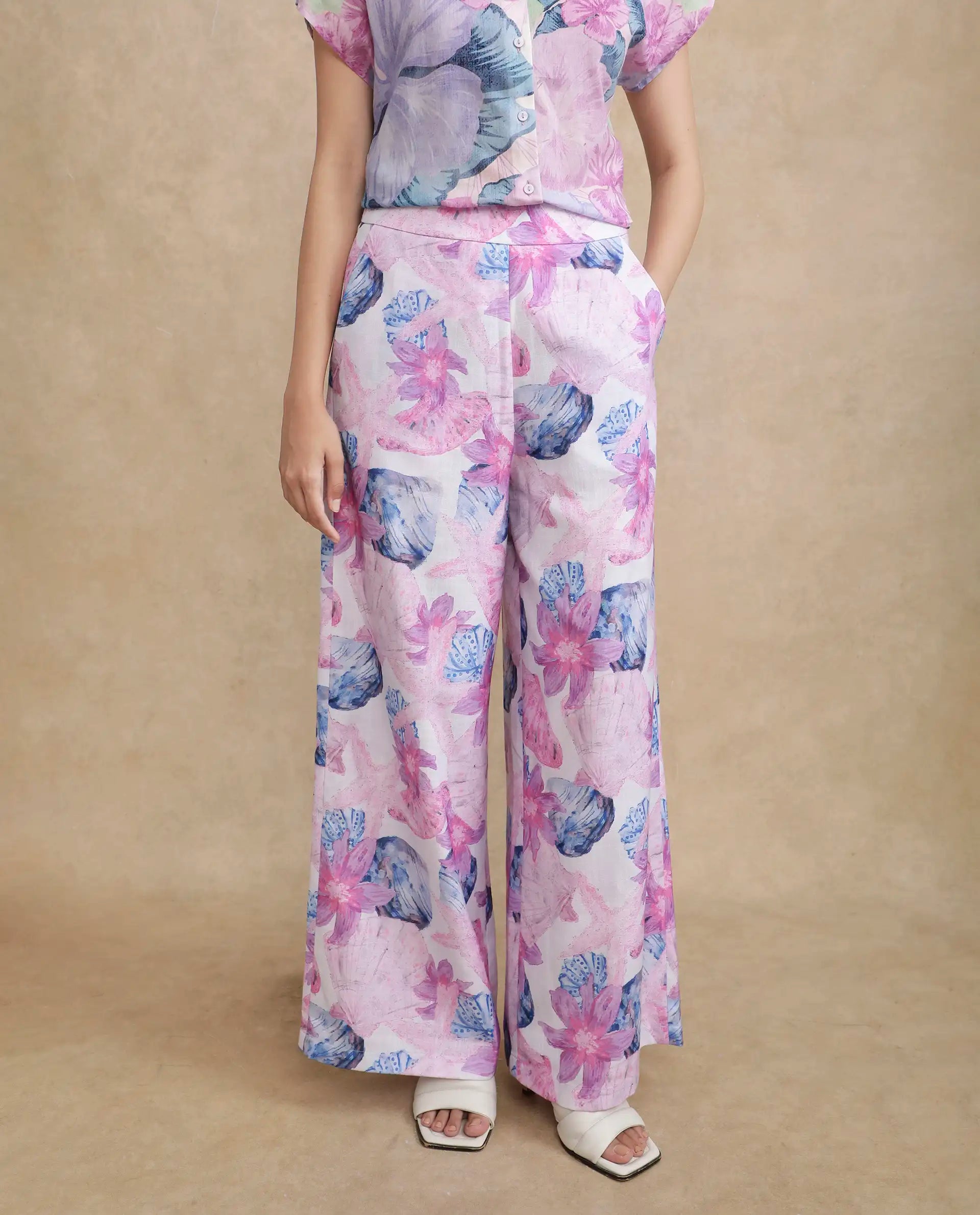 Rareism Women Predin-B Multi Polyester Blend Fabric Zipper Closure Wide Fit Ankle Length Abstract Print Trouser
