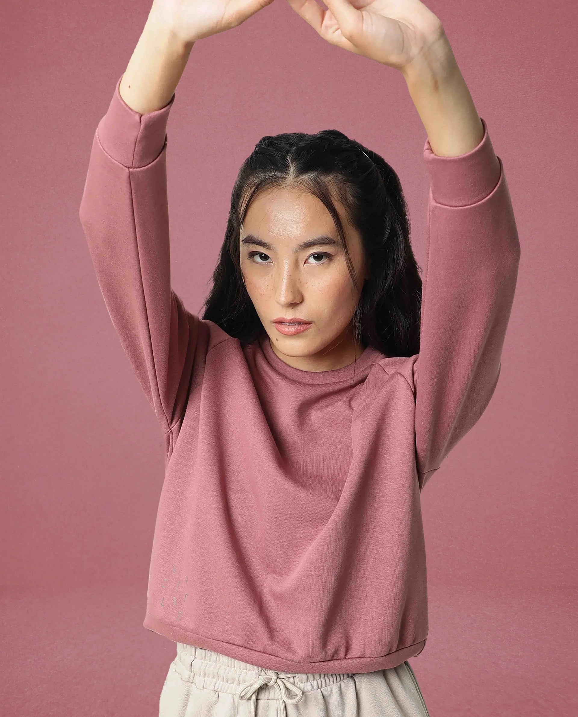 Rareism Women Cax Dark Pink Cotton Blend Fabric Relaxed Fit Full Sleeves Solid Round Neck Sweatshirt